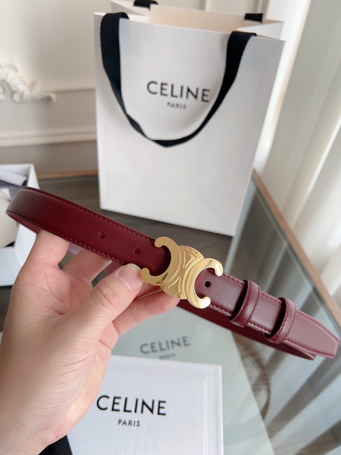 TRIOMPHE BELT 24MM IN WINE RED CALFSKIN WITH GOLD BUCKLE