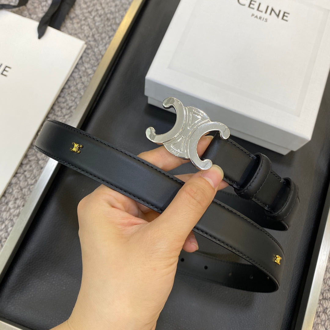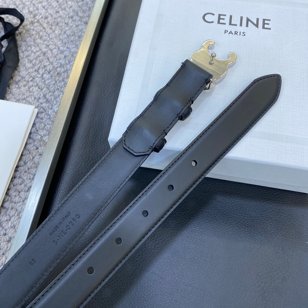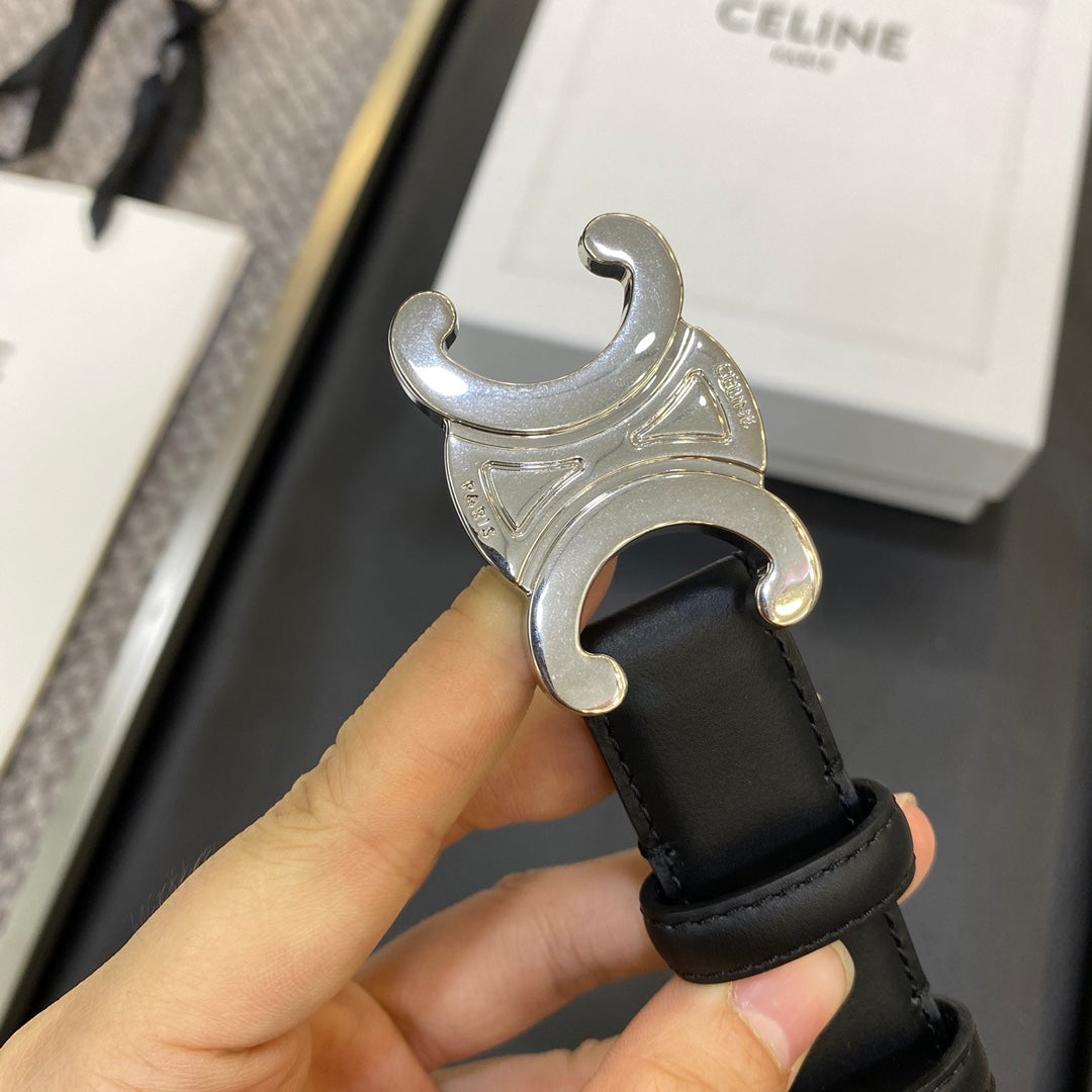 TRIOMPHE BELT 25MM IN BLACK CALFSKIN SILVER BUCKLE GOLD LOGO