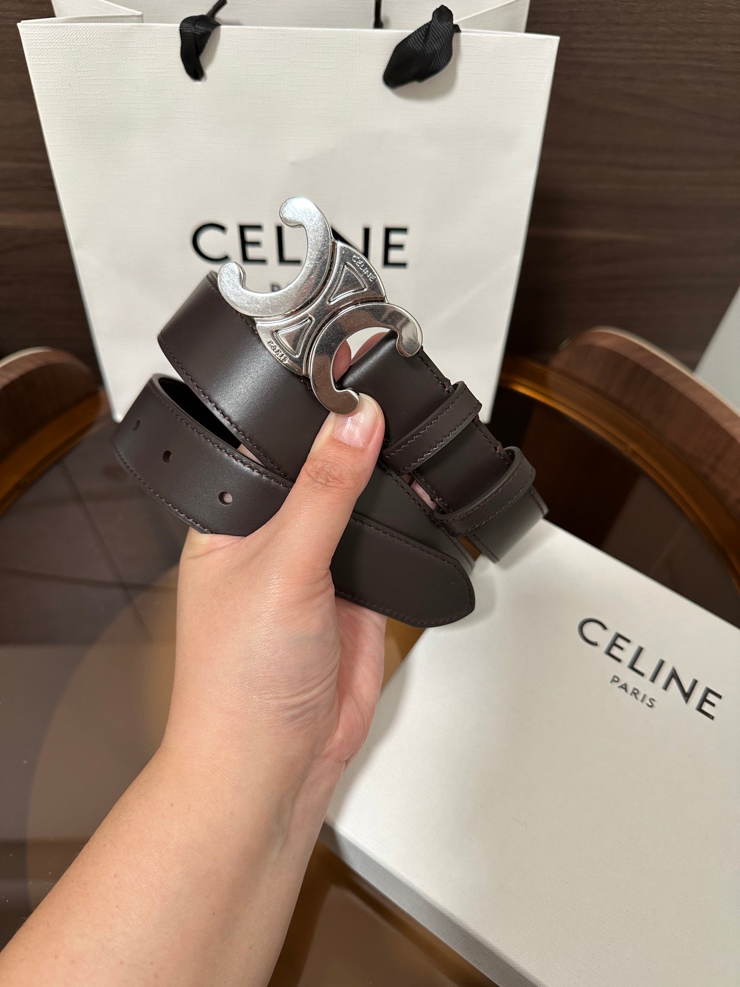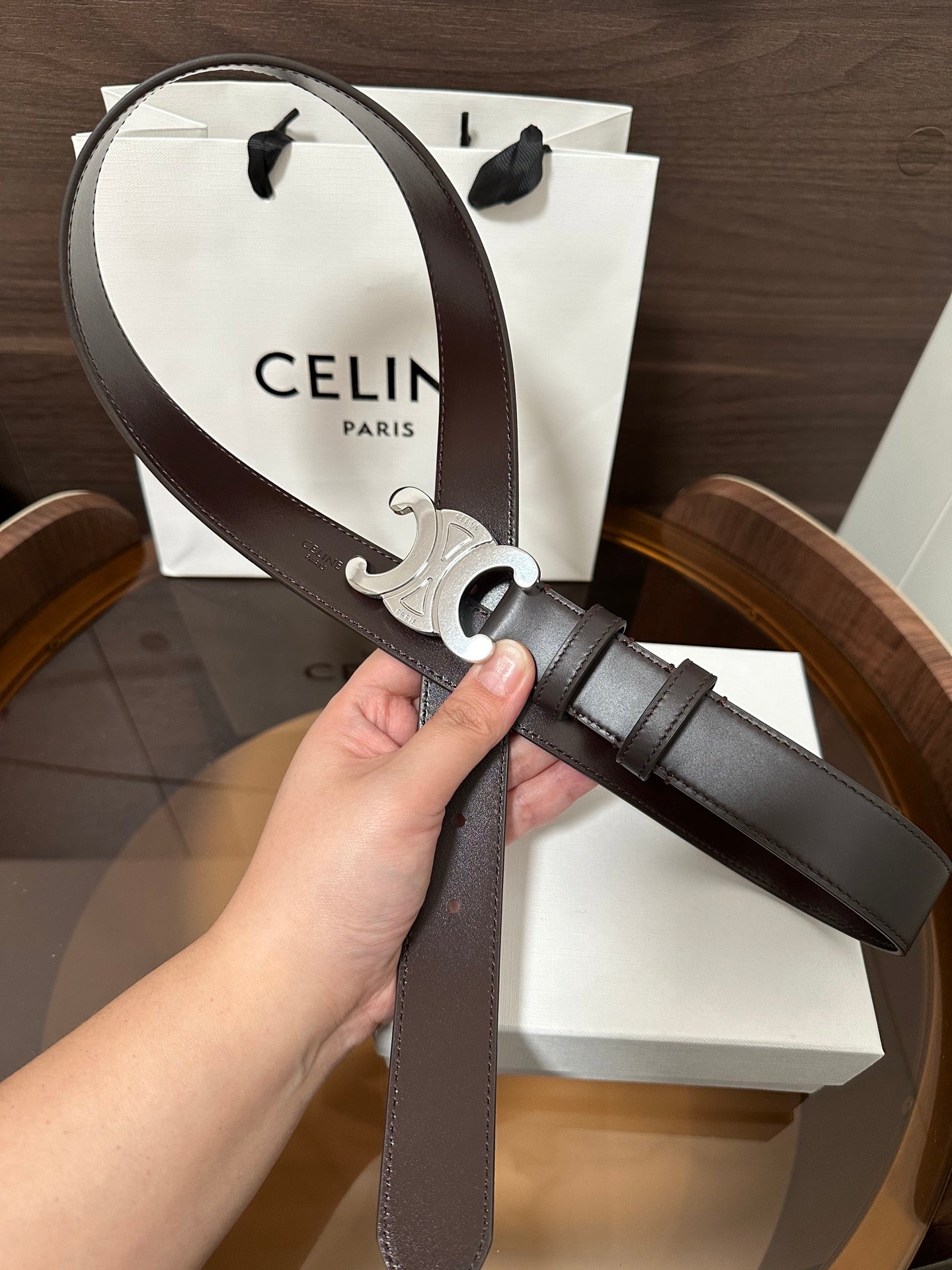 TRIOMPHE BELT 30MM IN DARK BROWN CALFSKIN WITH SILVER BUCKLE