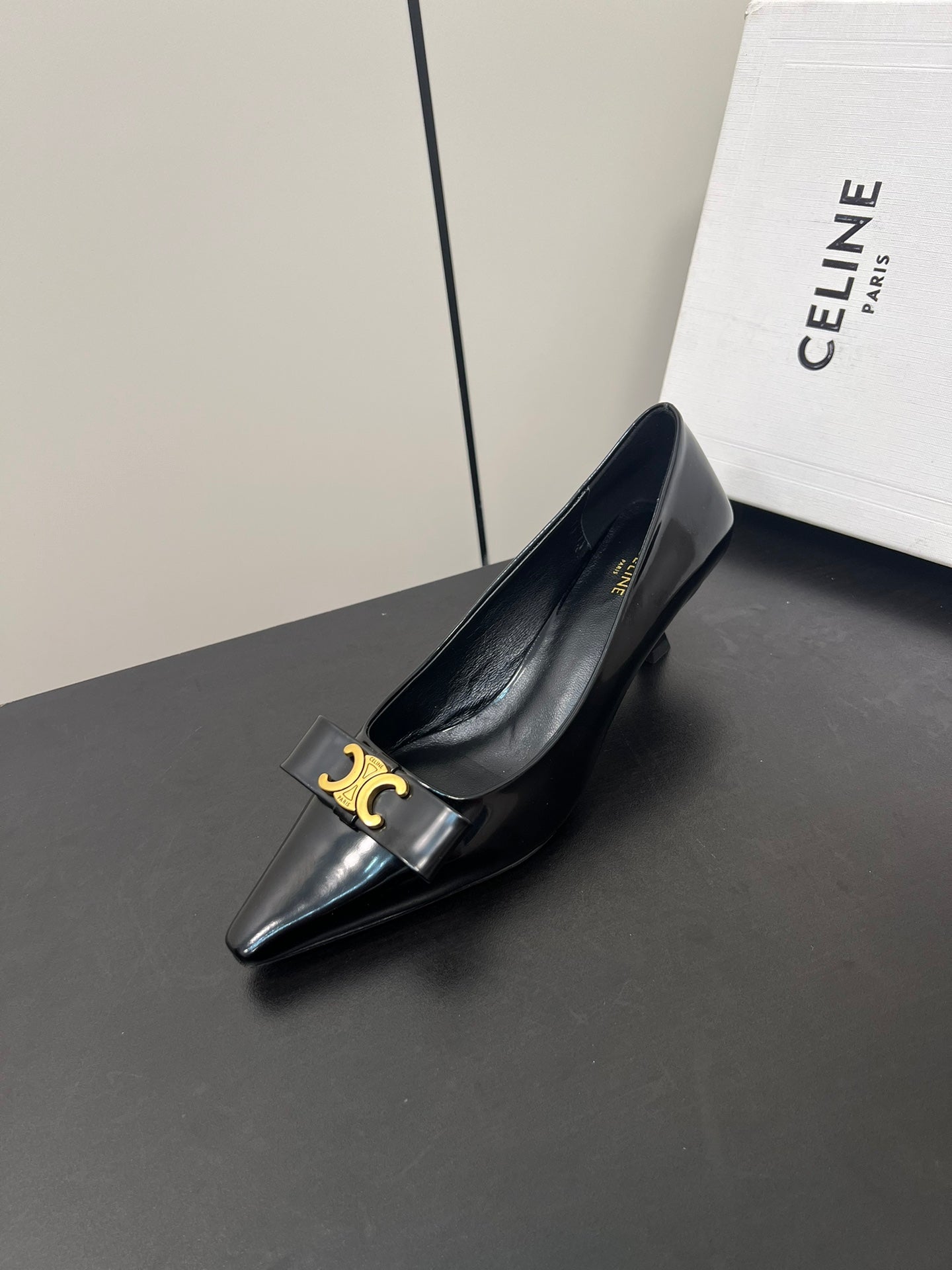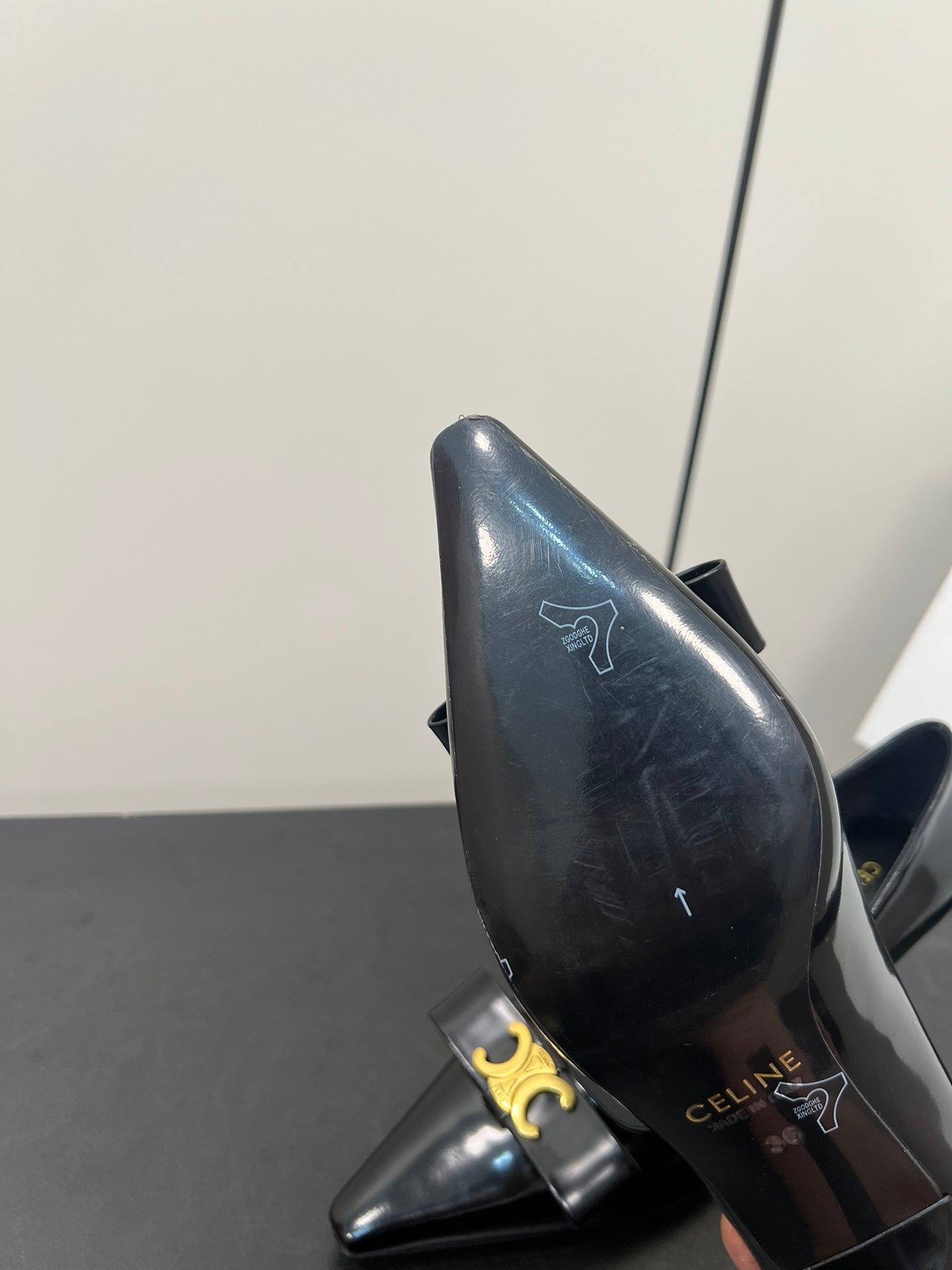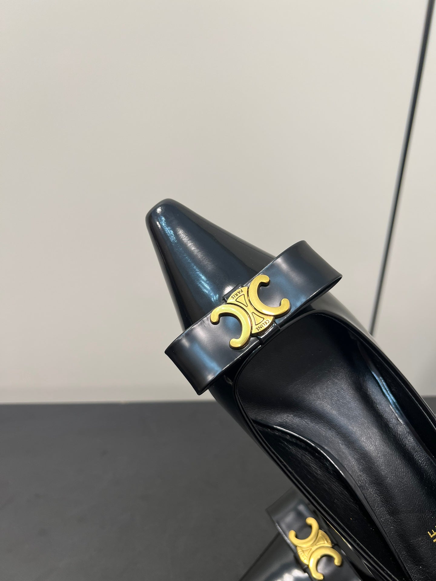 TRIOMPHE POINTED-TOE HIGH PUMPS IN BLACK SHINY CALFSKIN