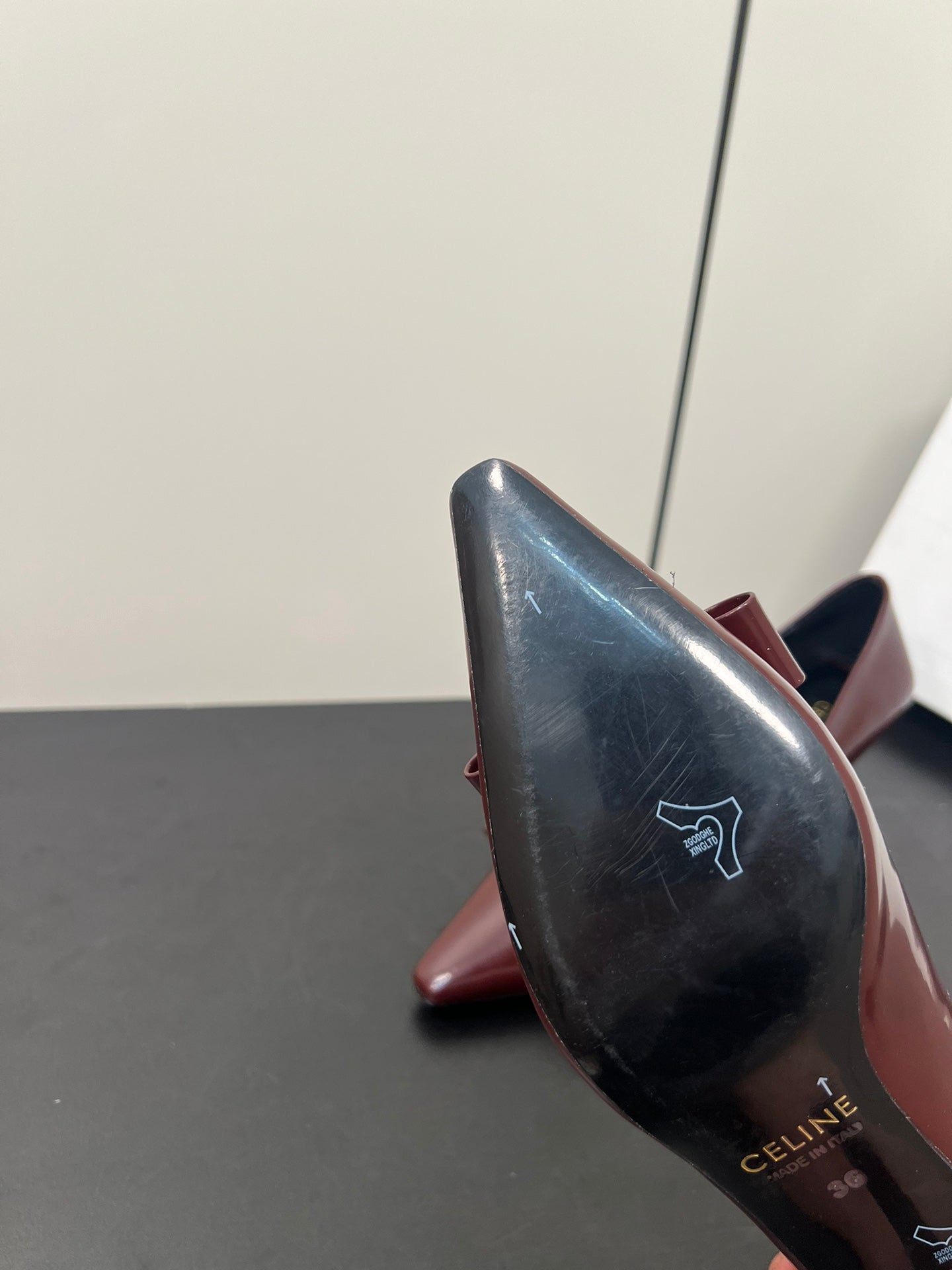 TRIOMPHE POINTED-TOE HIGH PUMPS IN BURGUNDY RED SHINY CALFSKIN