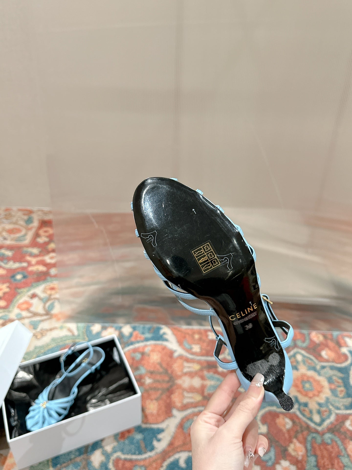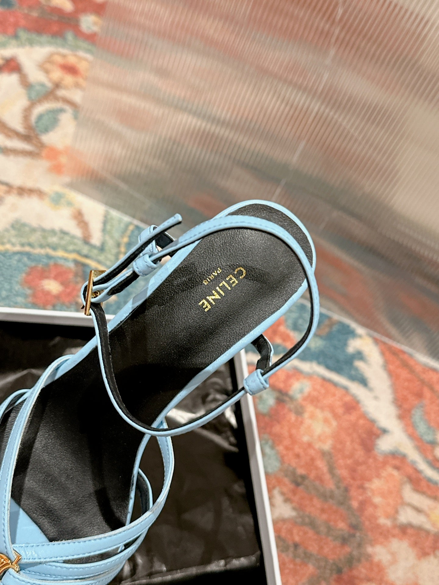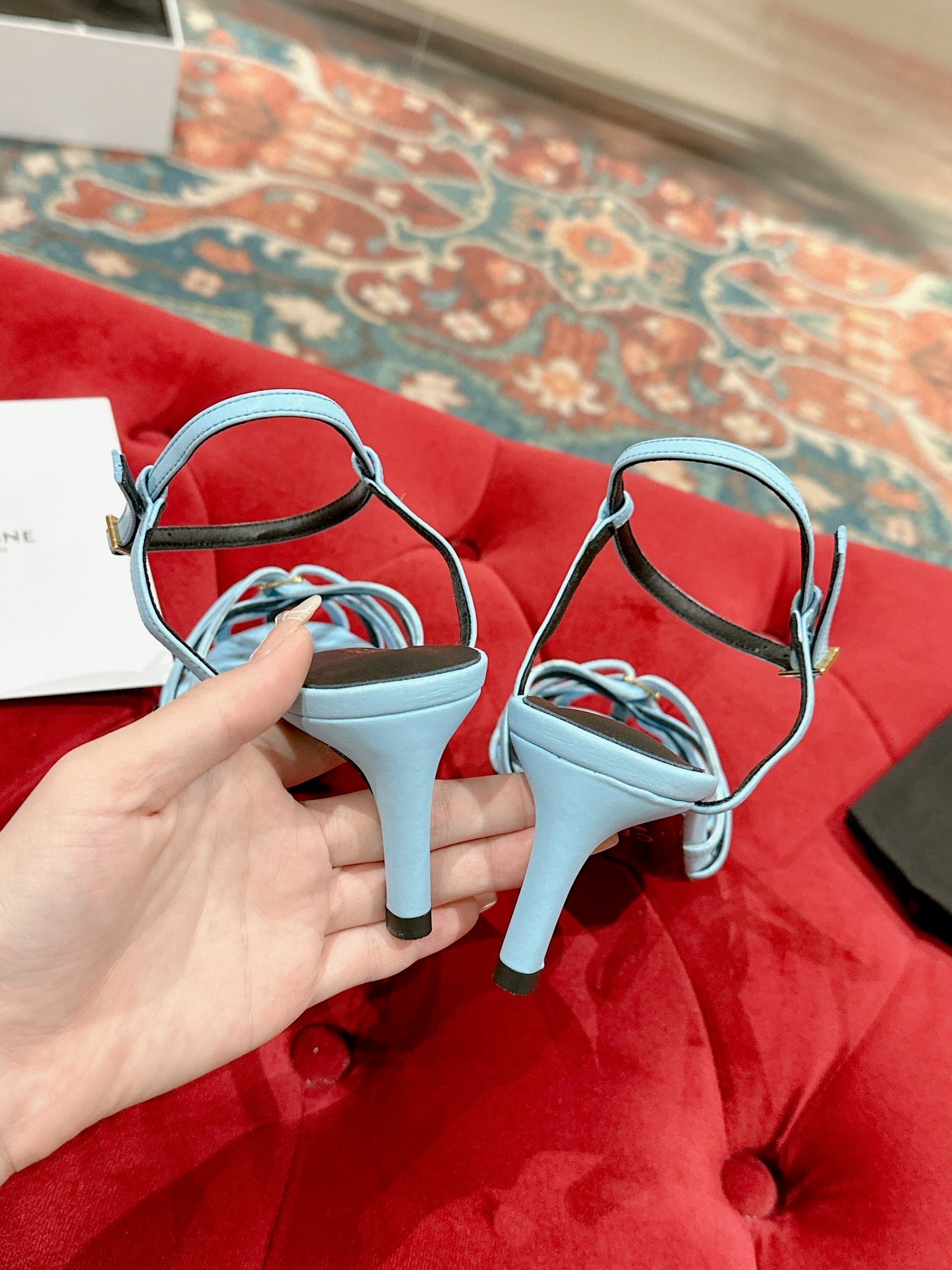 TRIOMPHE SANDAL 85 MM IN POWDER BLUE LAMBSKIN
