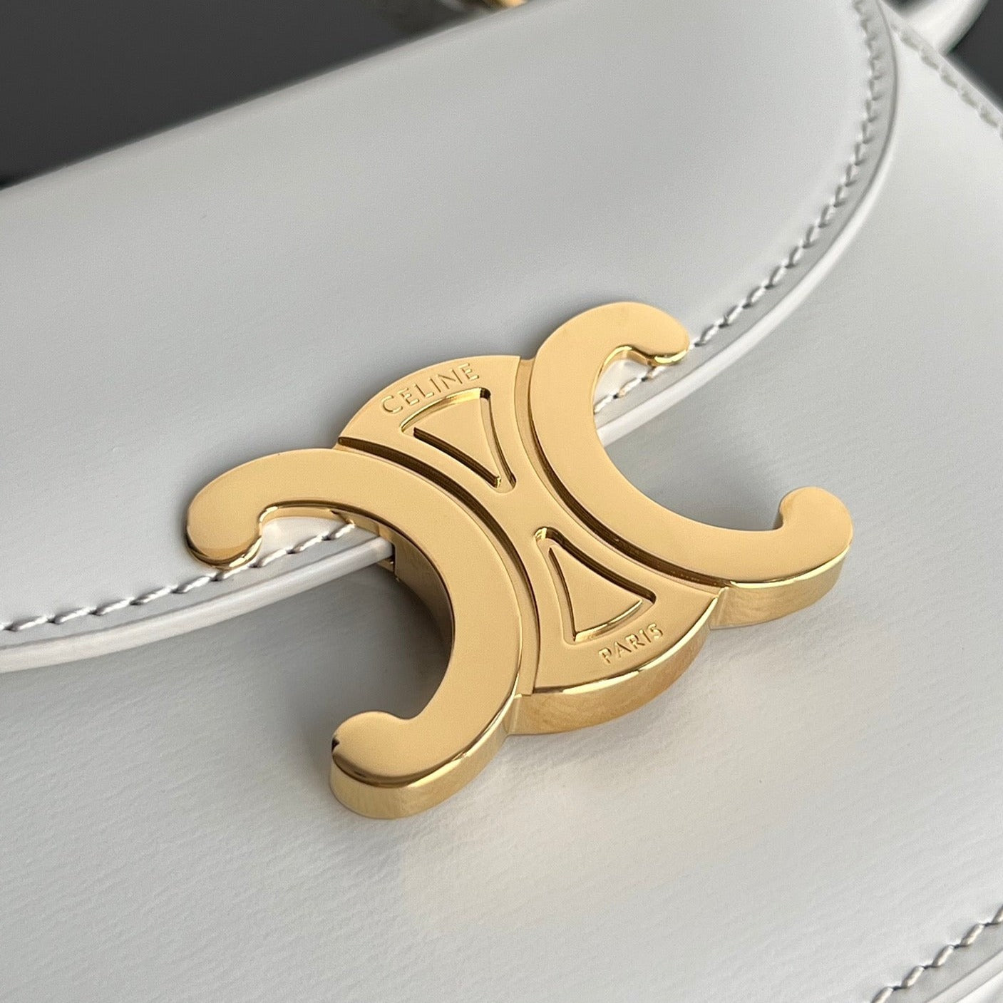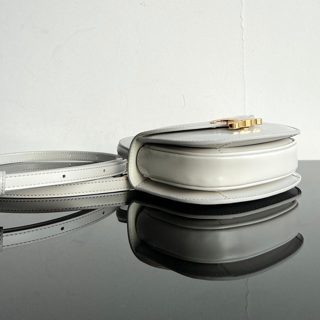 TRIOMPHE SHINY CALFSKIN HANDBAG 18 WHITE