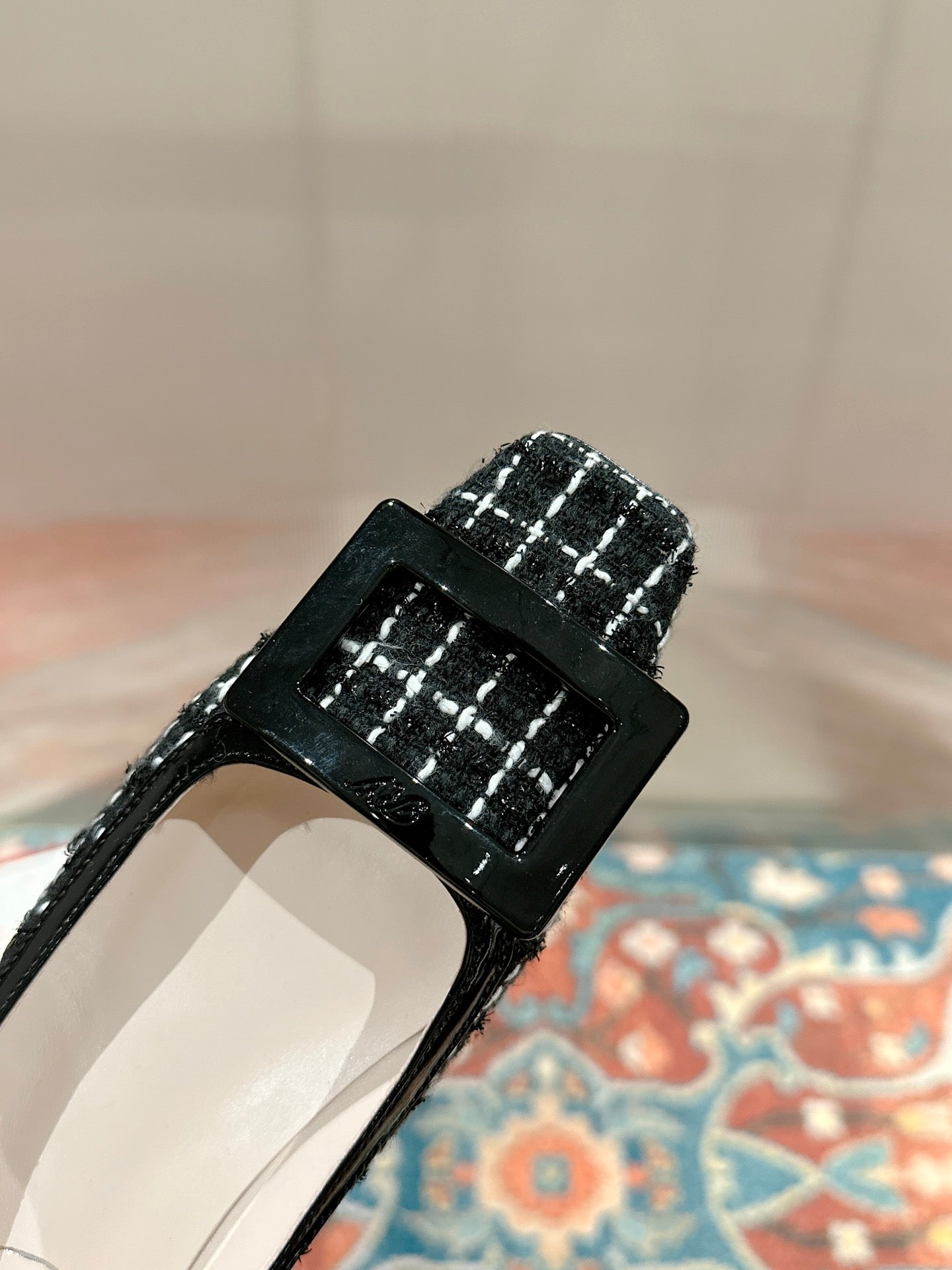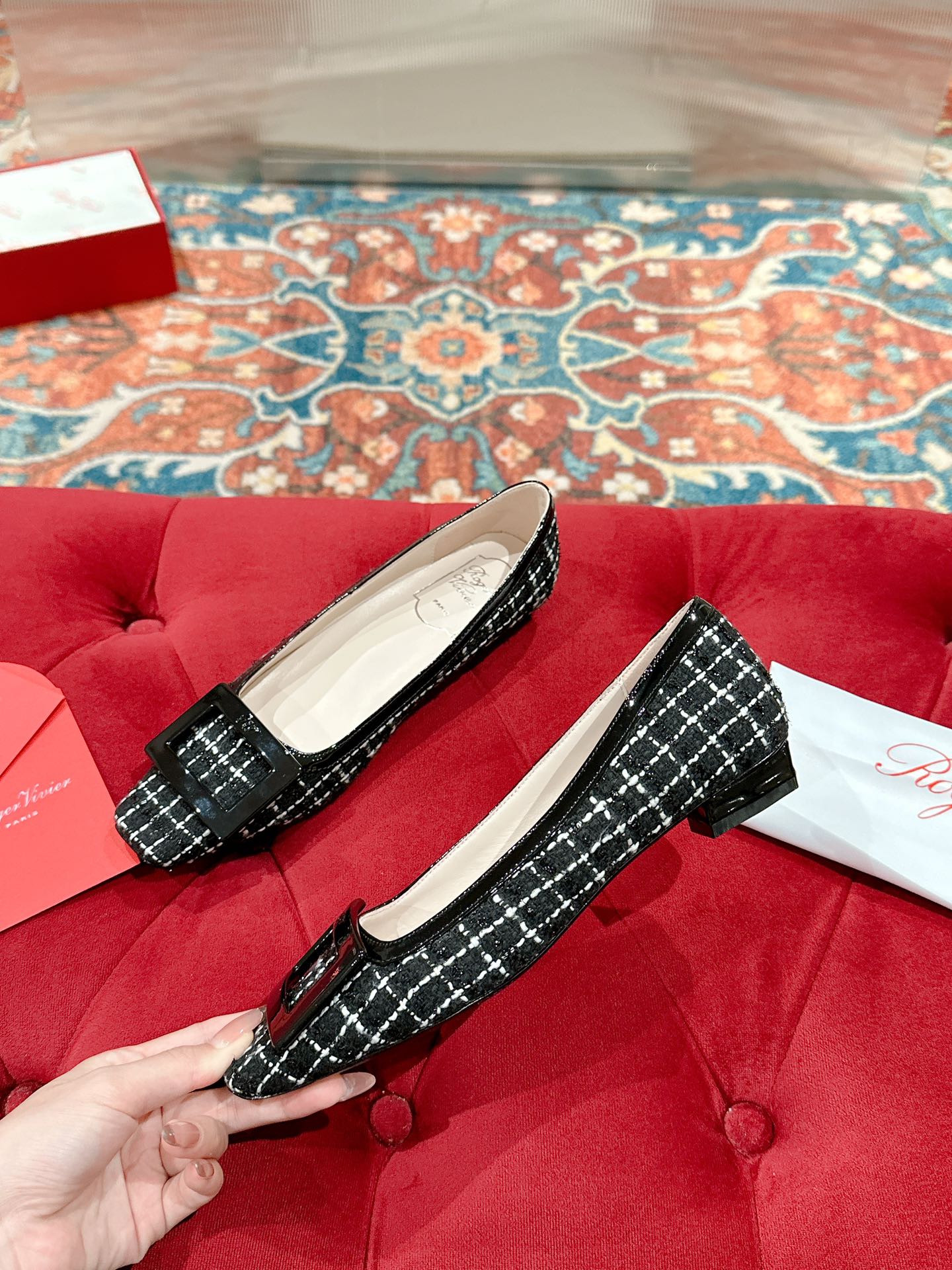 TROMPETTE BALLERINAS IN BLACK TWEED WITH WHITE STRIPES