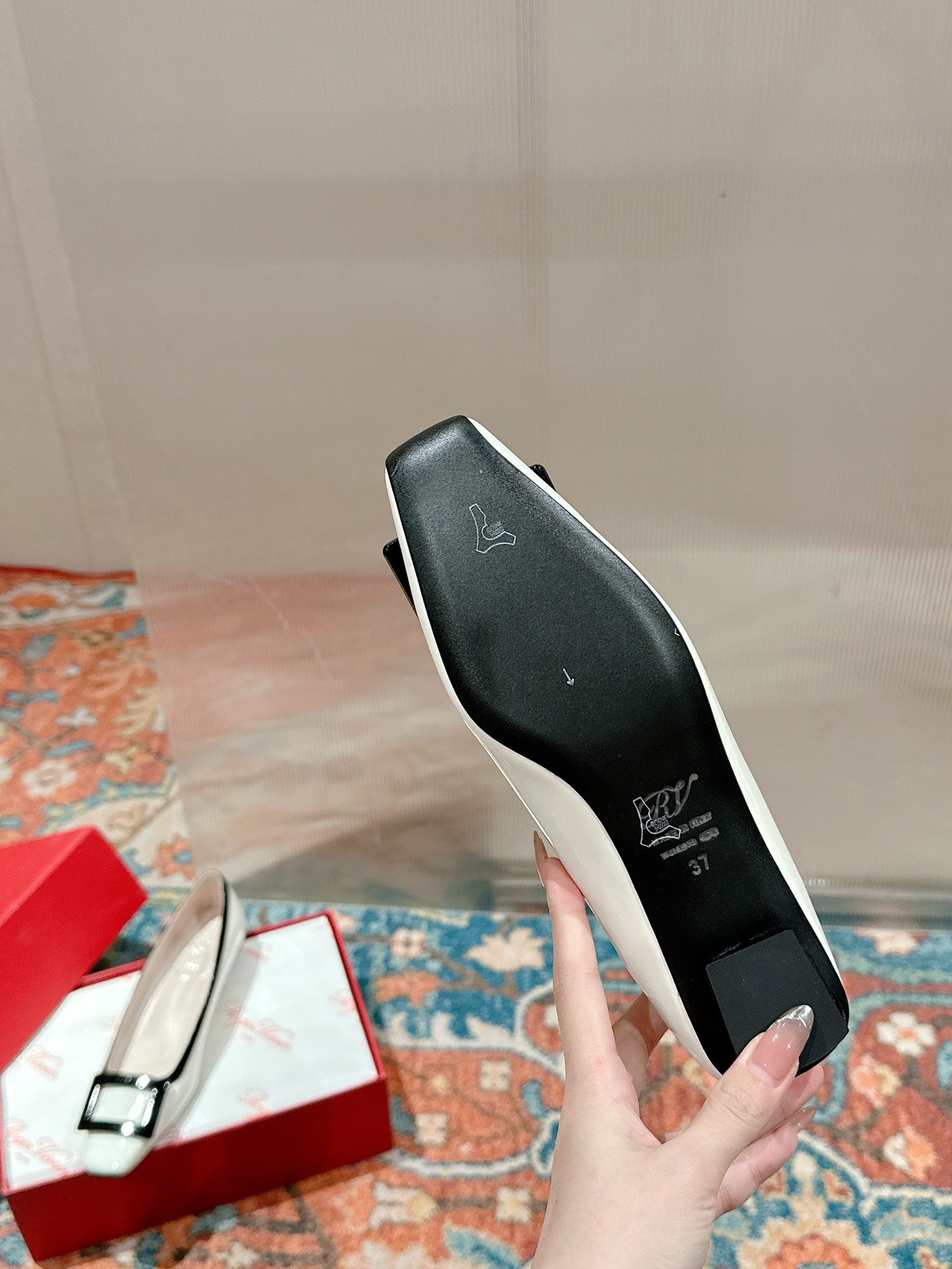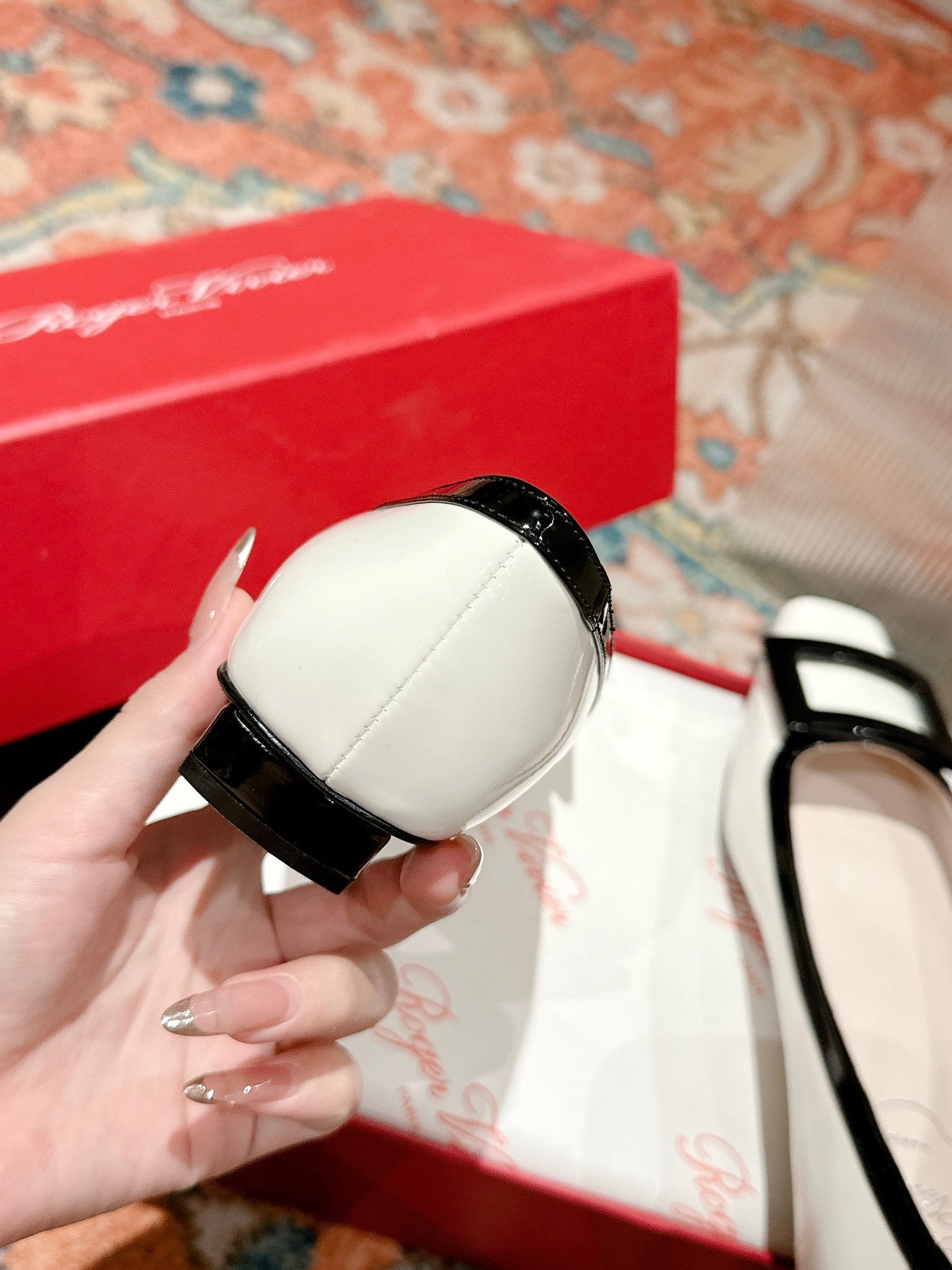 TROMPETTE BALLERINAS IN WHITE SHINY CALFSKIN BLACK SQUARE BUCKLE