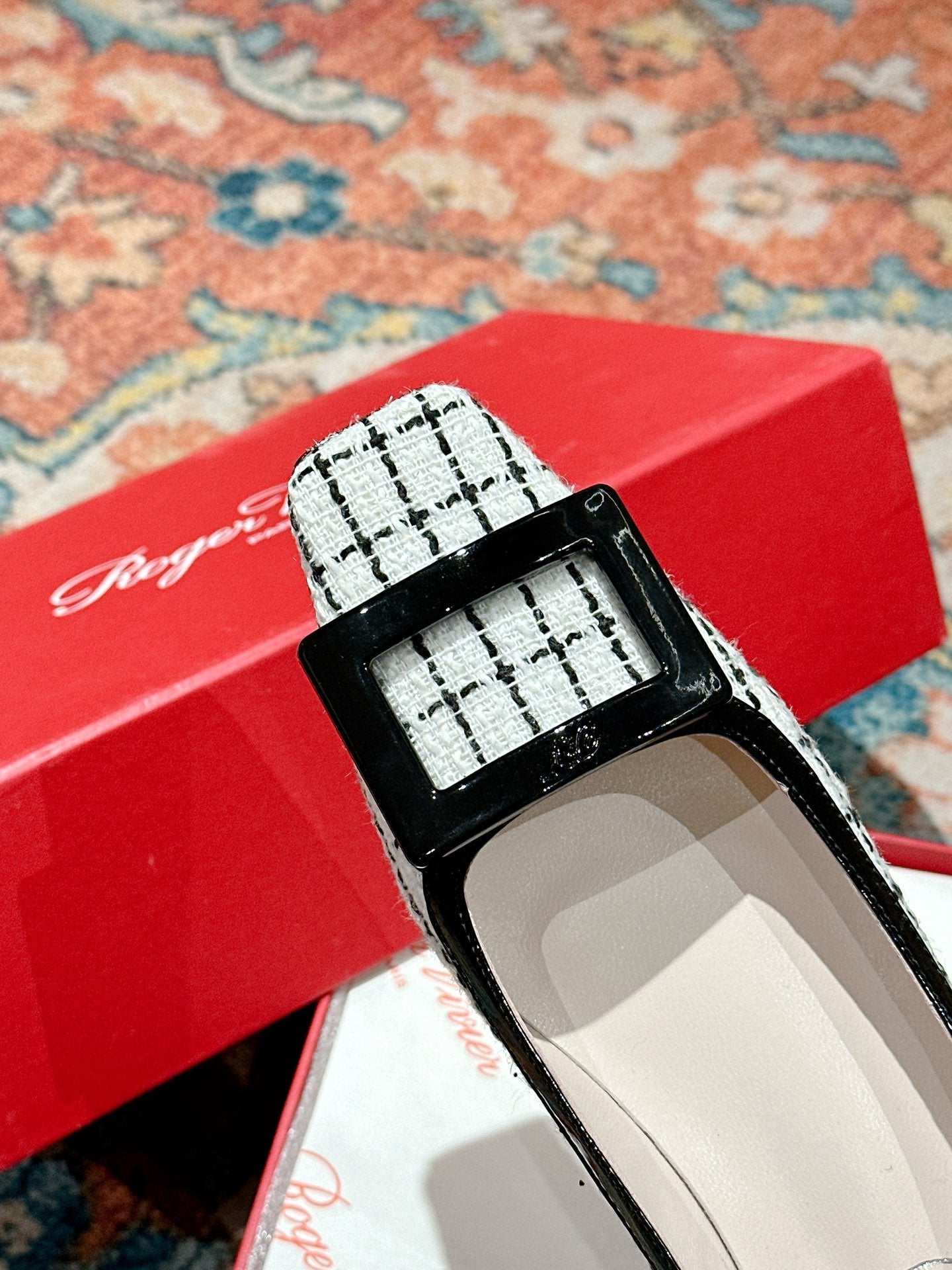 TROMPETTE BALLERINAS IN WHITE TWEED WITH BLACK STRIPES