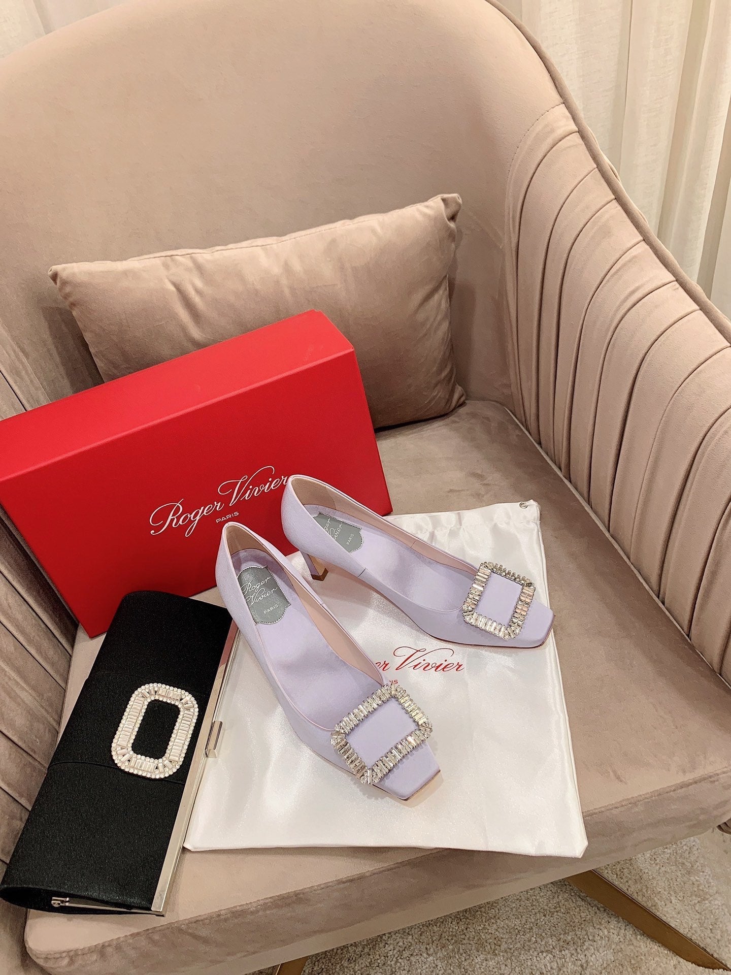 TROMPETTE PUMPS IN LIGHT PURPLE SILK CRYSTAL BUCKLE