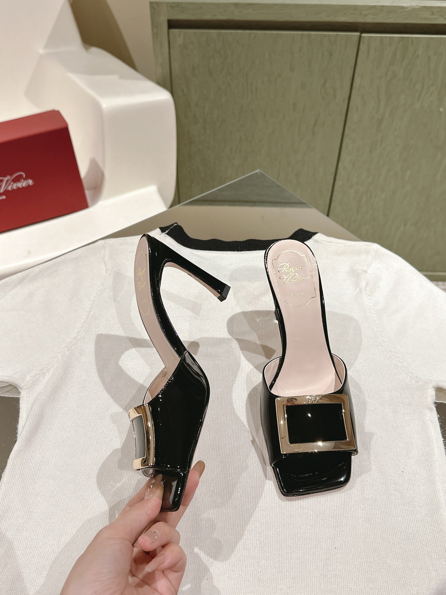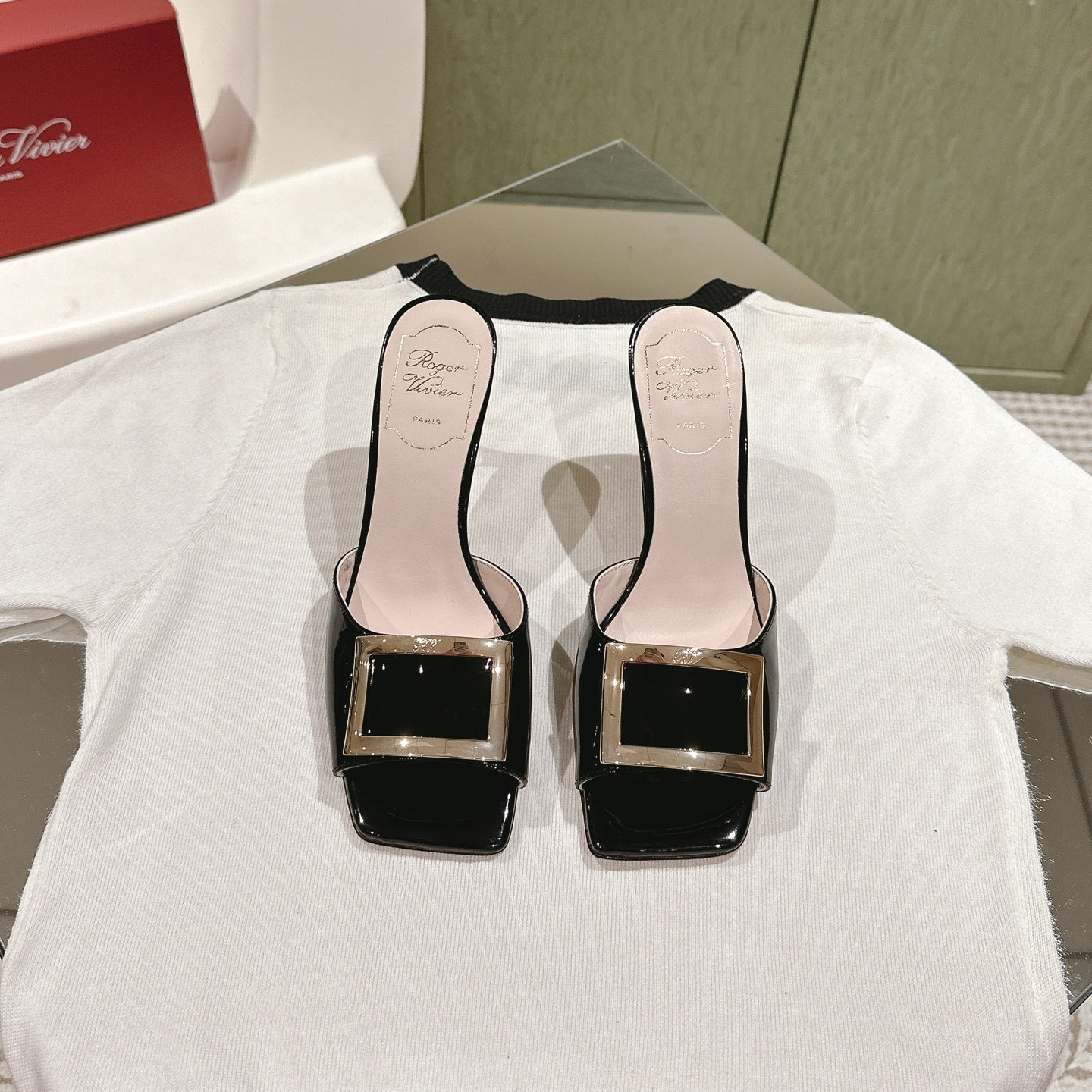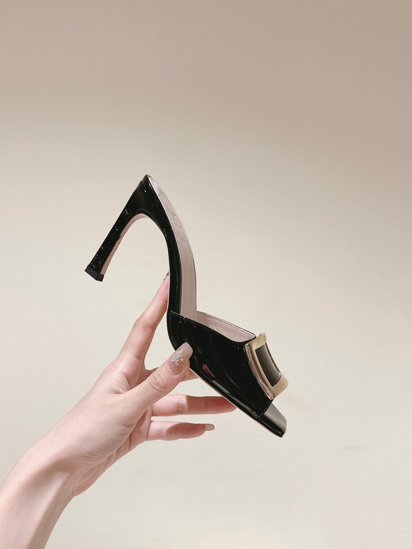 TRUMPET METALLIC MULES IN BLACK PATENT CALFSKIN