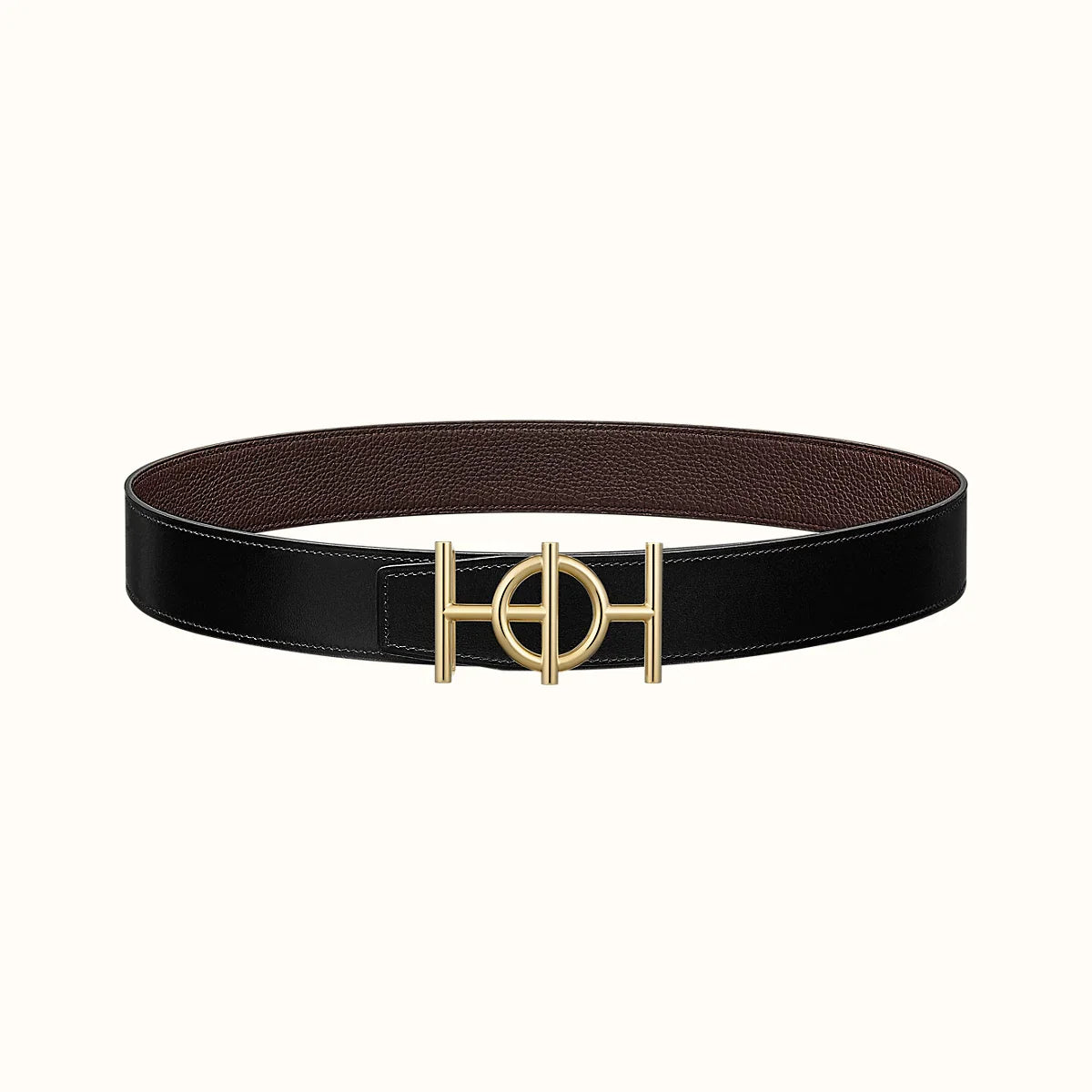 ULYSSE BELT BUCKLE & REVERSIBLE CHOCOLATE BROWN LEATHER STRAP 38MM GOLD HARDWARE