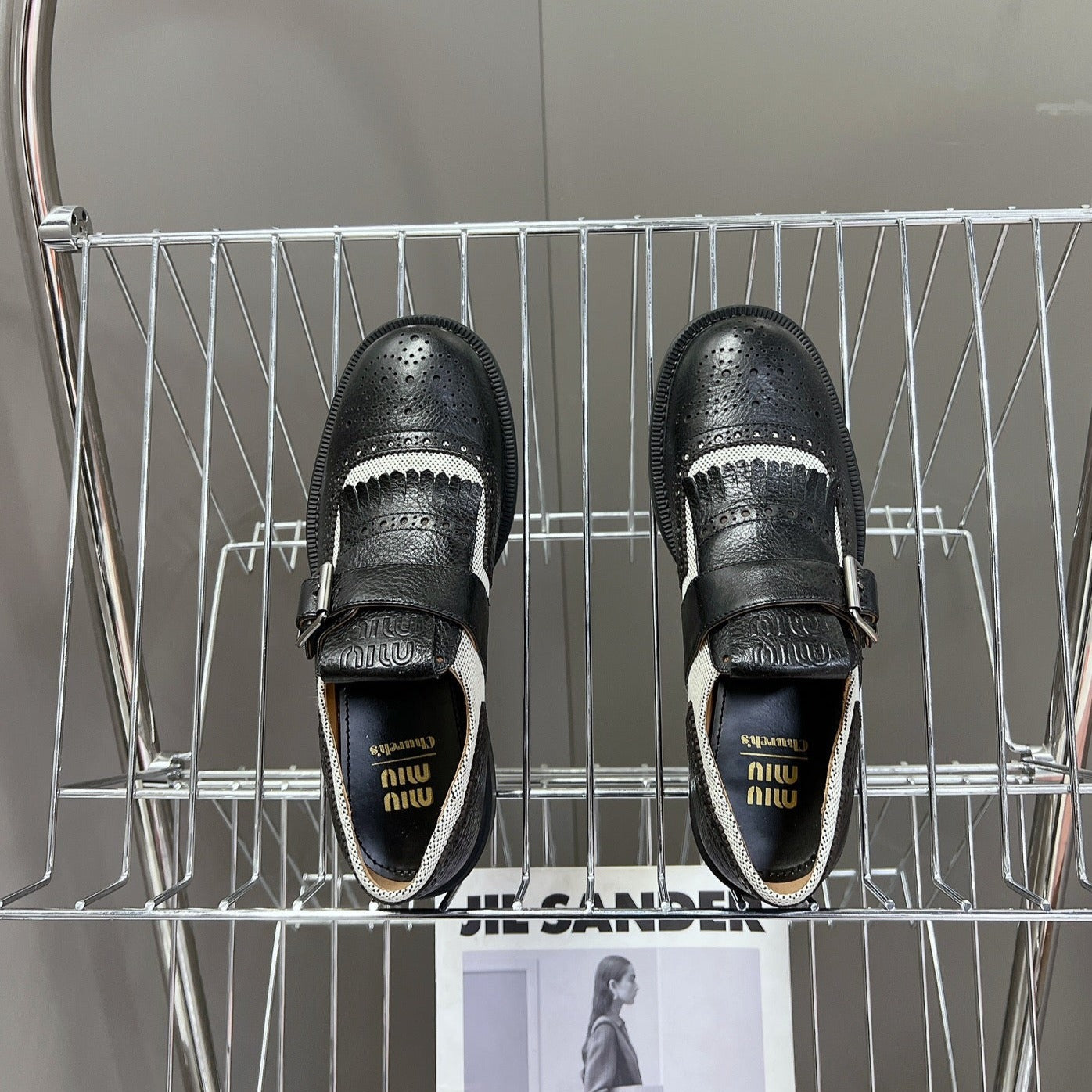 UNIQUE THICK-SOLED OXFORD SHOES BLACK MIX CREAM CALFSKIN