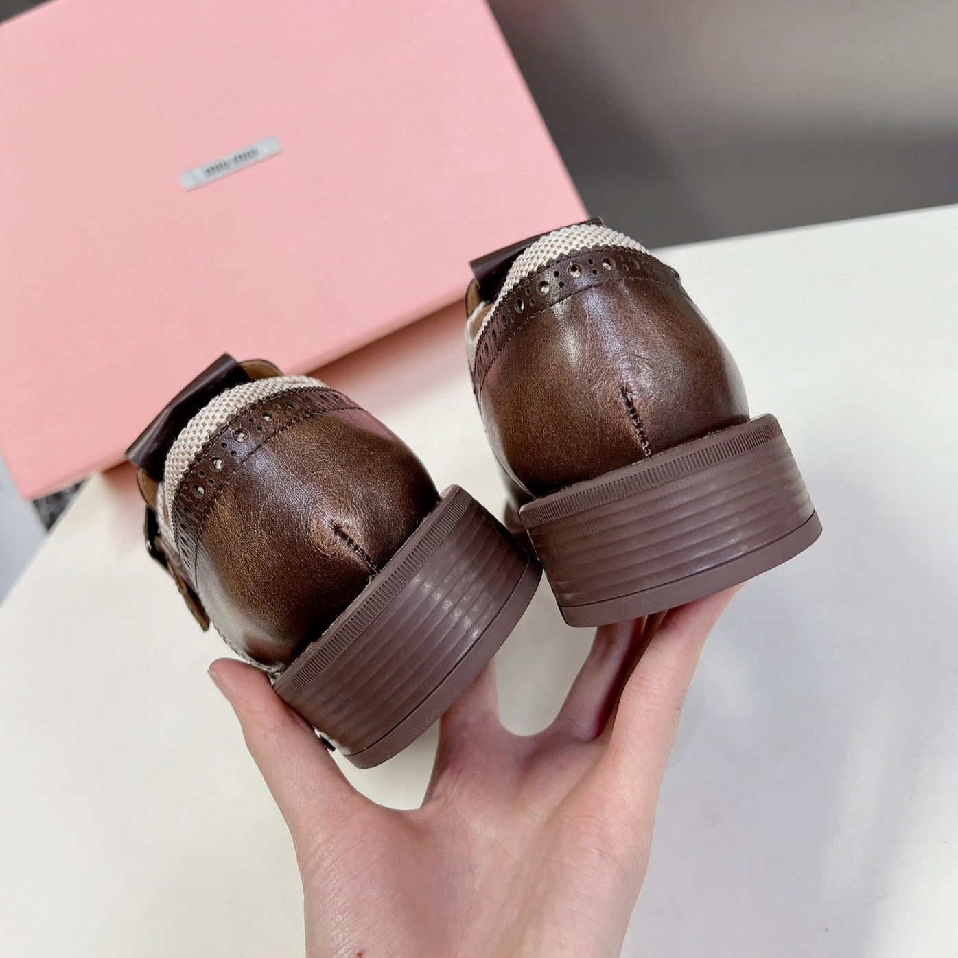 UNIQUE THICK-SOLED OXFORD SHOES WOOD MIX CREAM CALFSKIN