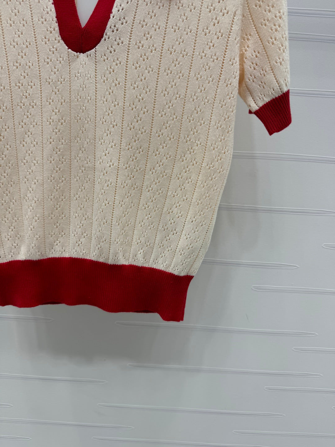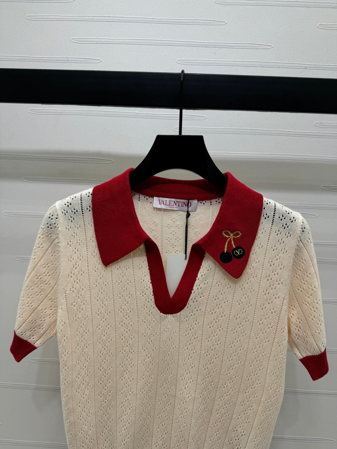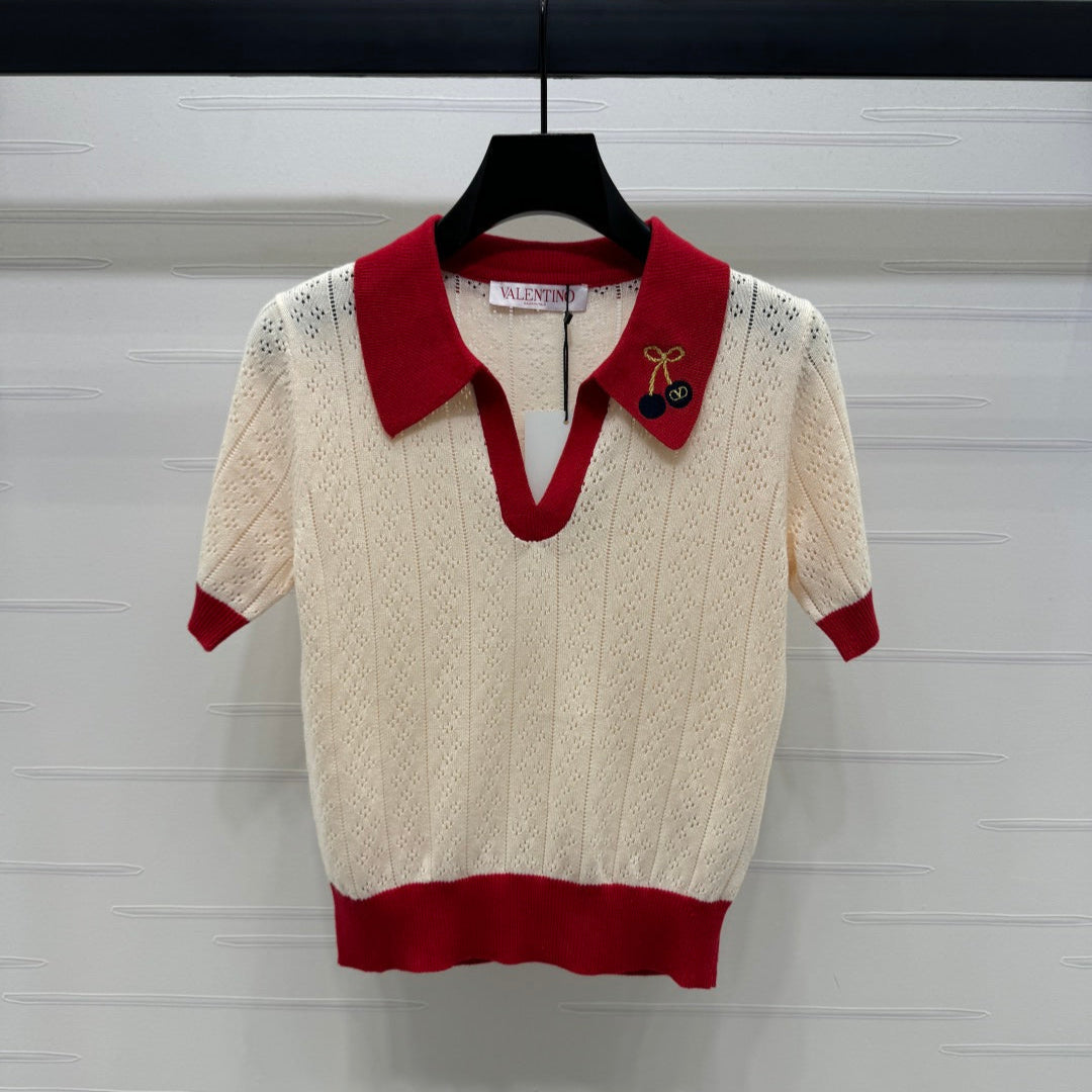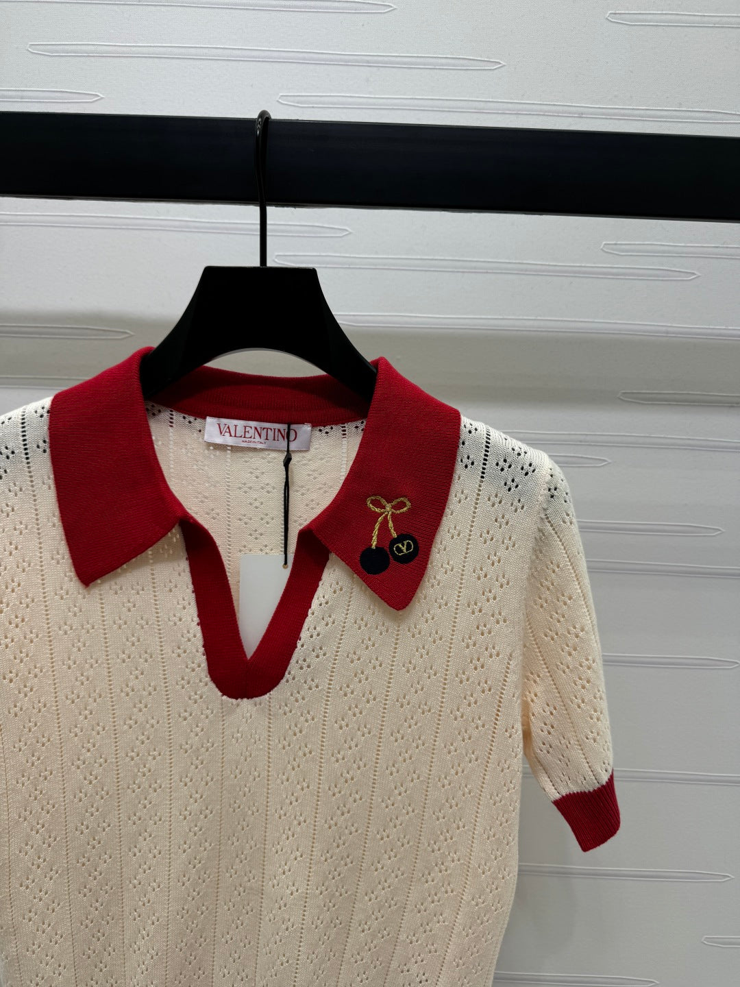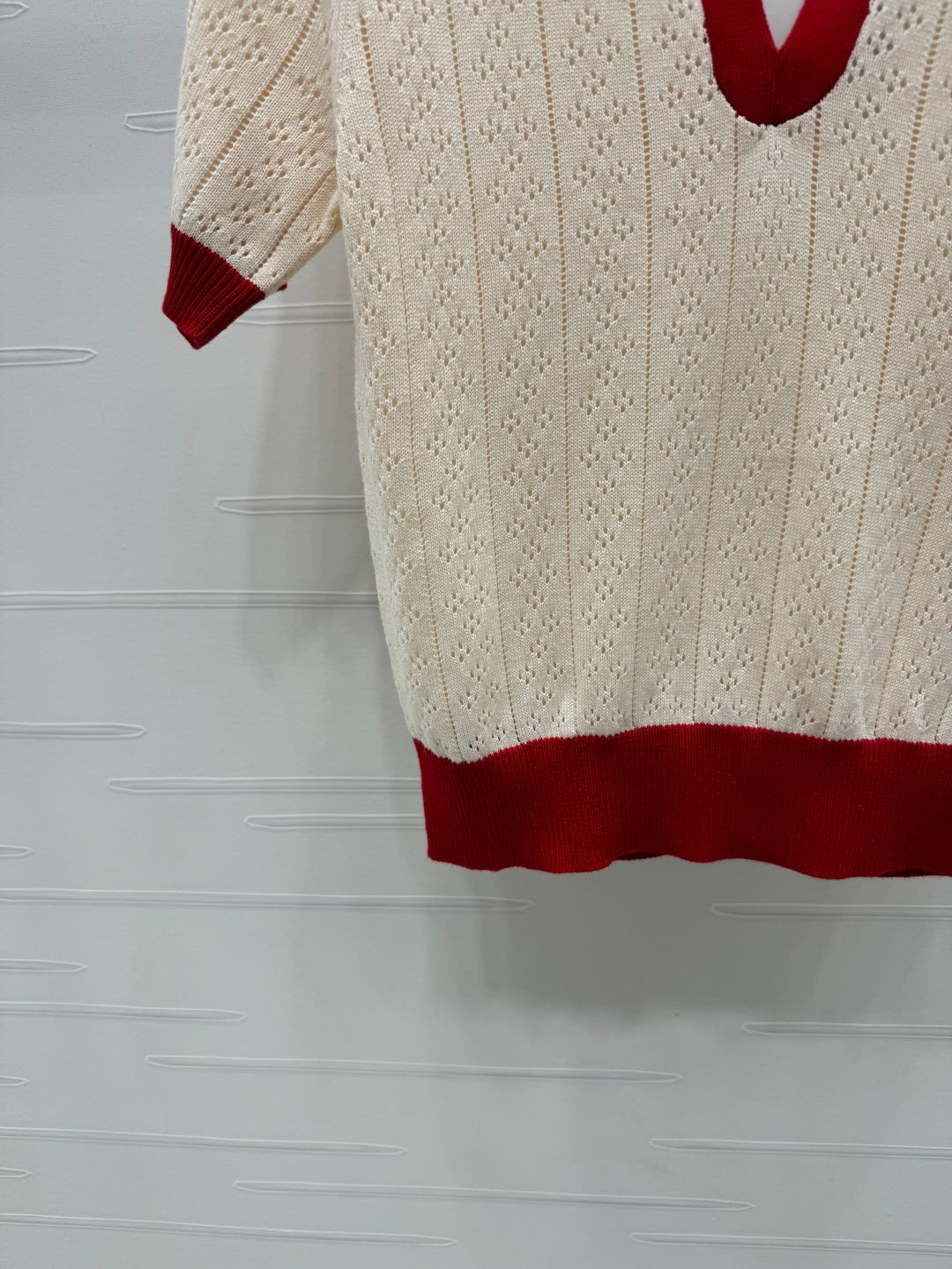 VALENTINO 25S HOLLOW V-NECK BLOUSE 264162