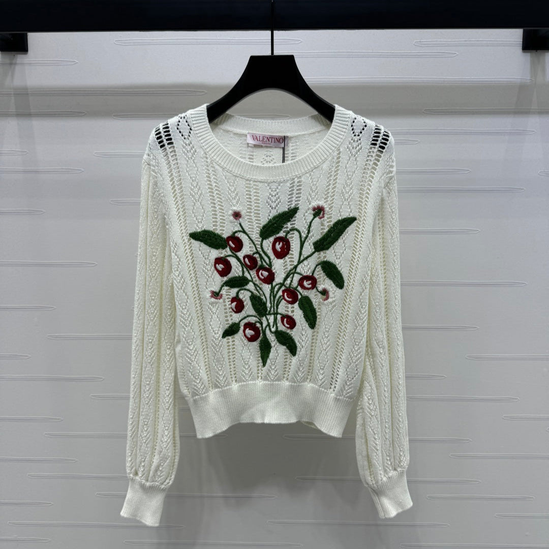 VALENTINO CREW NECK LONG-SLEEVE EMBROIDERED KNIT TOP 274957