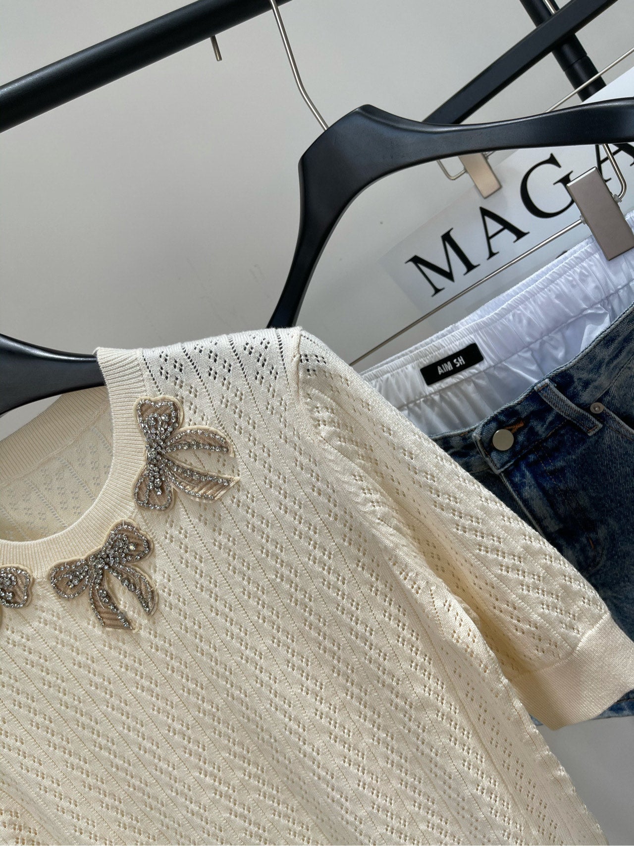 VALENTINO SHORT SLEEVE TOP WITH SEQUIN BOW 273160