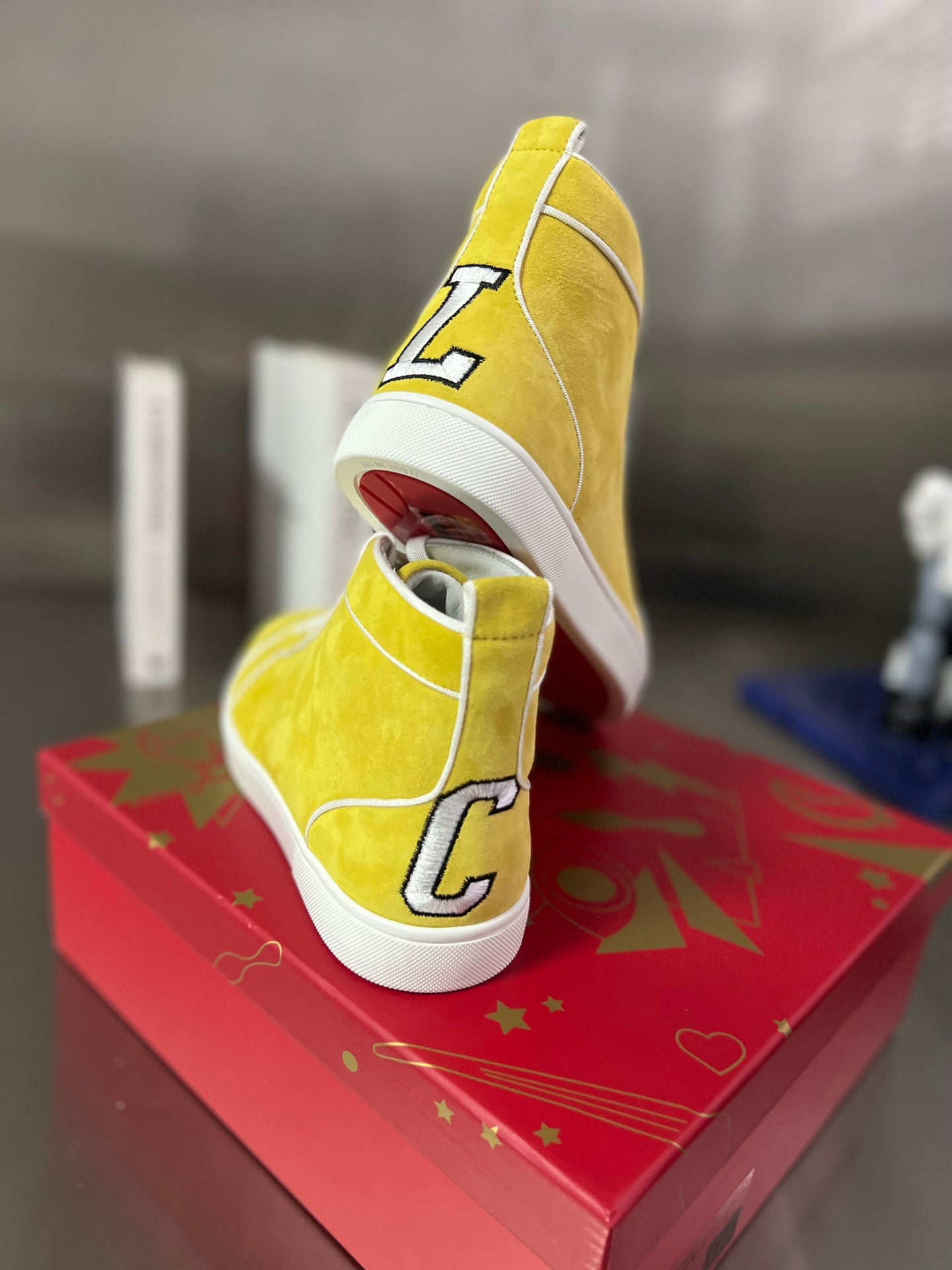 VARSILOUIS HIGH-TOP FLAT SNEAKERS IN YELLOW SUEDE