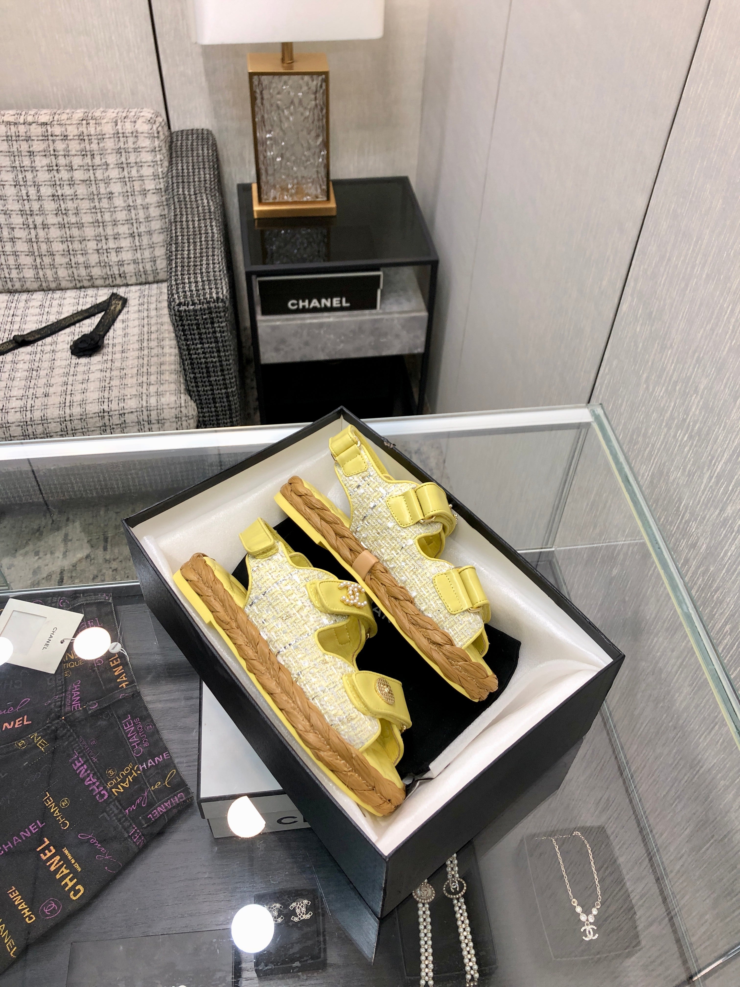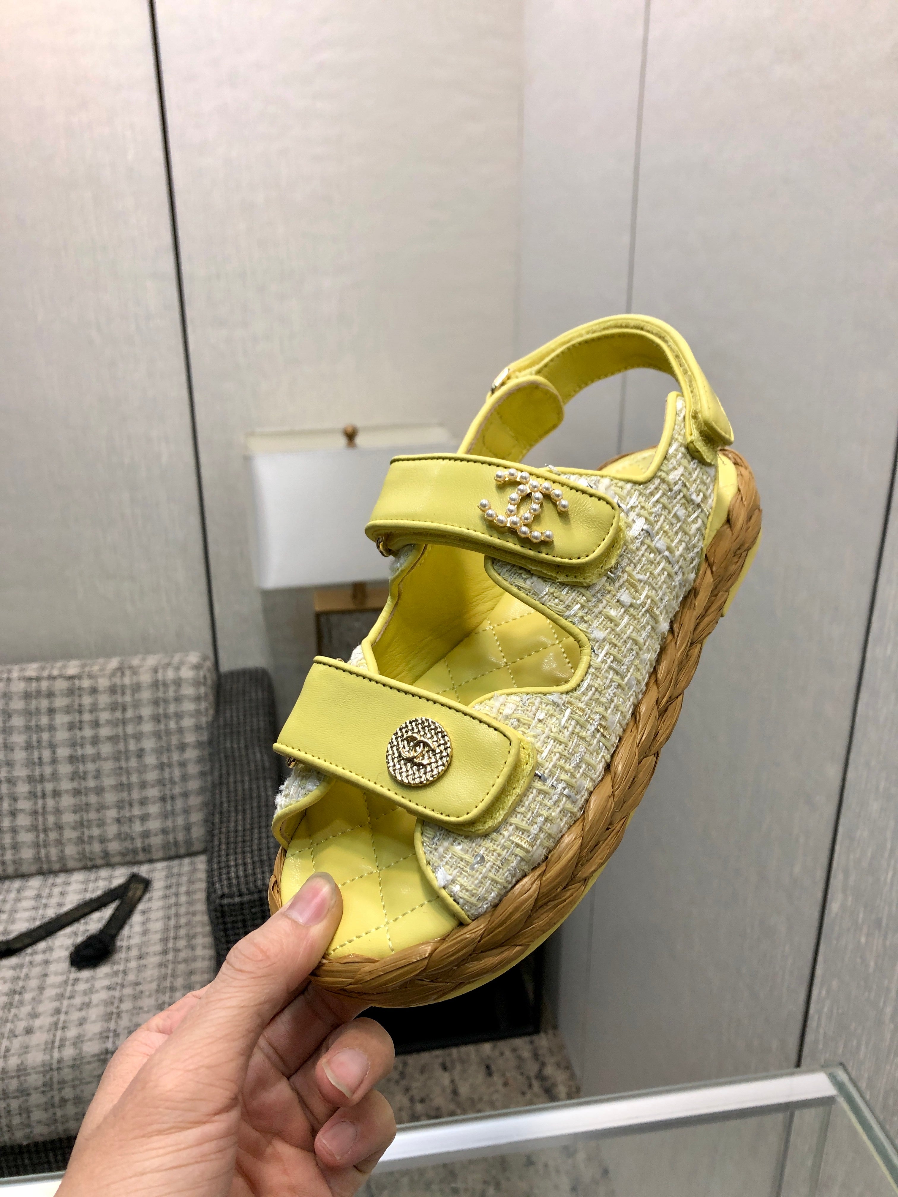 VELCRO SANDALS IN LIGHT YELLOW LAMBSKIN AND TWEED FABRIC