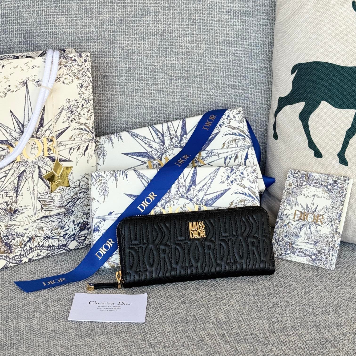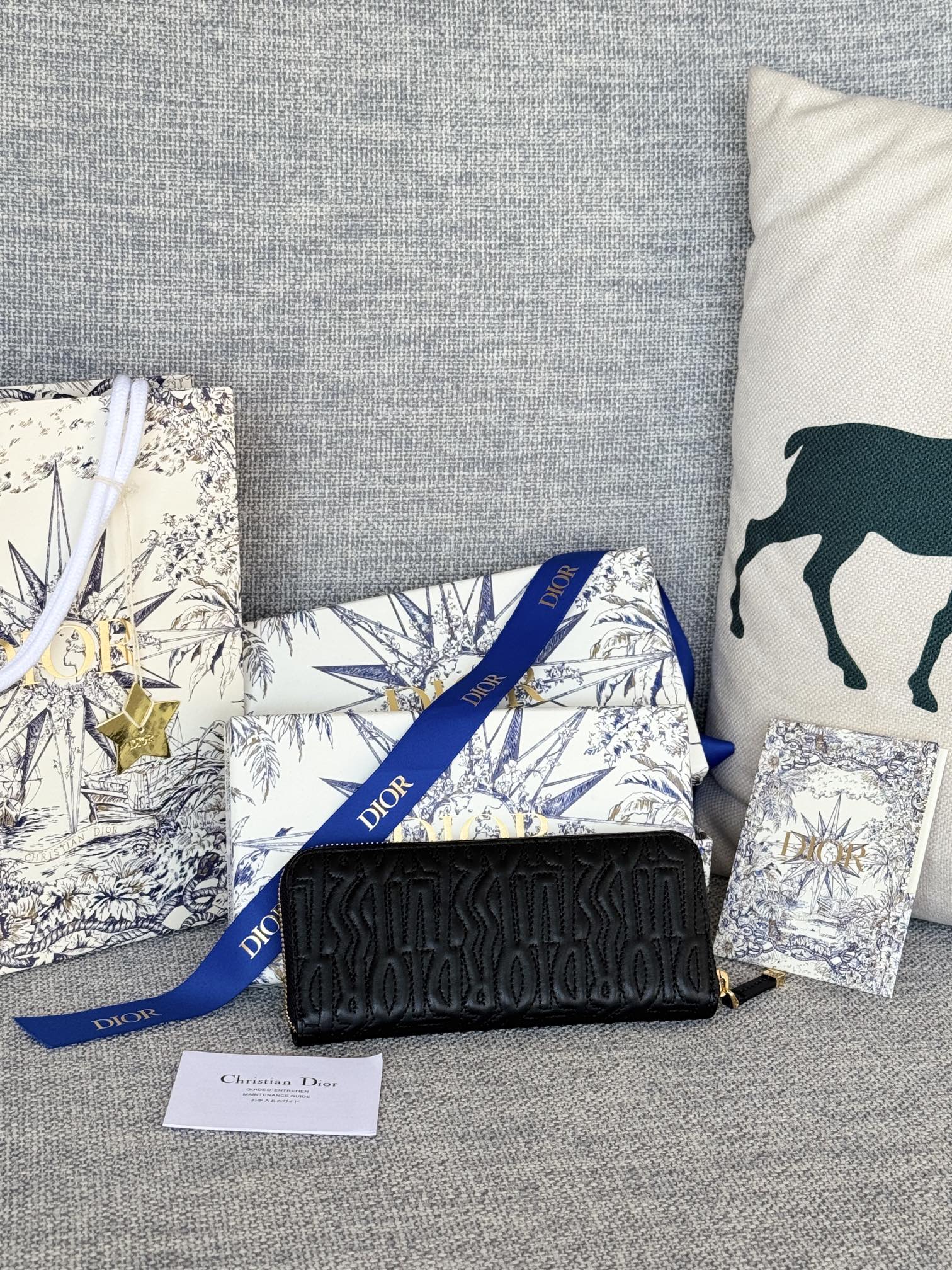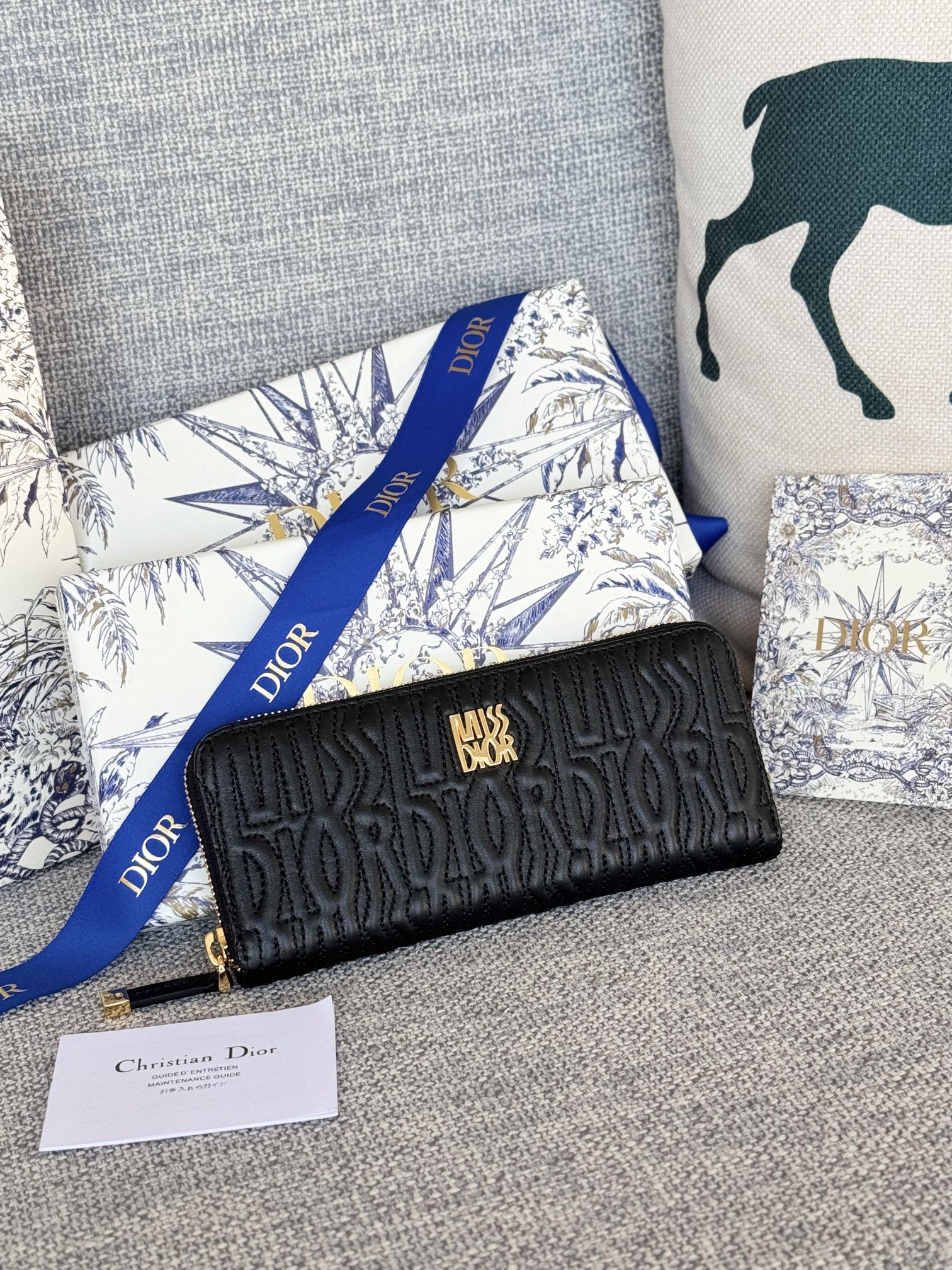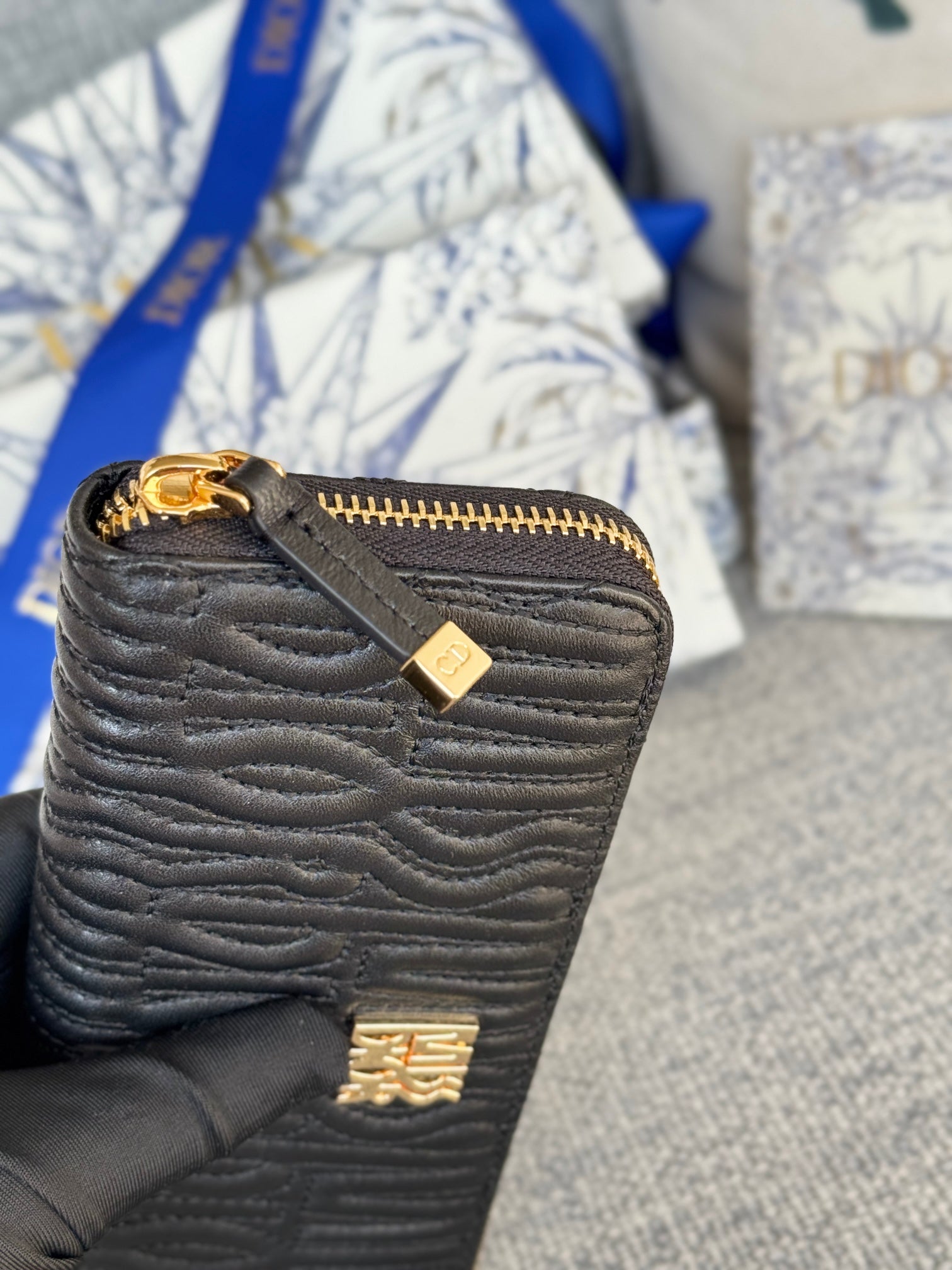 VERTICAL LONG ZIP WALLET 20 IN BLACK QUILTED ALLOVER CALFSKIN