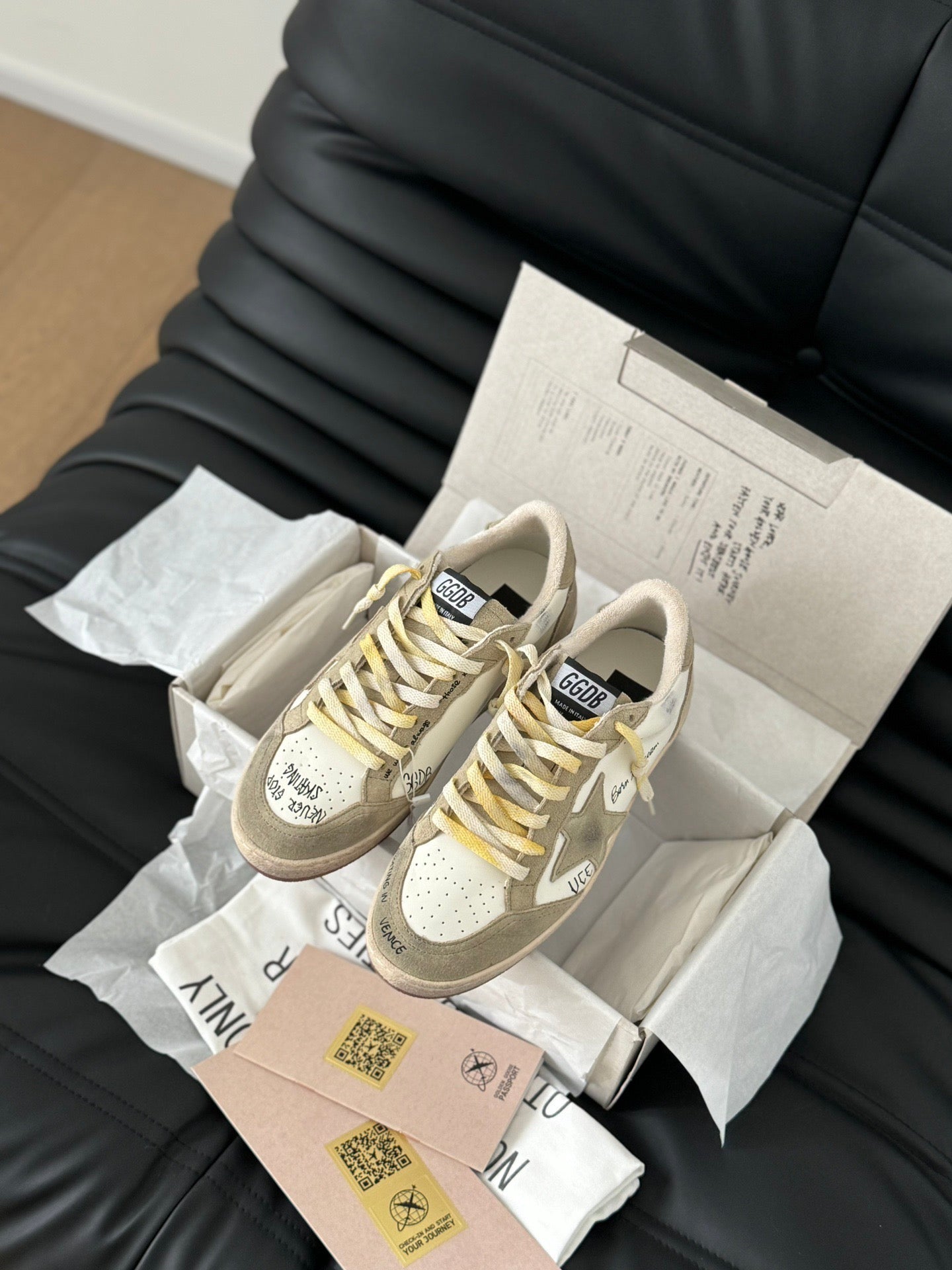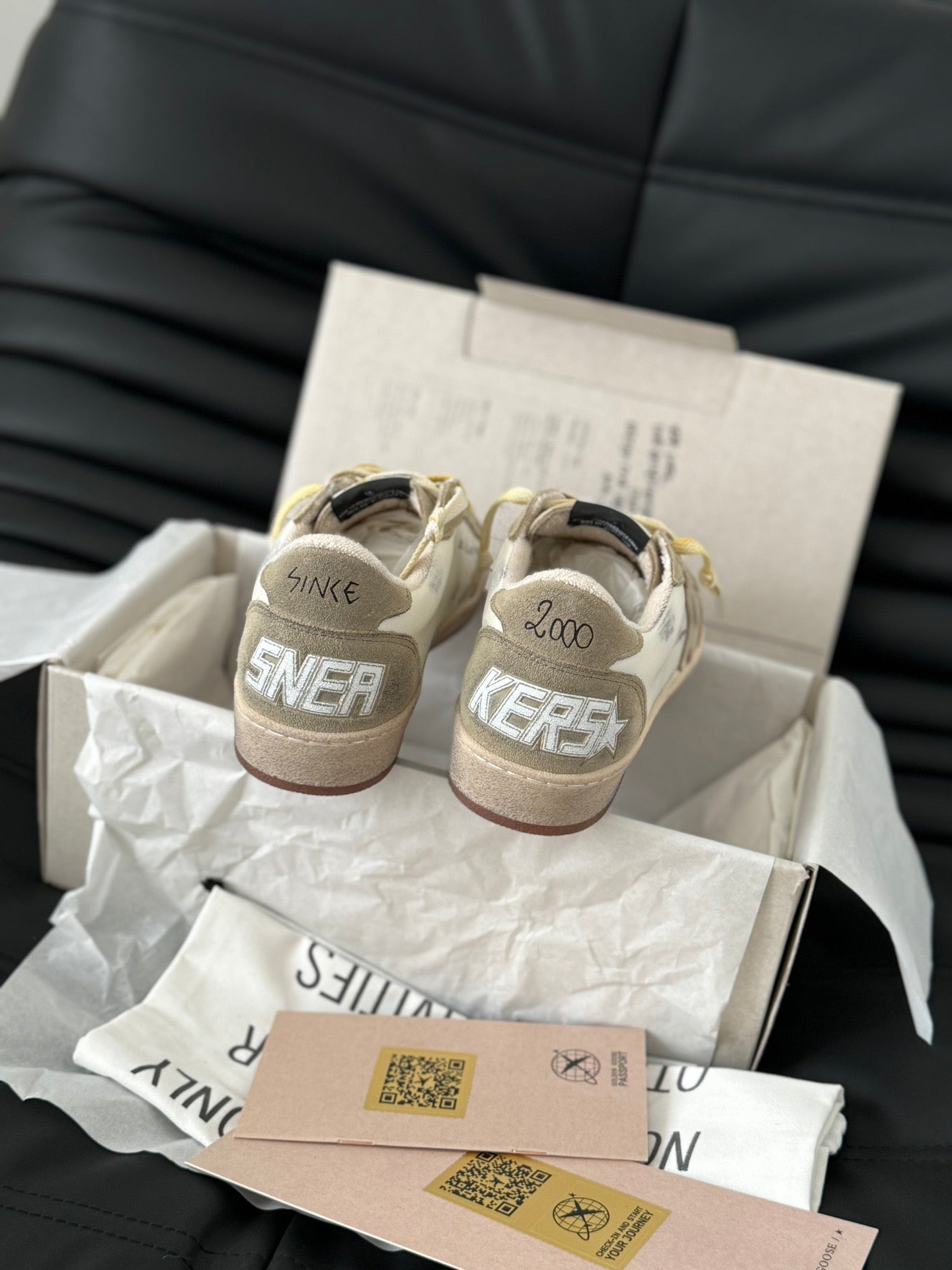 VINTAGE BALLSTAR SNEAKERS IN WHITE AND GREY CALFSKIN AND SUEDE