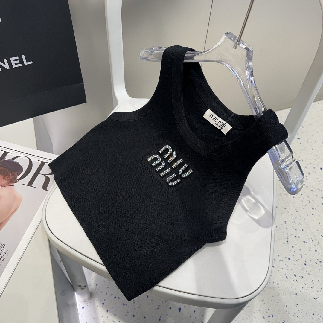 VISCOSE TANK TOP 643230 IN BLACK RIBBED KNIT WITH EMBELLISHED LOGO