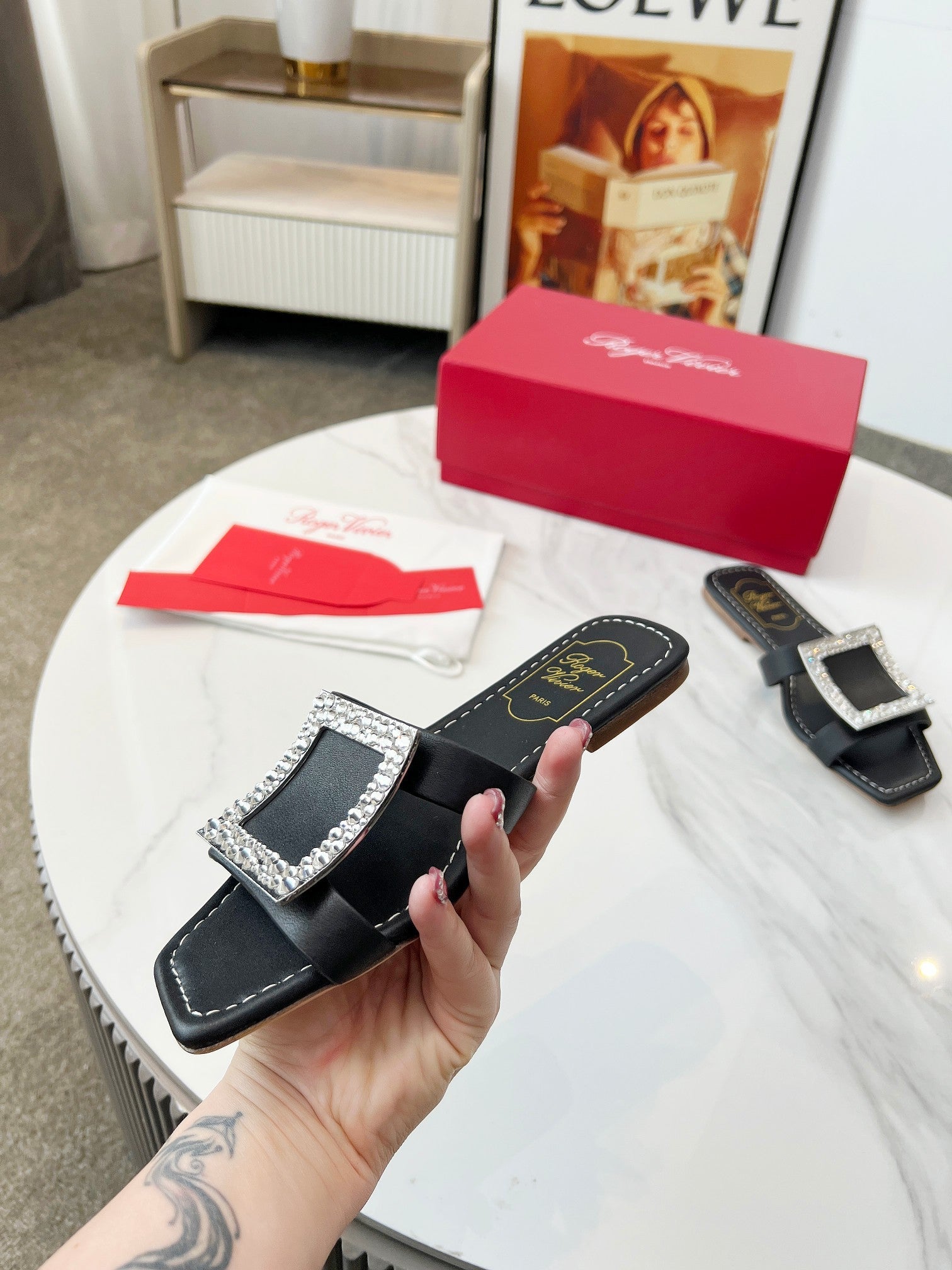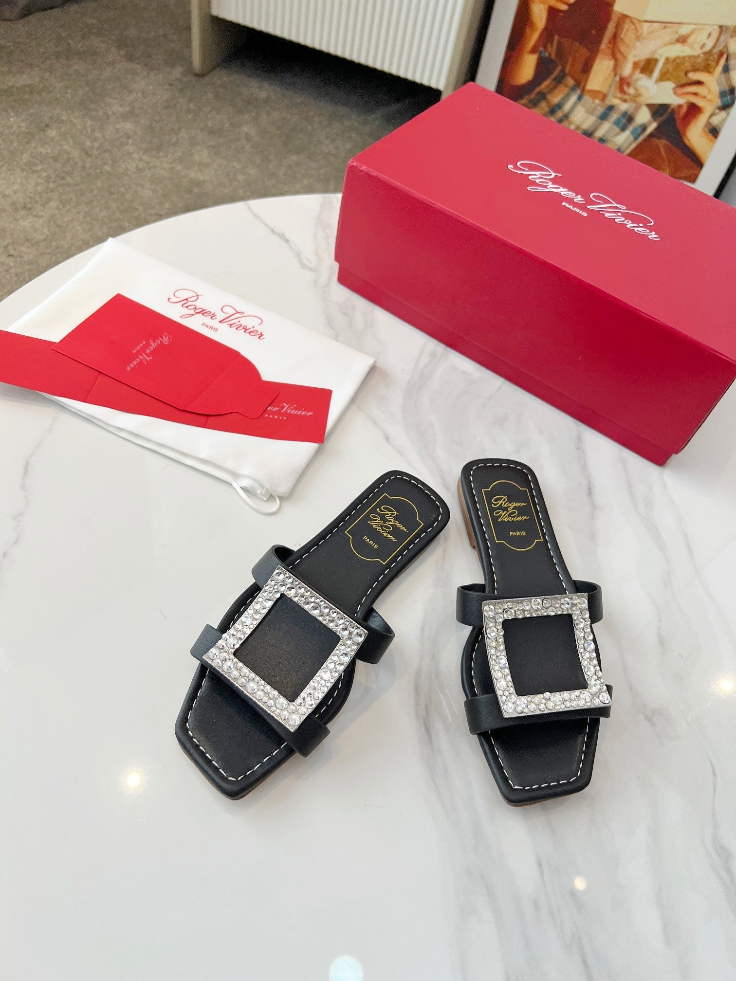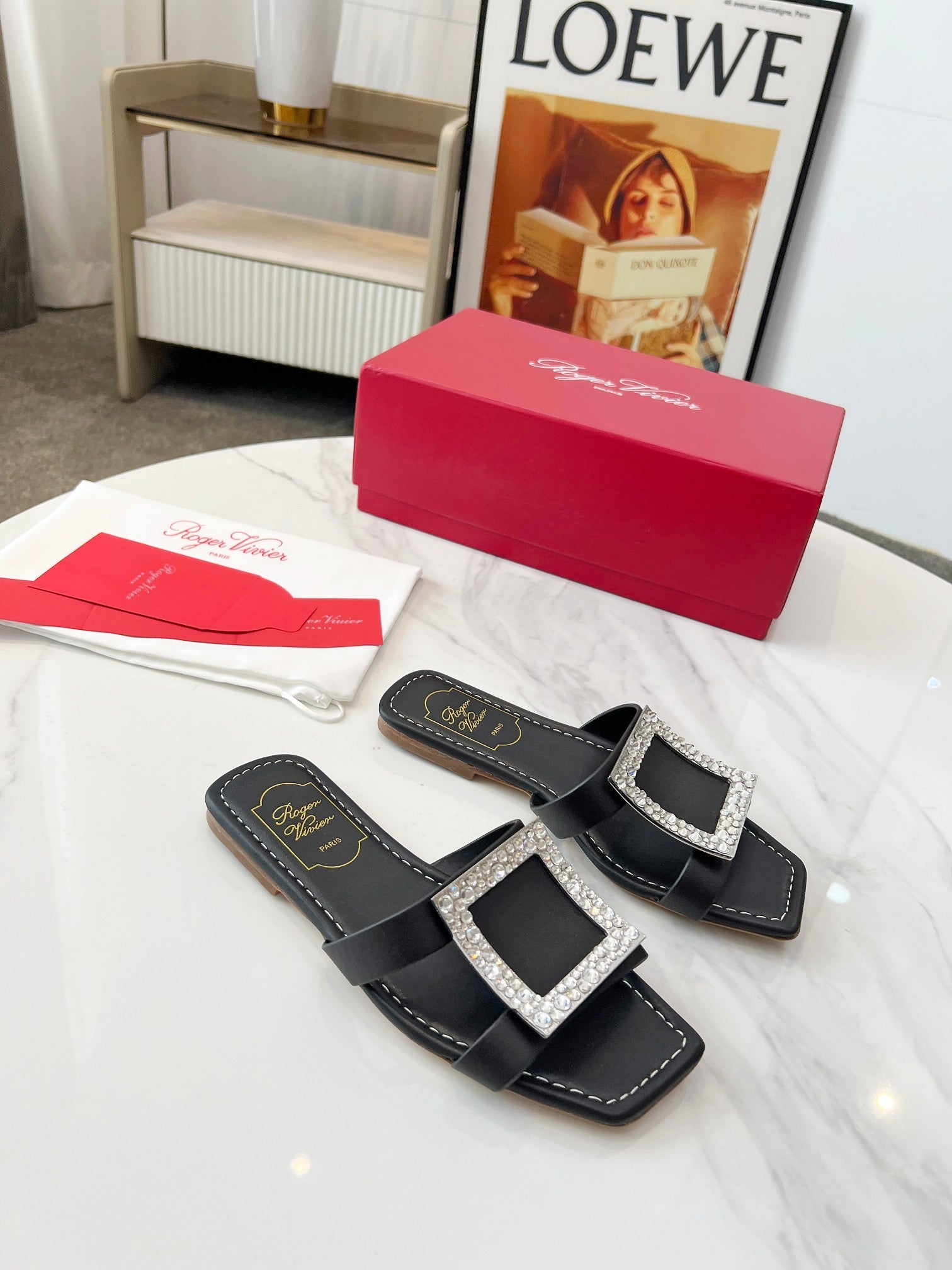 VIV' BY THE SEA MULES IN BLACK CALFSKIN CRYSTAL BUCKLE