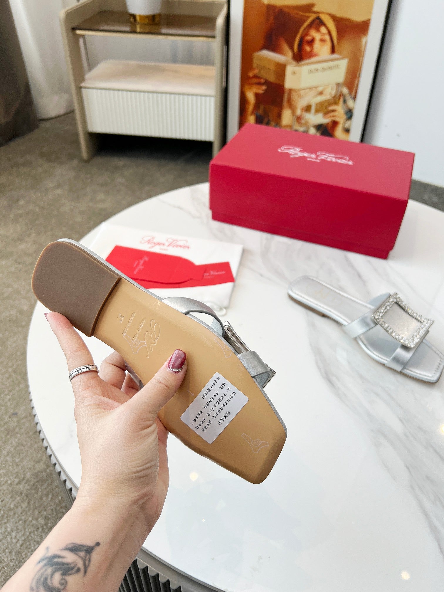 VIV' BY THE SEA MULES IN SILVER CALFSKIN CRYSTAL BUCKLE