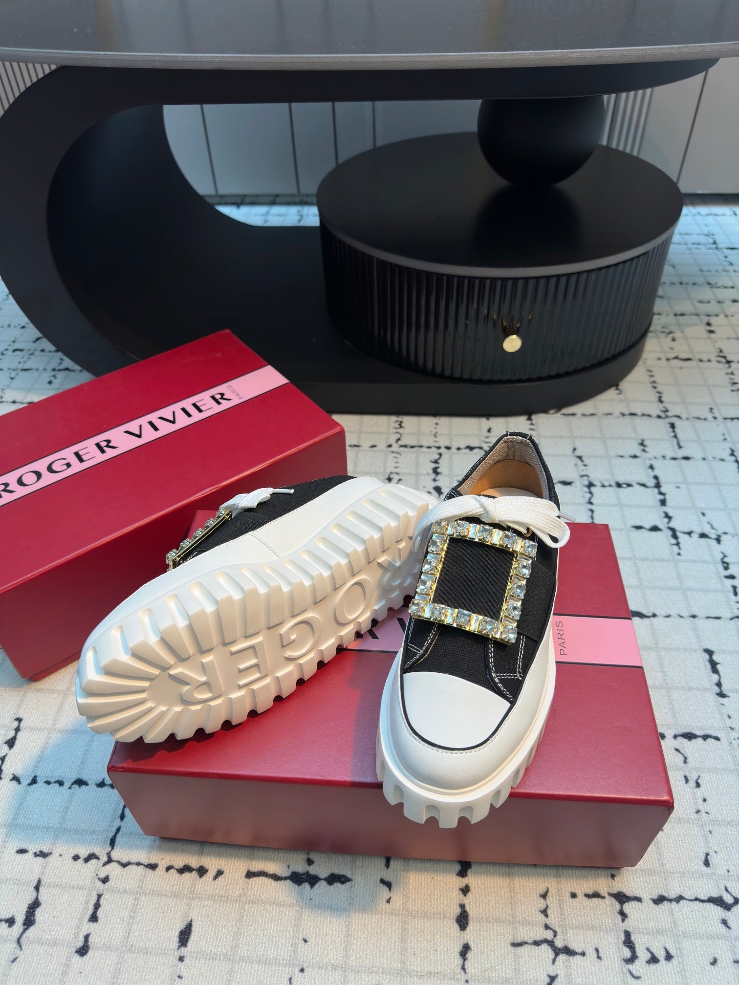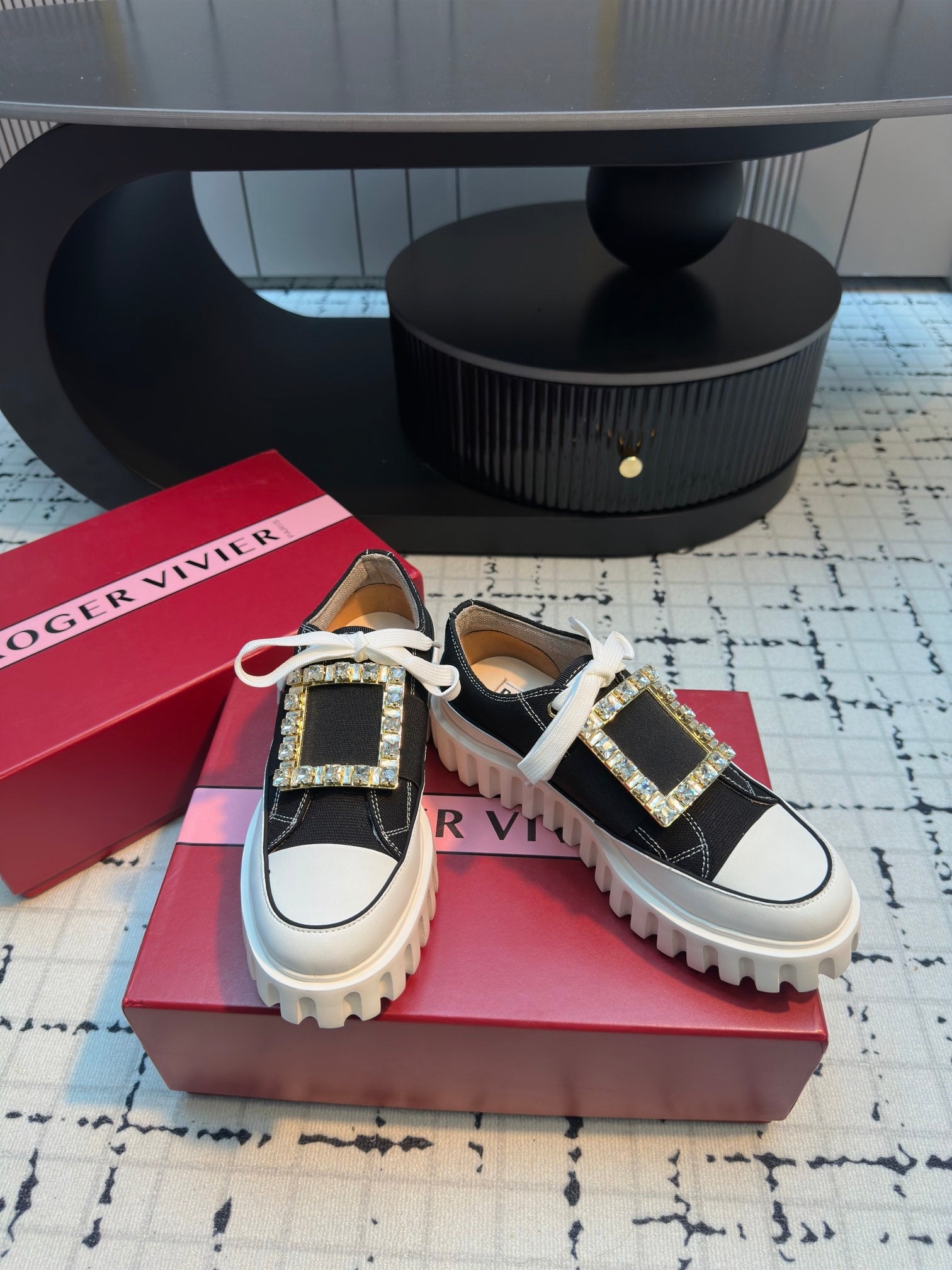 VIV' GO-THICK STRASS BUCKLE SLIP-ON SNEAKERS IN BLACK CANVAS