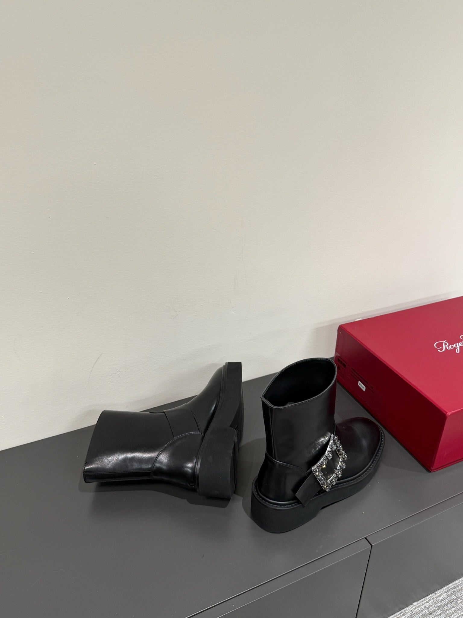 VIV' RANGERS CHELSEA ANKLE BOOTS IN BLACK CALFSKIN WITH BLACK CRYSTAL BUCKLE