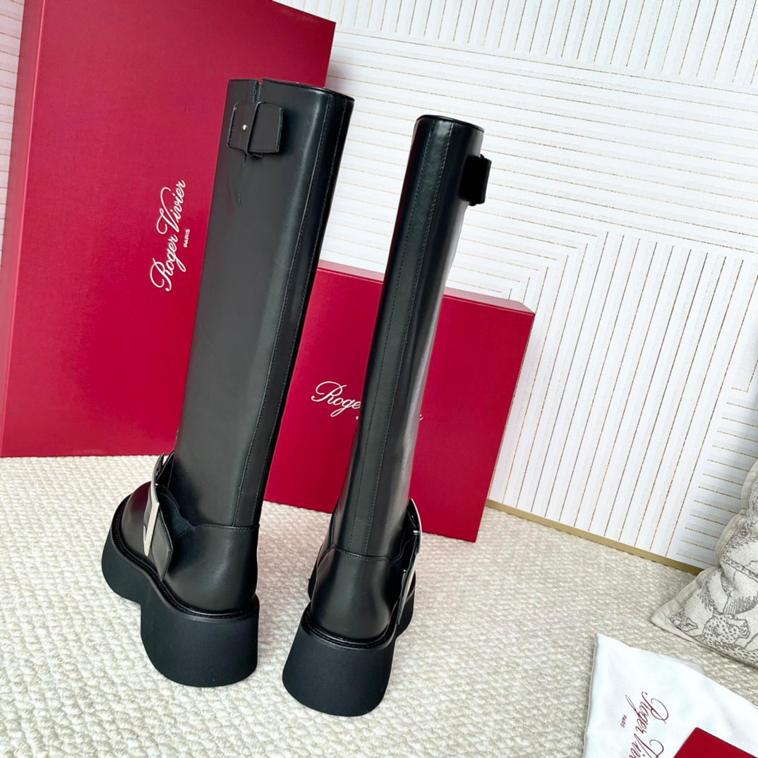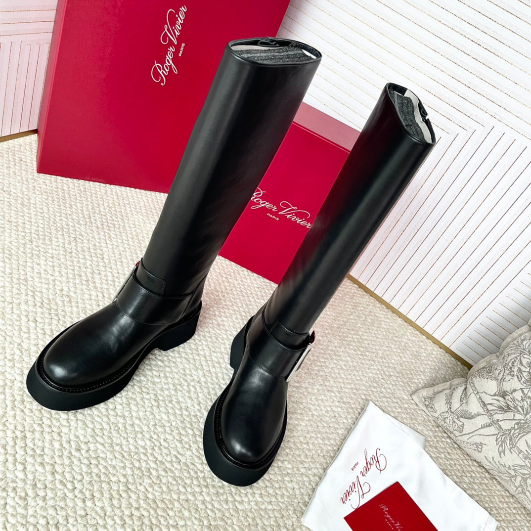 VIV' RANGERS HIGH BIKER IN BLACK CALFSKIN SILVER BUCKLE