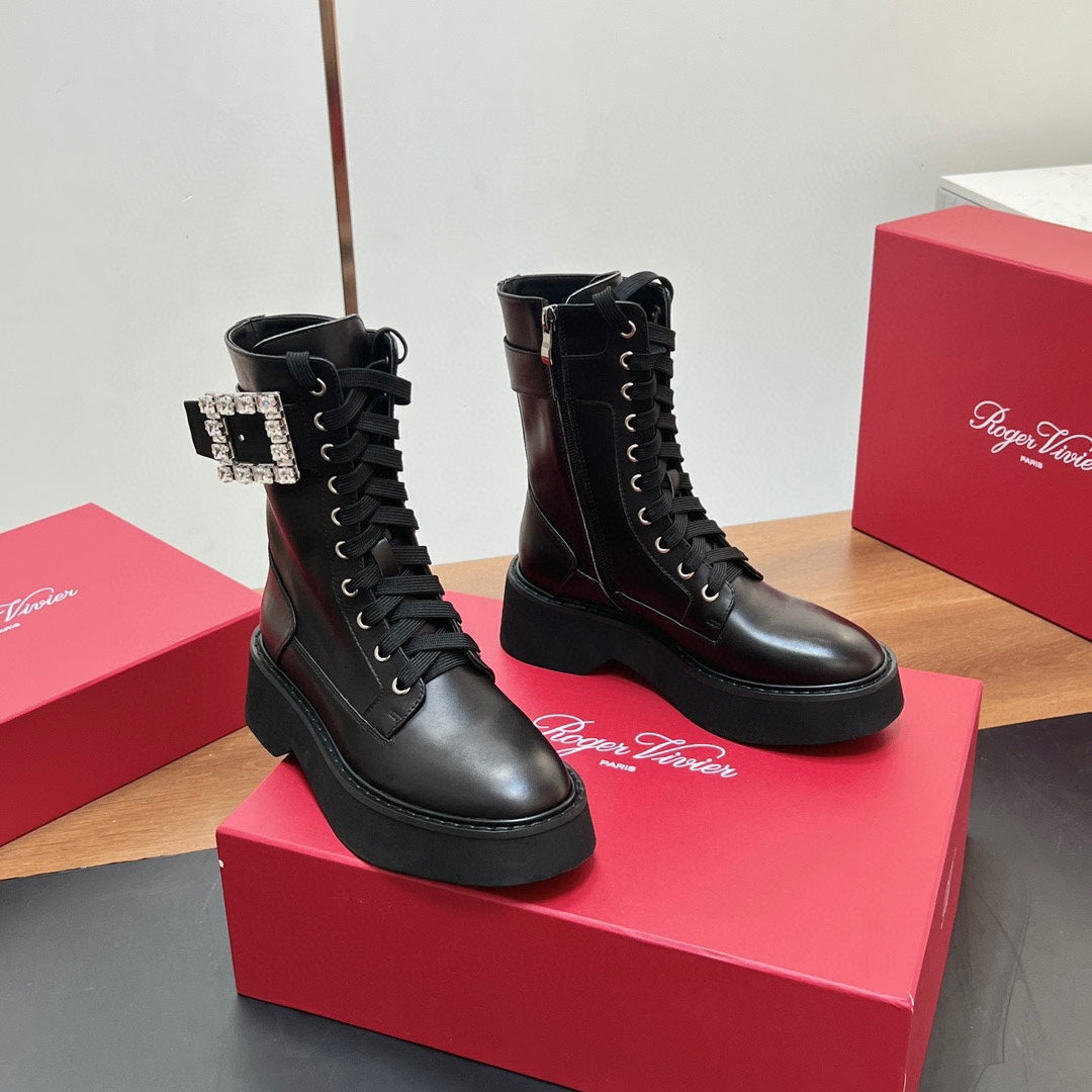 VIV' RANGERS STRASS BUCKLE BOOTS IN BLACK CALFSKIN EMBELLISHED BUCKLE