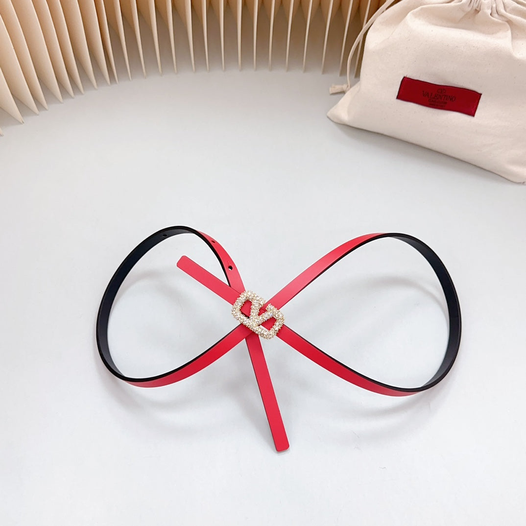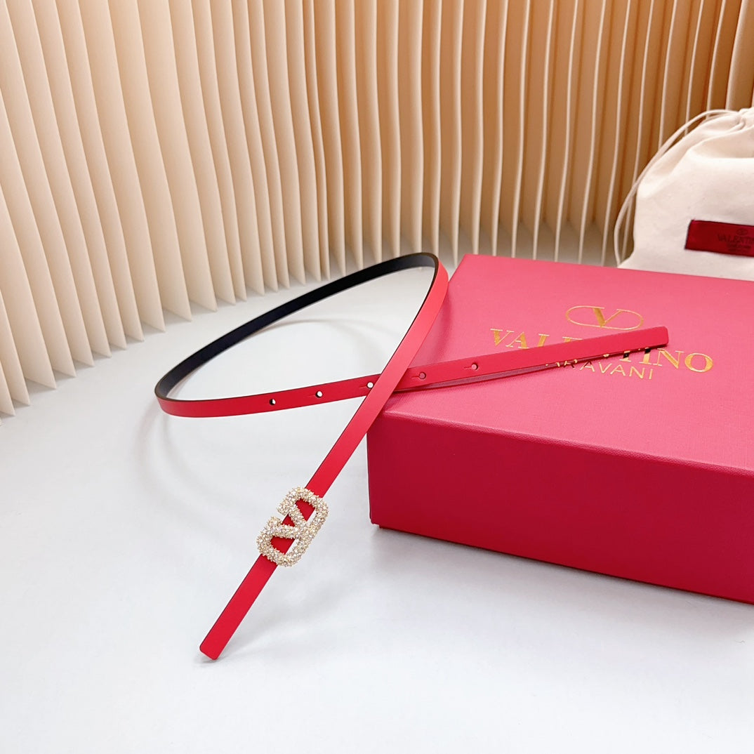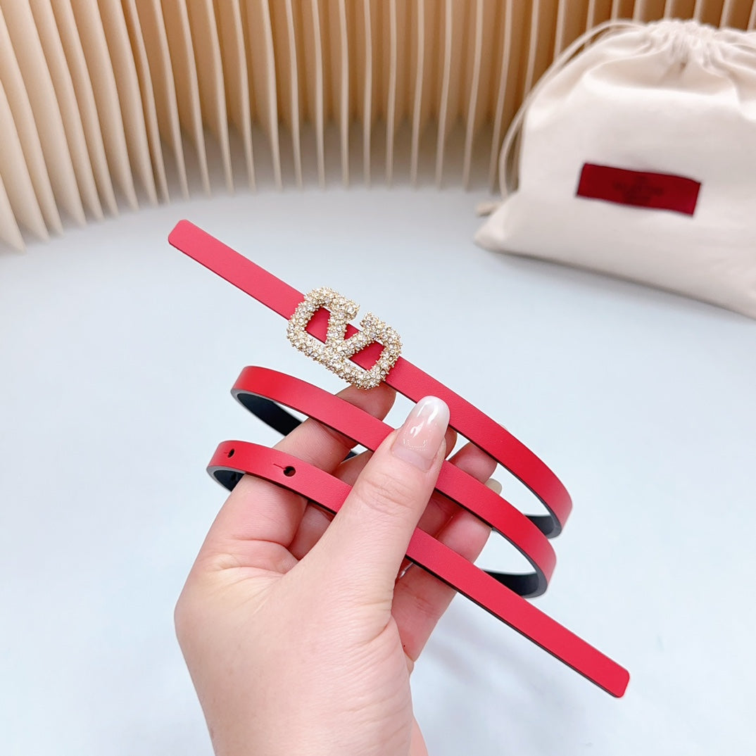 VL Belt 8mm Buckle Gold Diamond Leather Red Black