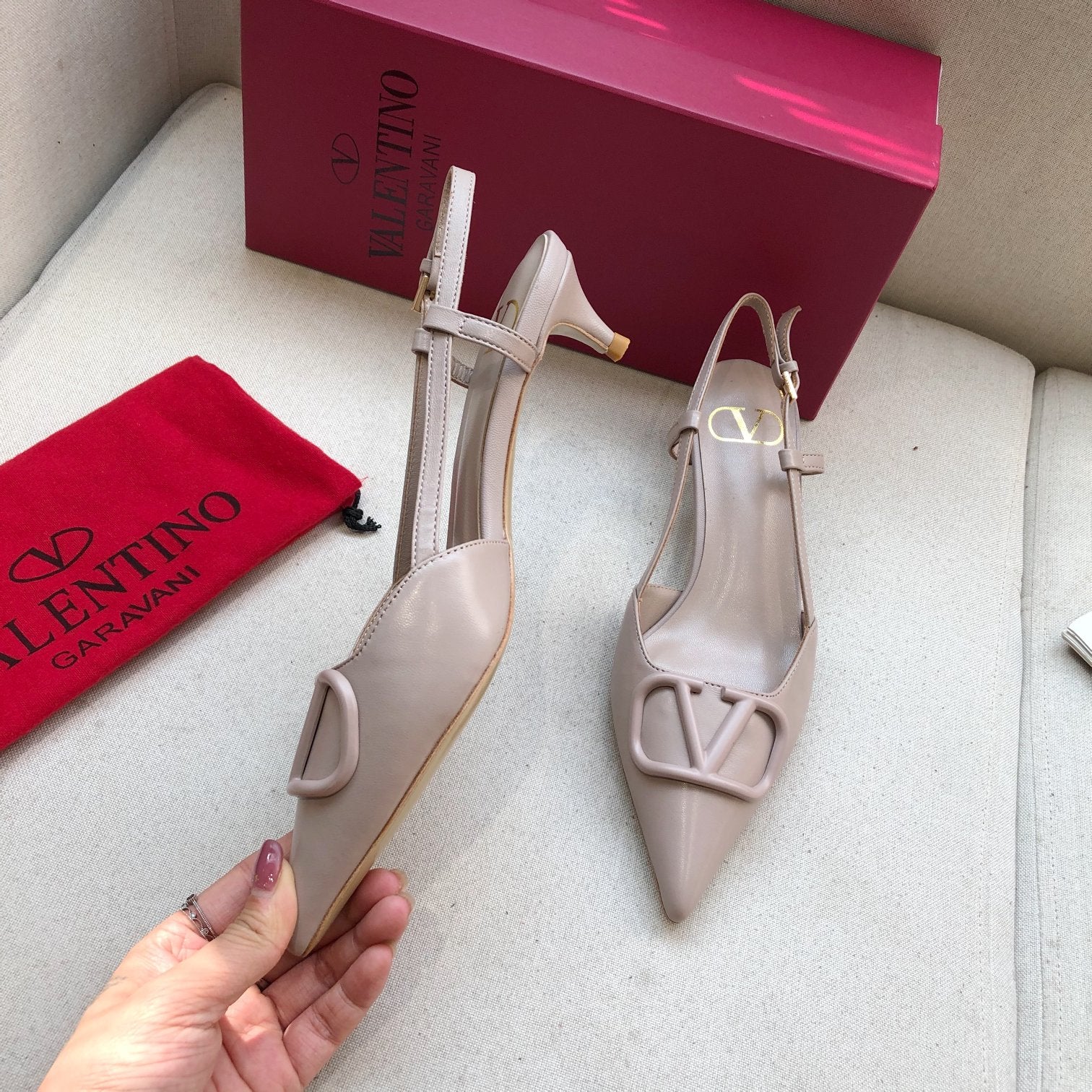 VLOGO SIGNATURE PALE PINK CALFSKIN HIGH SLINGBACK PUMP 4 CM