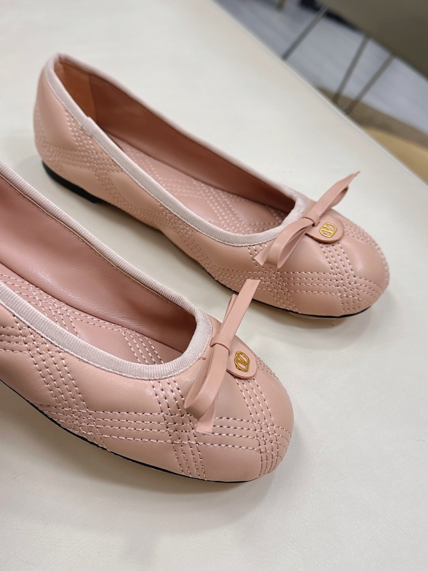 VLTN CLASSIC BALLET FLATS 25S IN NUDE PINK CALFSKIN WITH BOW