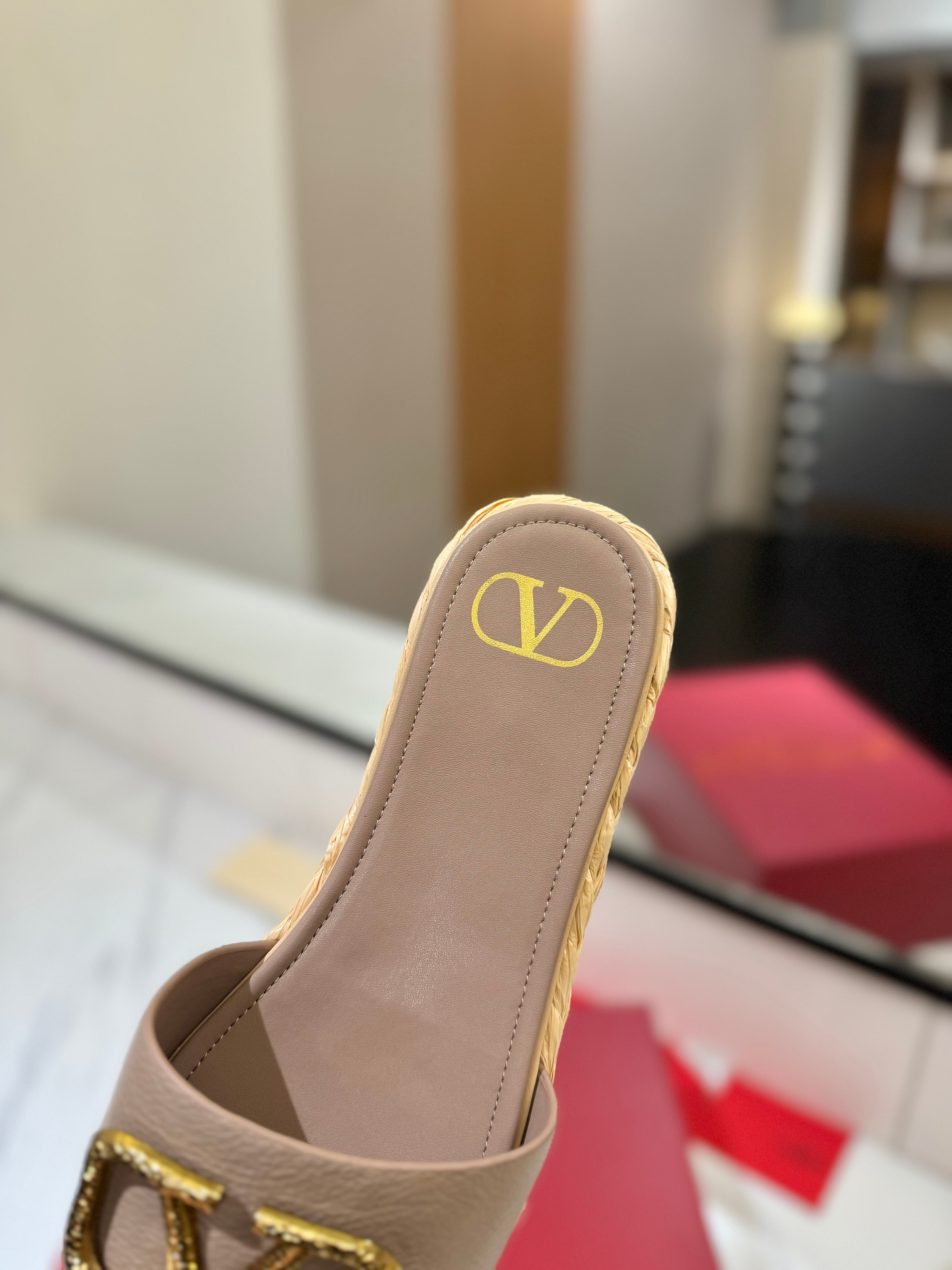 VLTN ESPADRILLE SLIDES 25S IN BEIGE BROWN LAMBSKIN STYLE 4