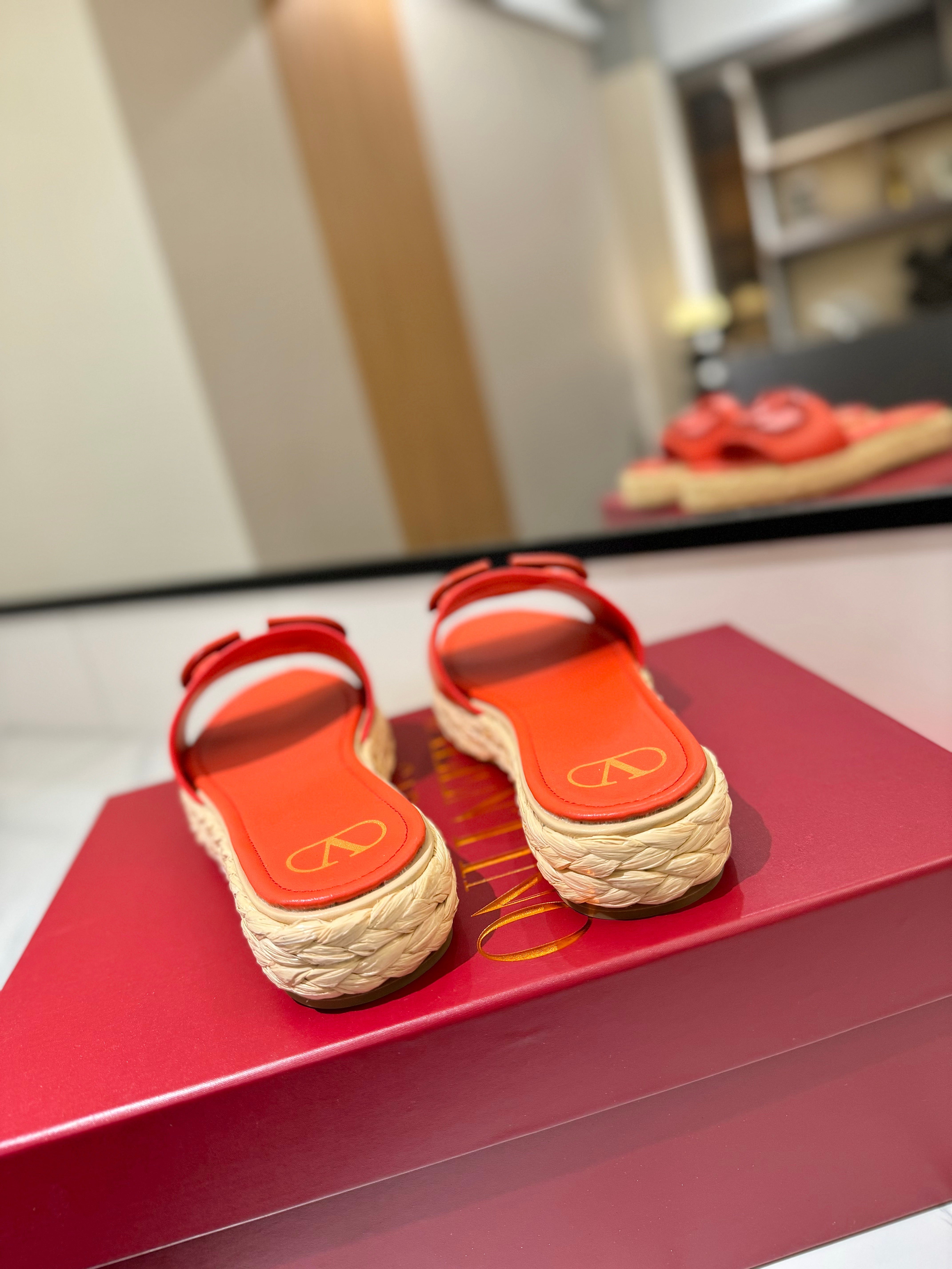 VLTN ESPADRILLE SLIDES 25S IN ORANGE LAMBSKIN STYLE 6