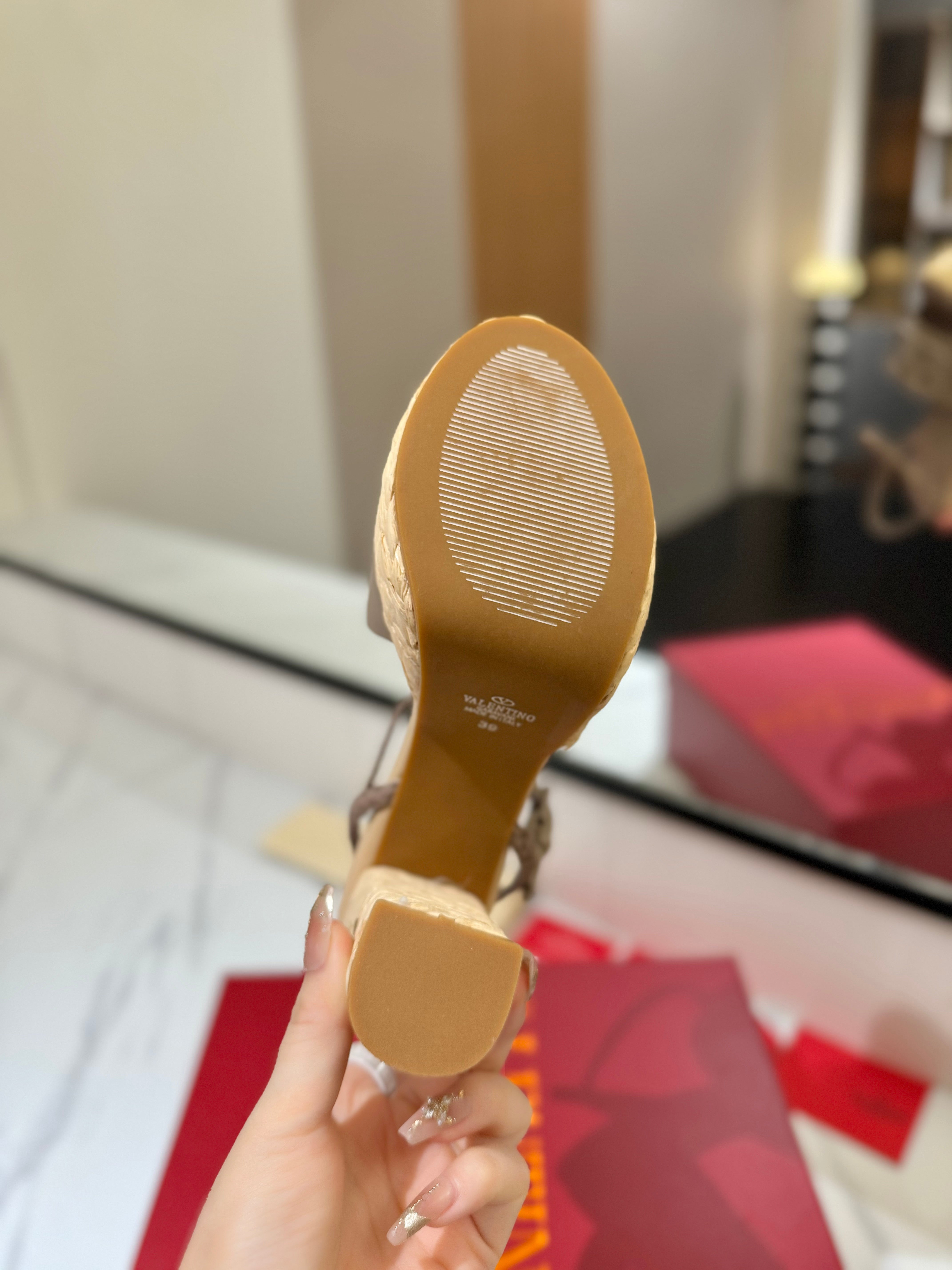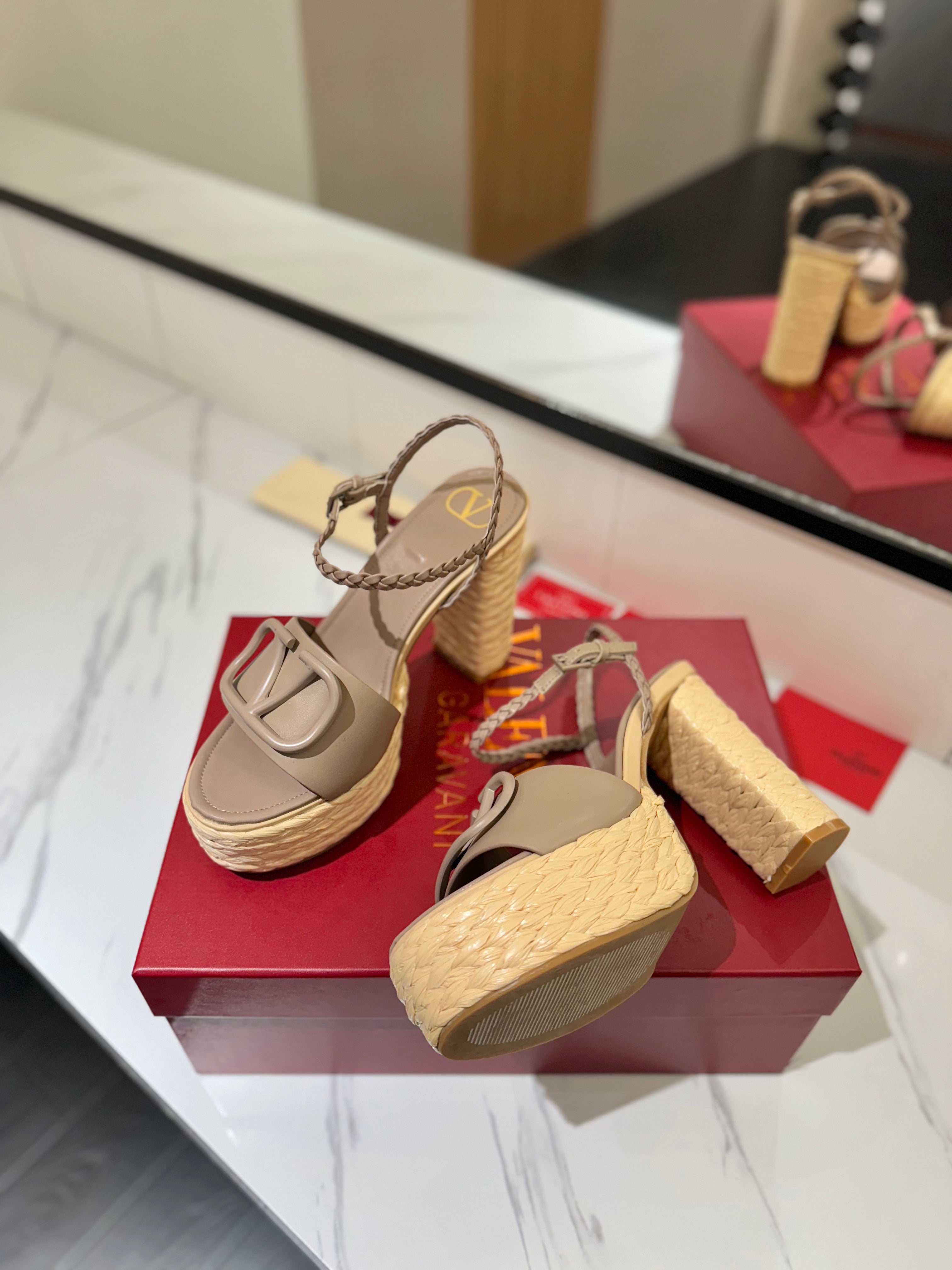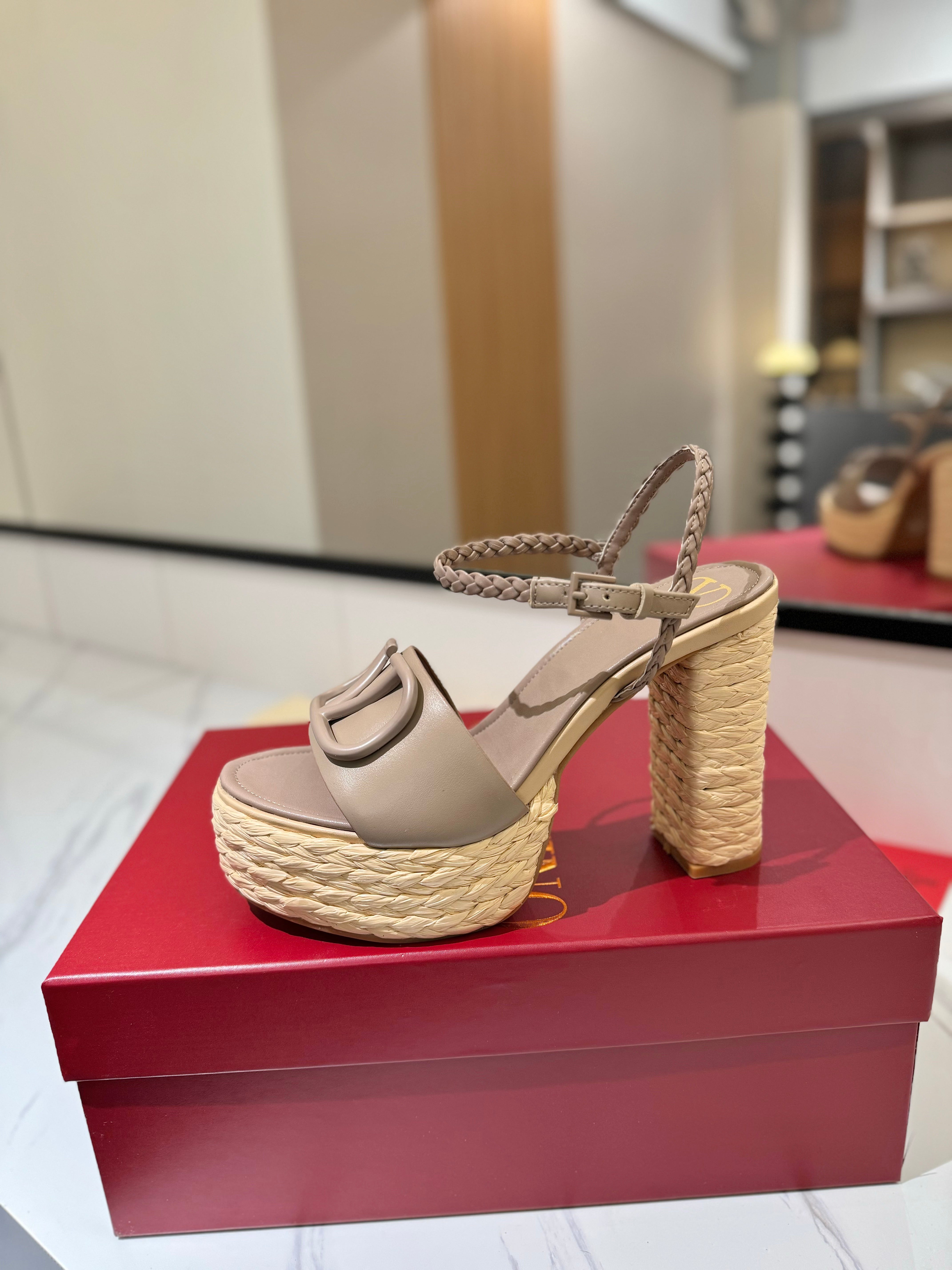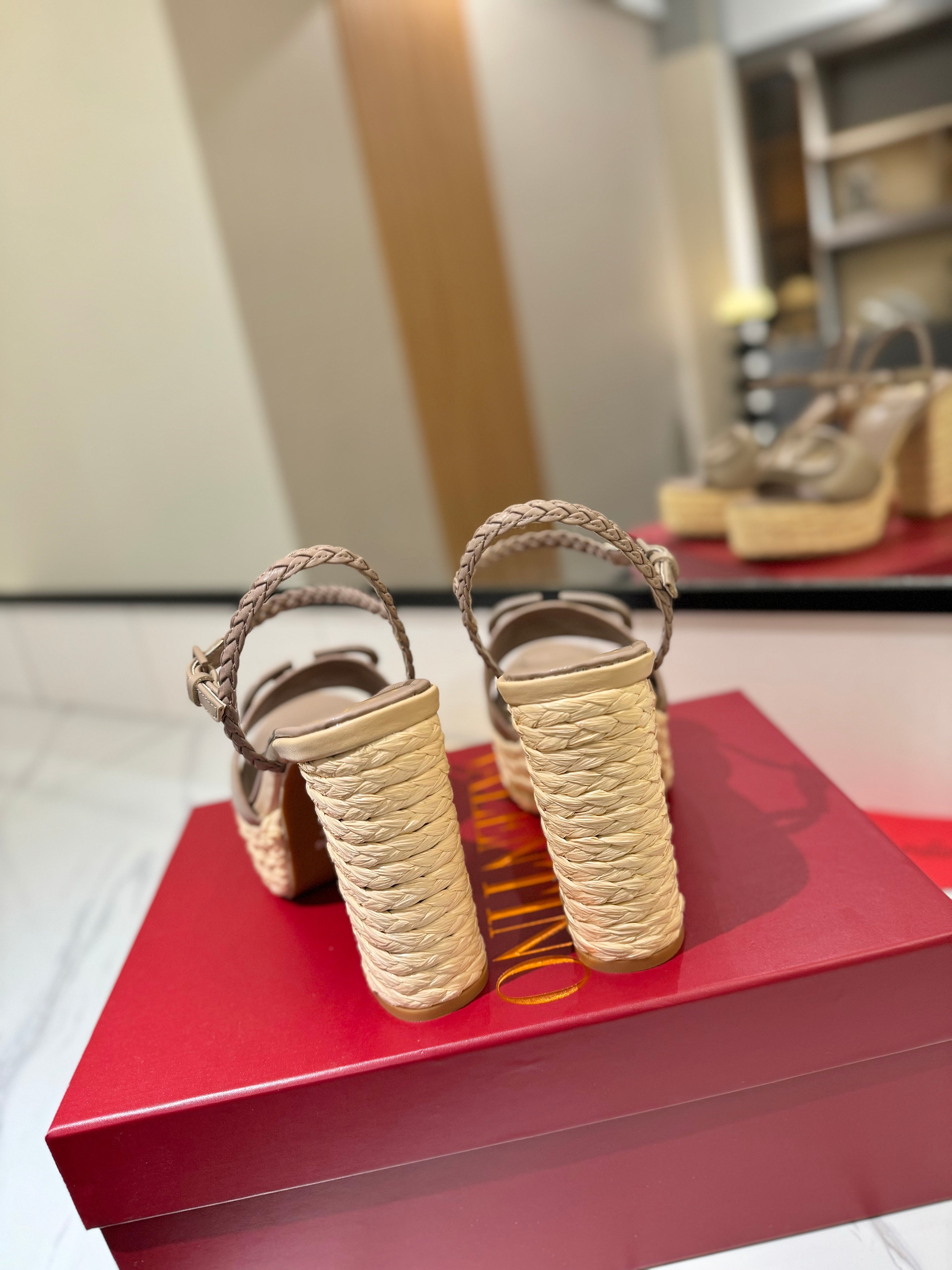 VLTN ESPADRILLE WEDGE SANDALS 25S 115 MM IN BEIGE BROWN LAMBSKIN