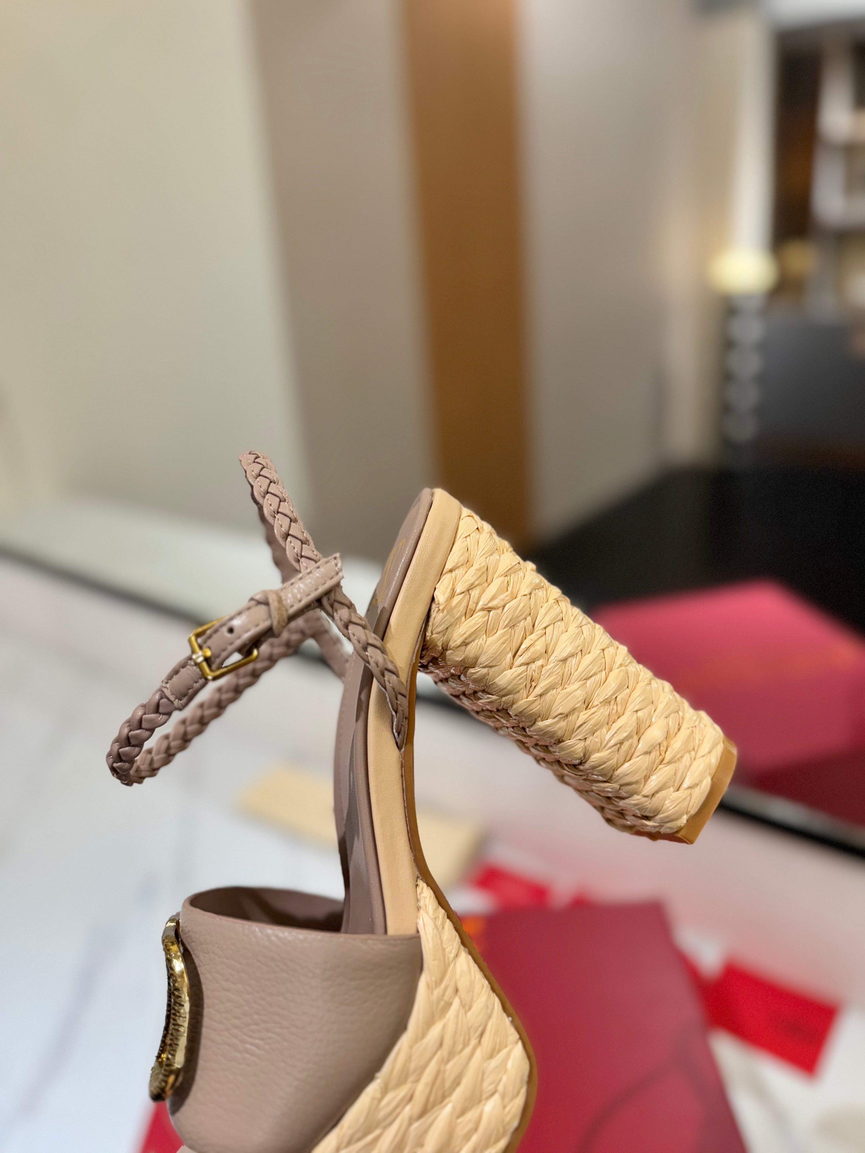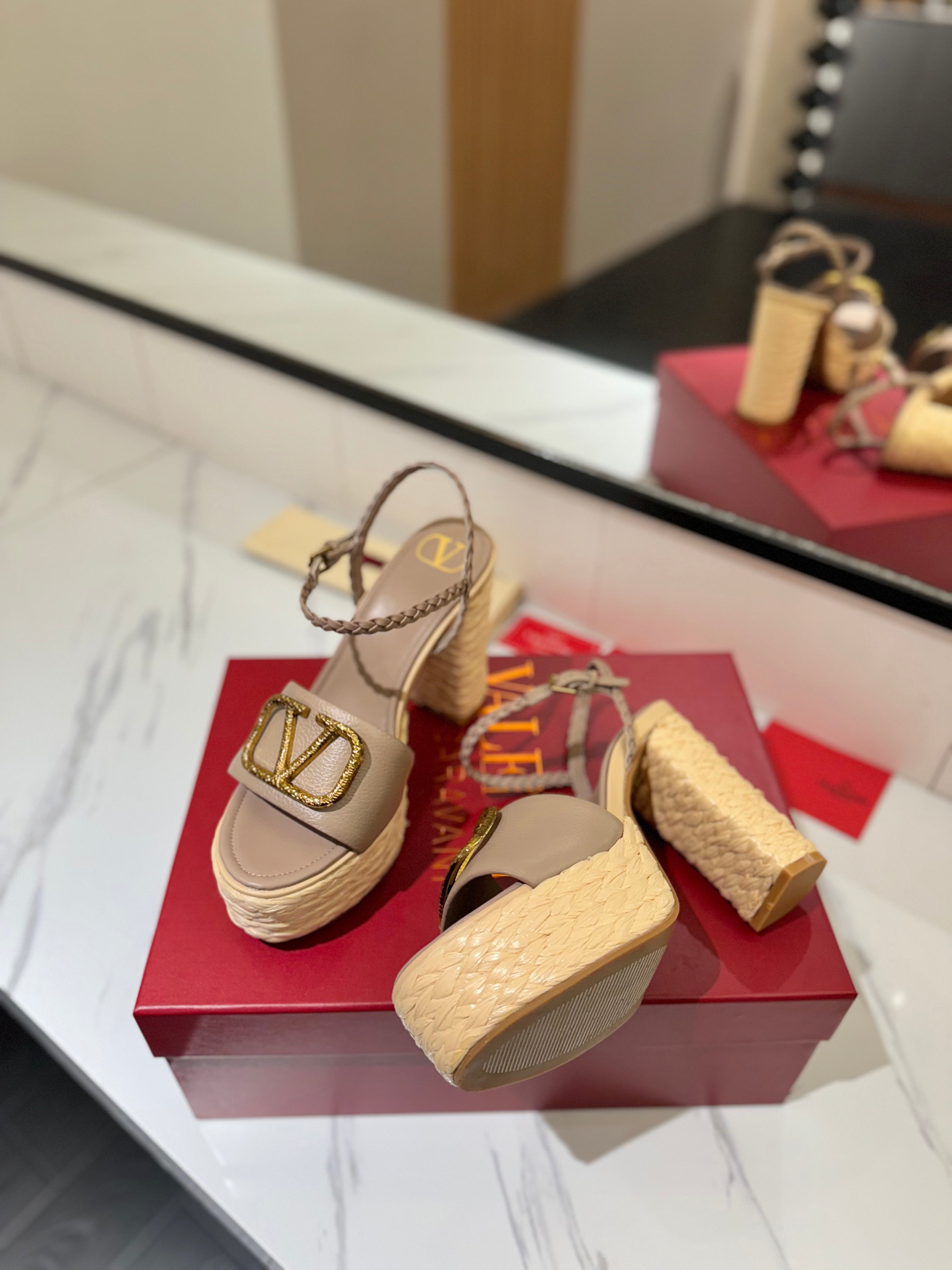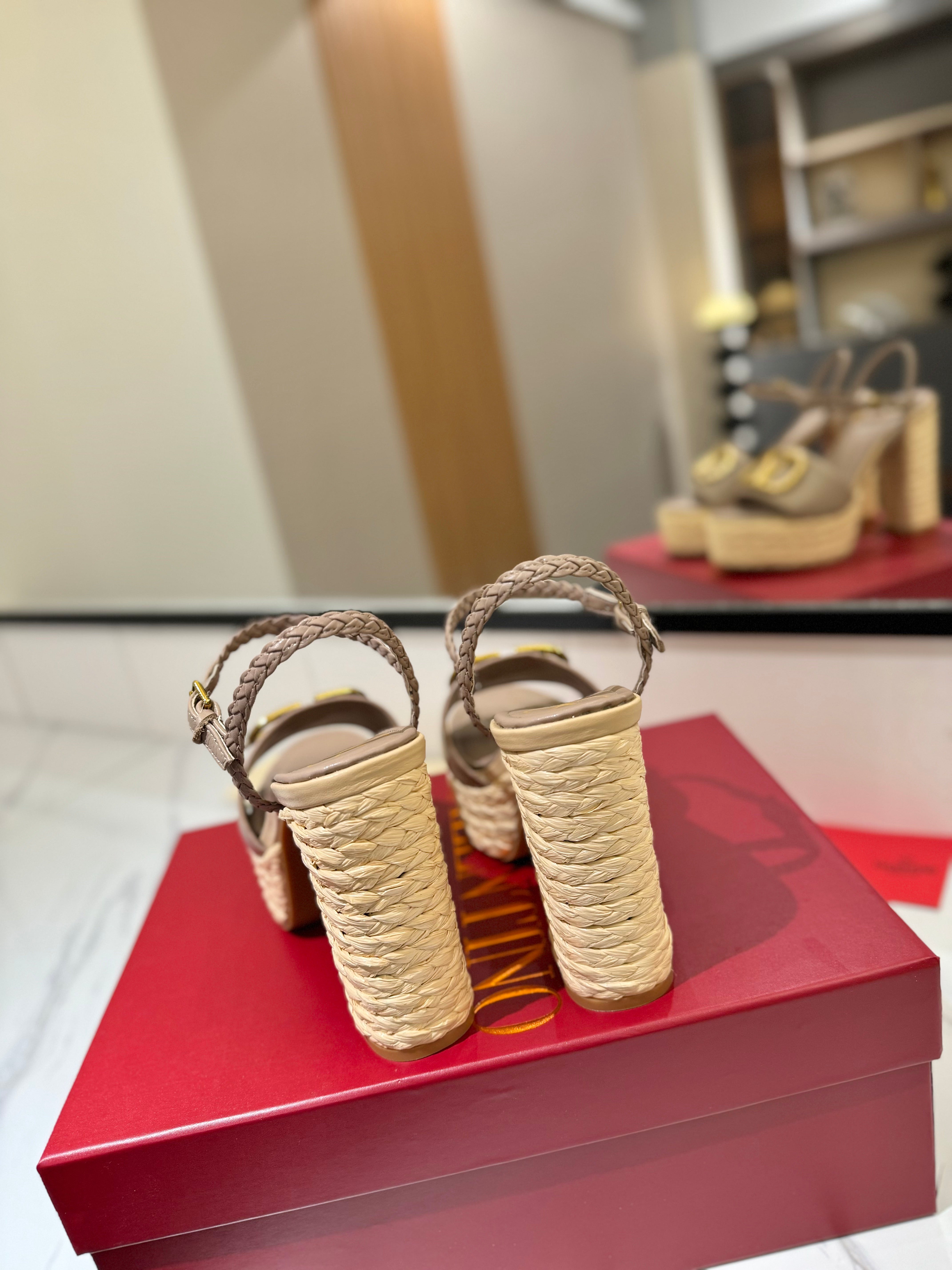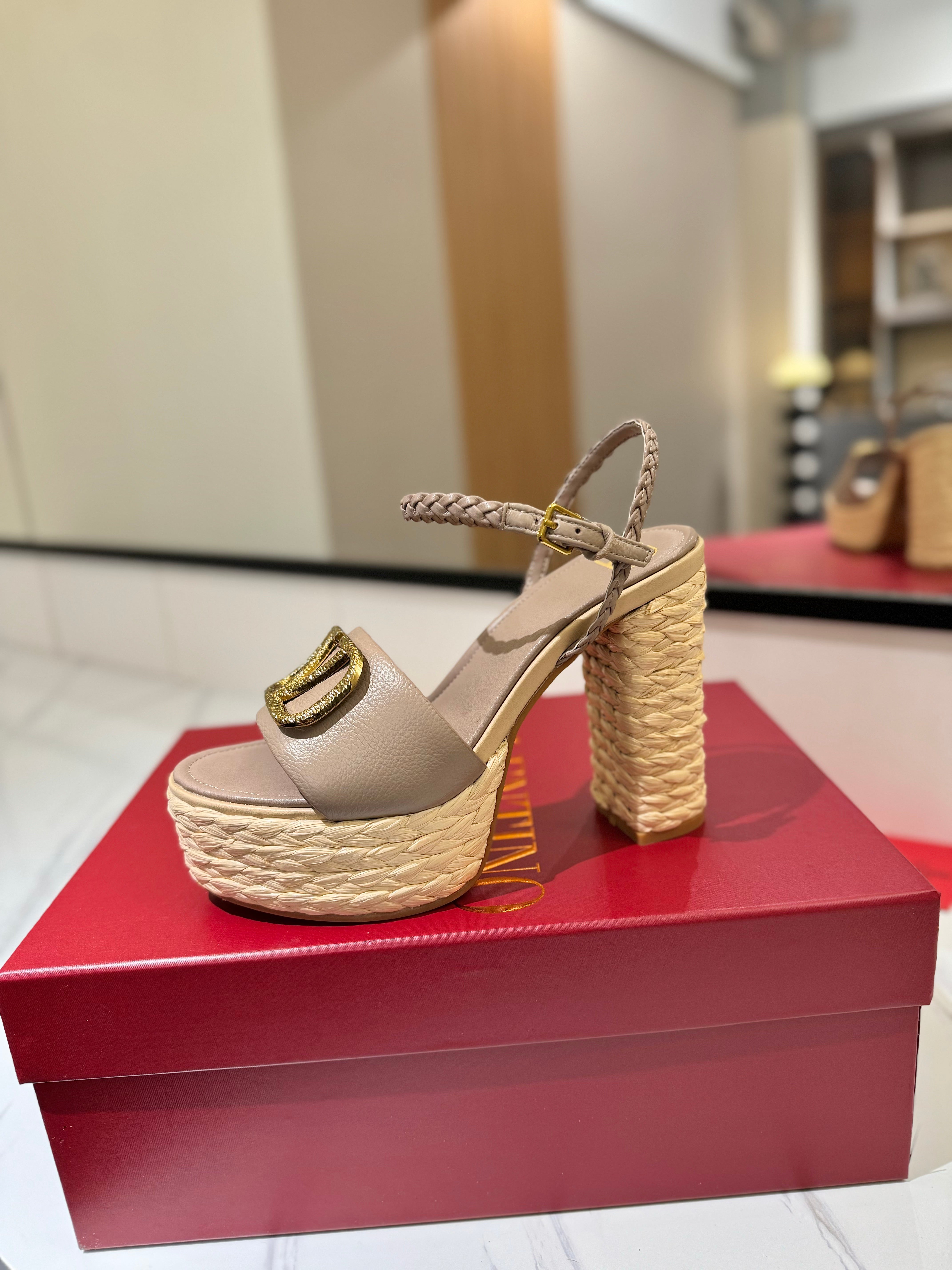VLTN ESPADRILLE WEDGE SANDALS 25S 115 MM IN BEIGE BROWN LAMBSKIN WITH GOLD HARDWARE