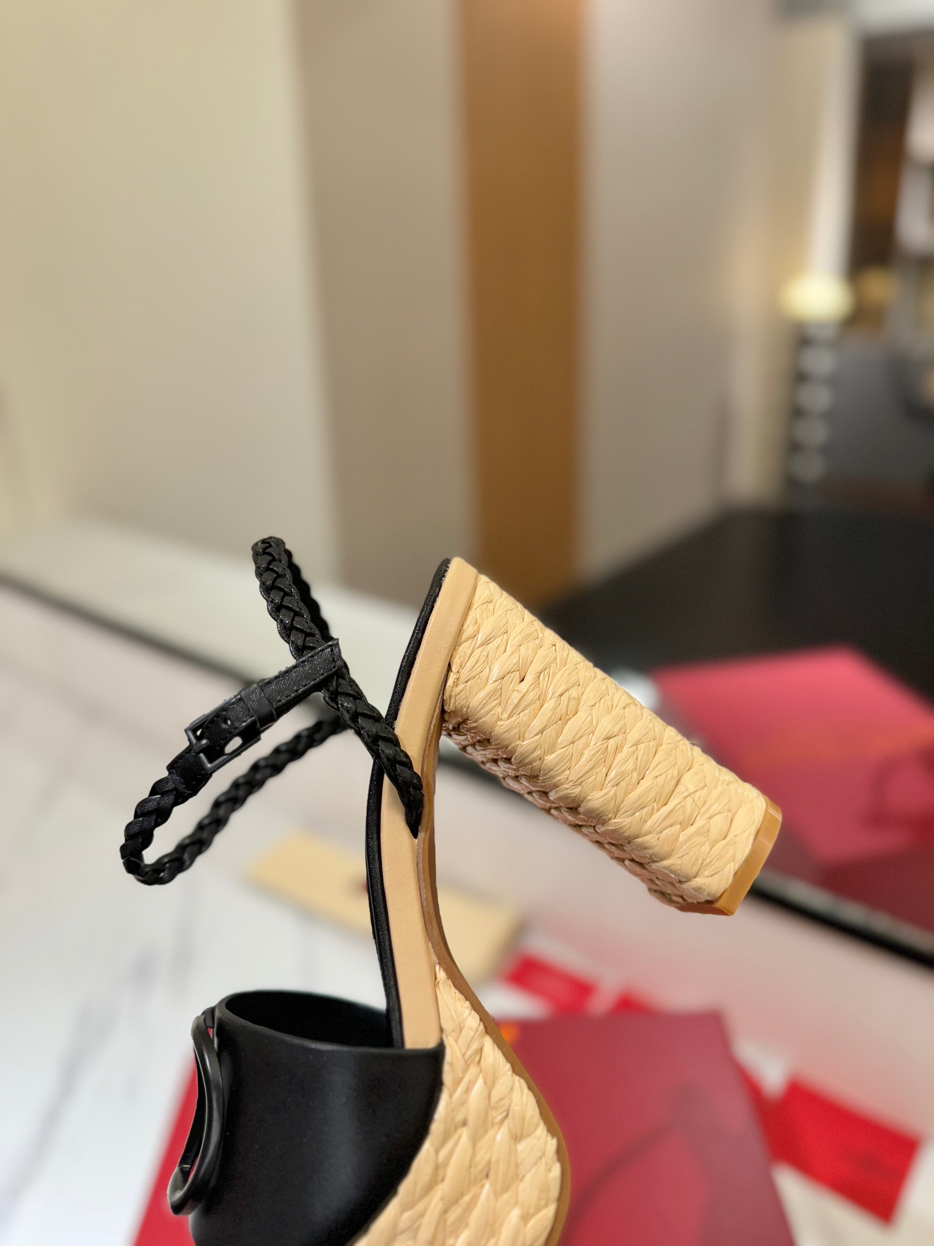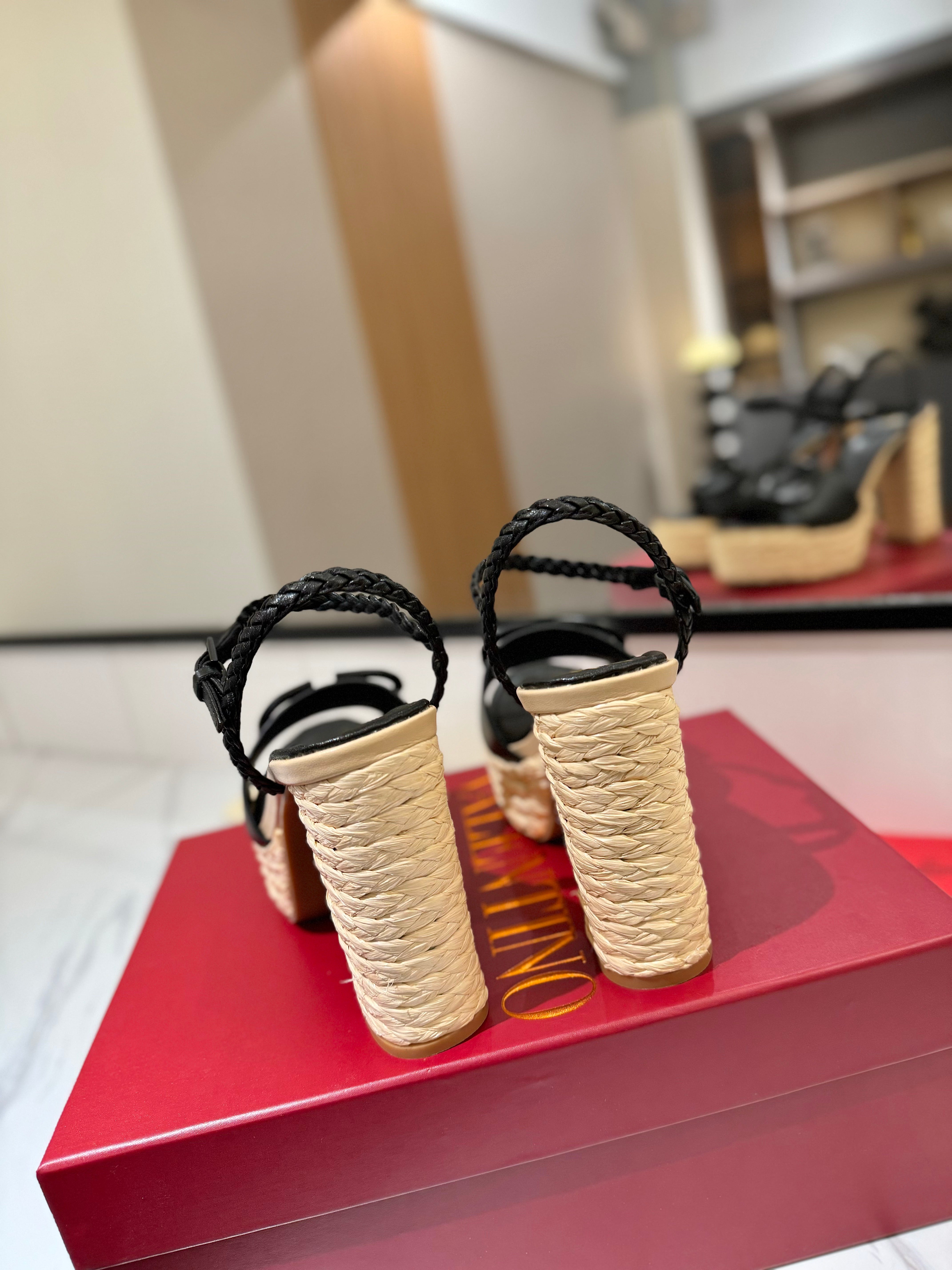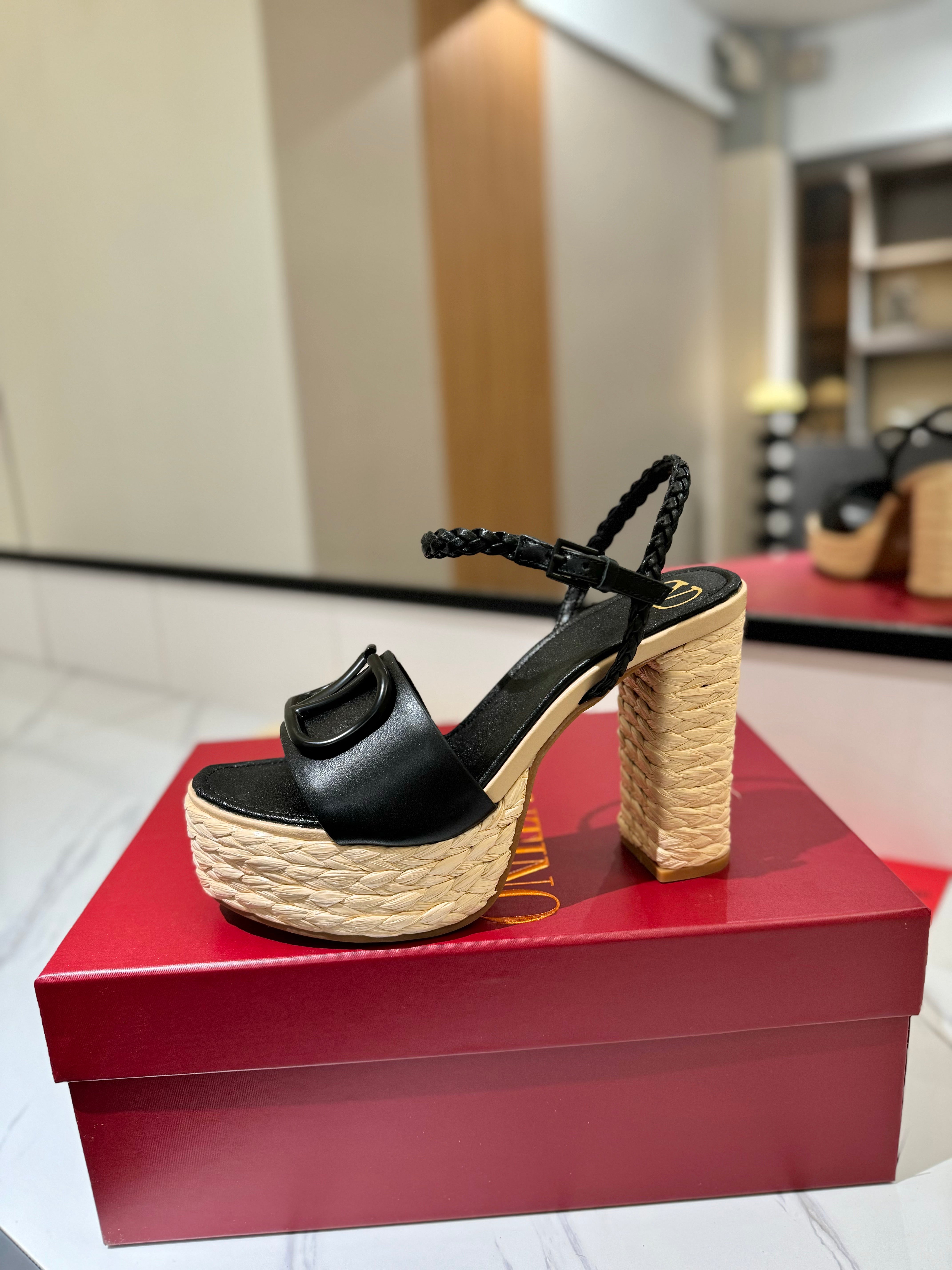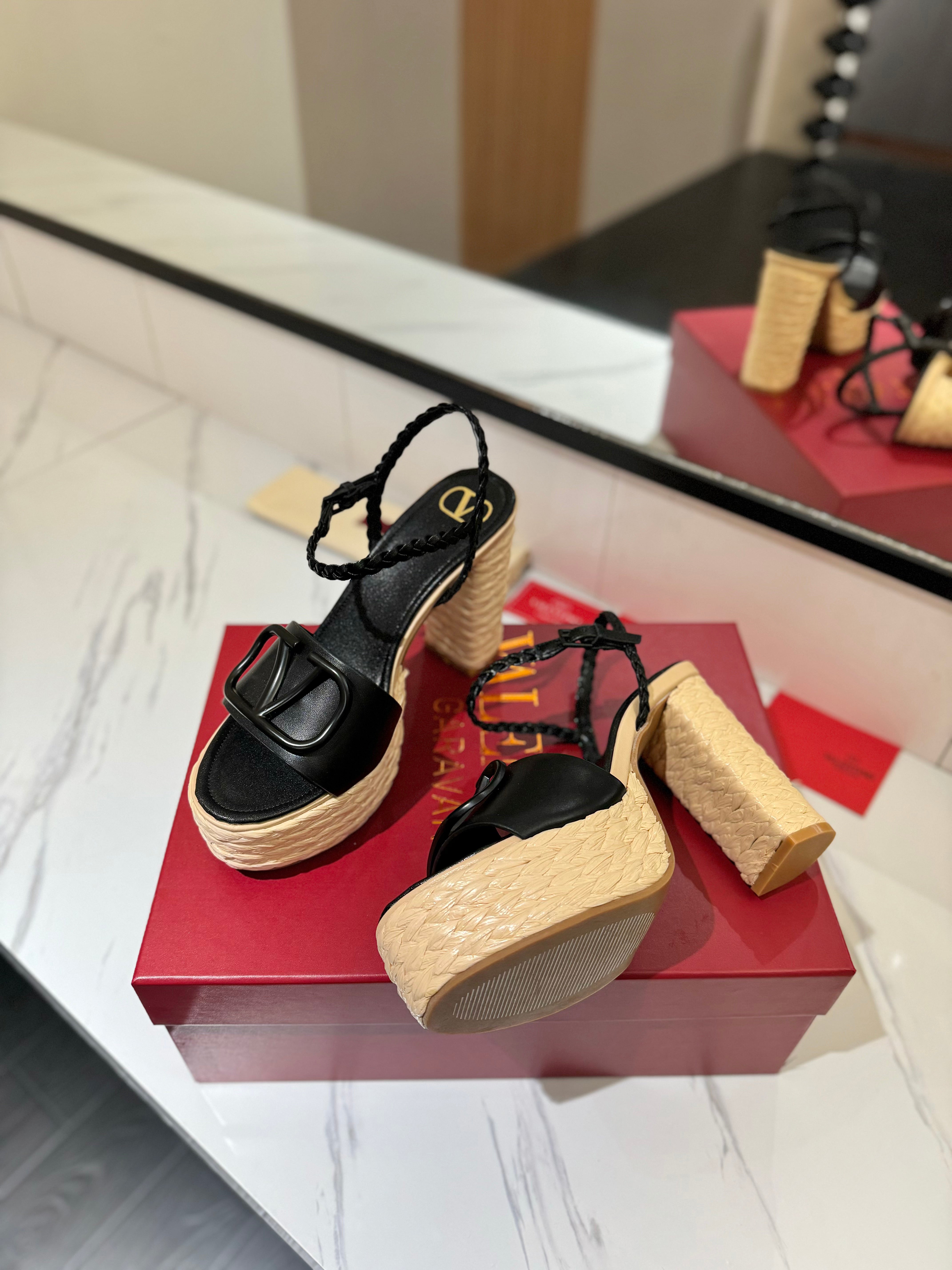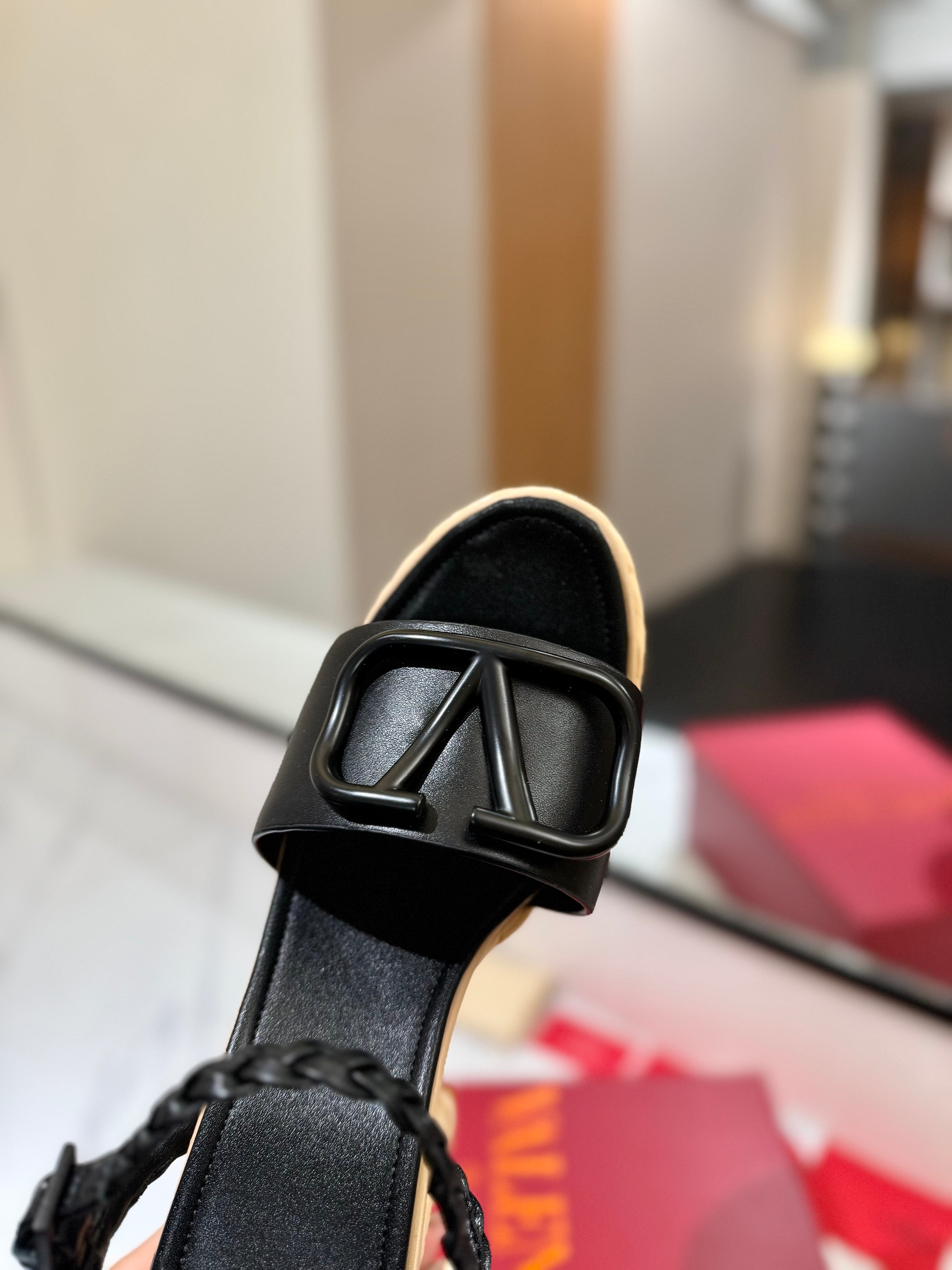 VLTN ESPADRILLE WEDGE SANDALS 25S 115 MM IN BLACK LAMBSKIN