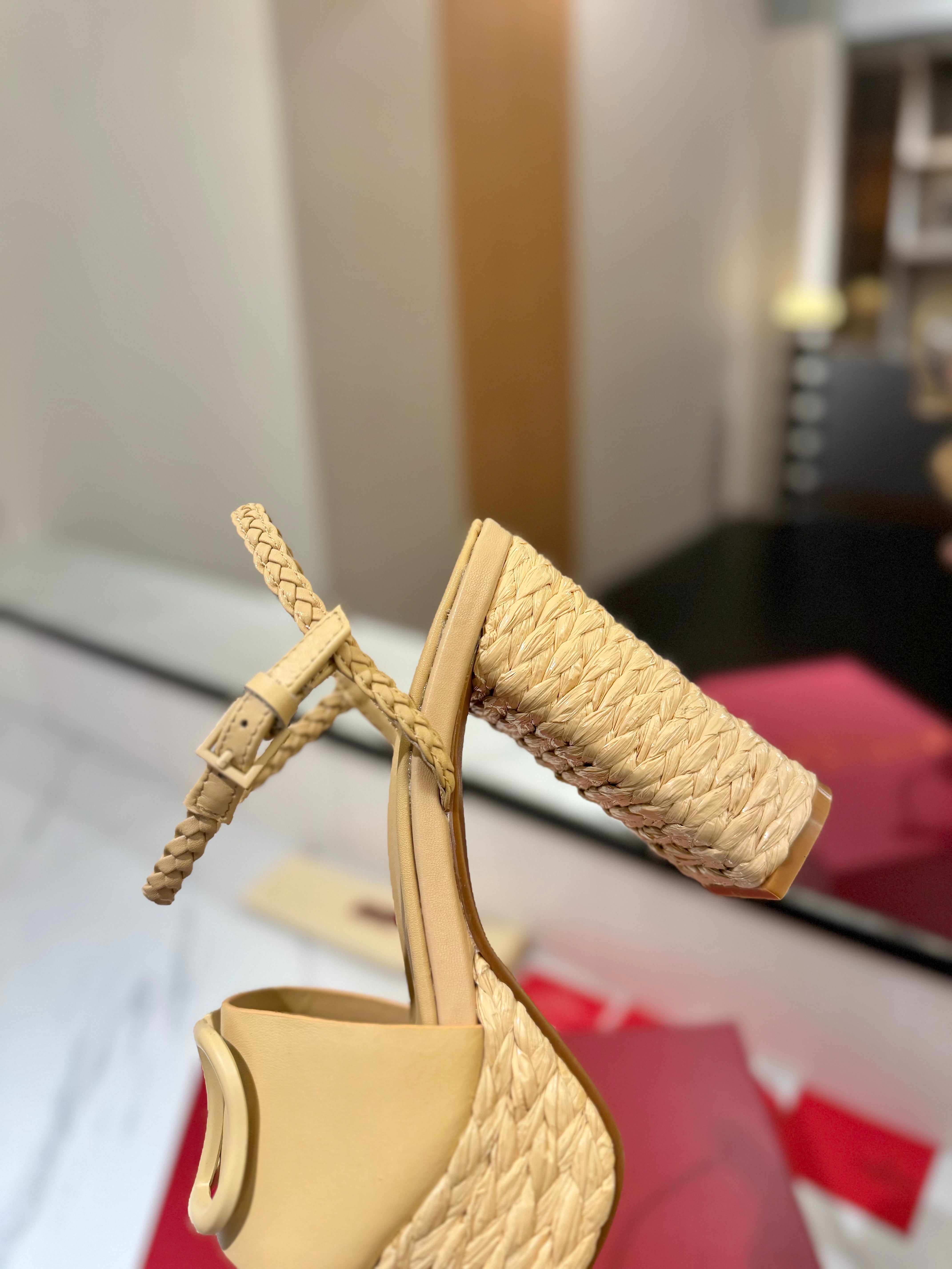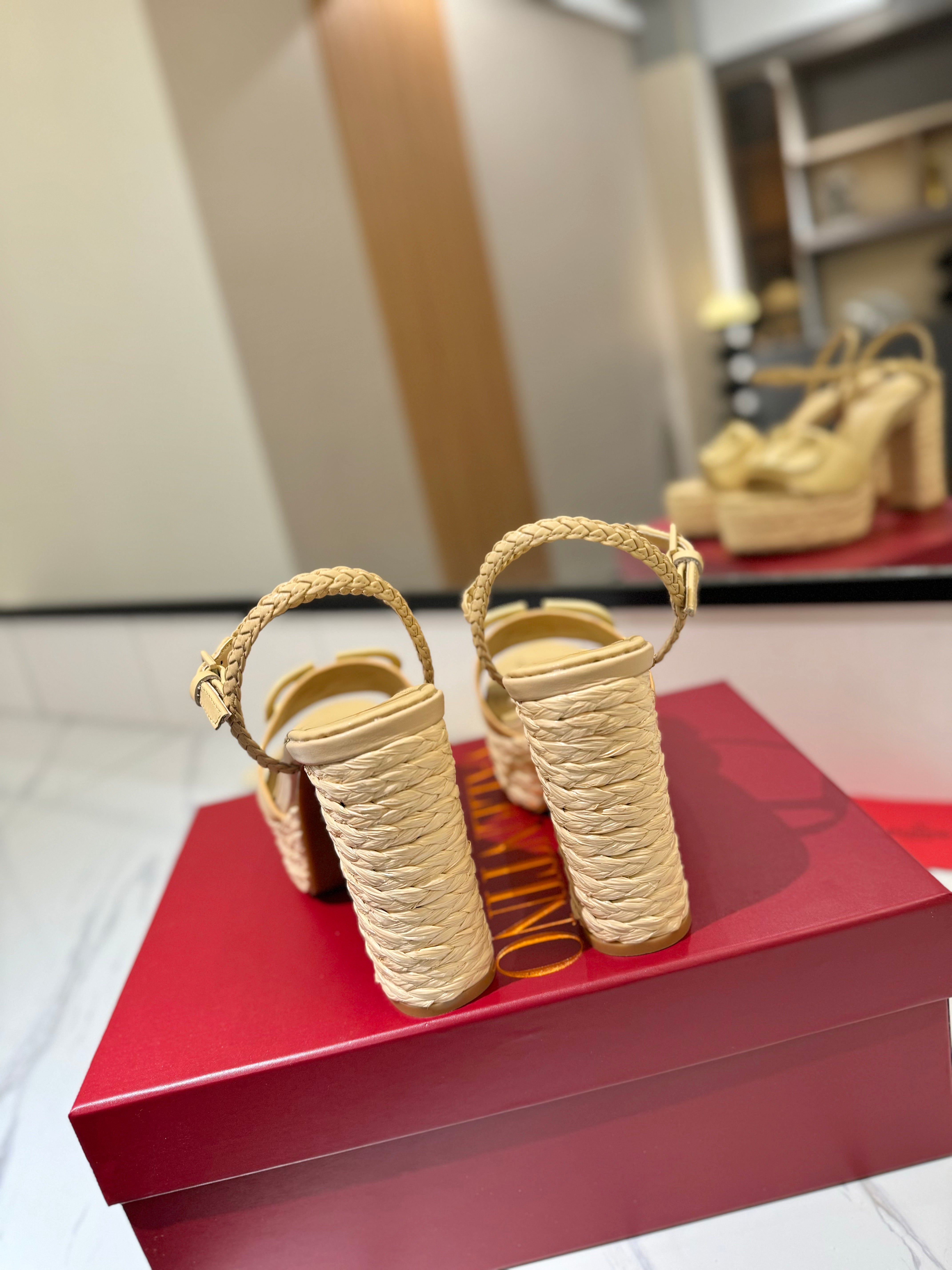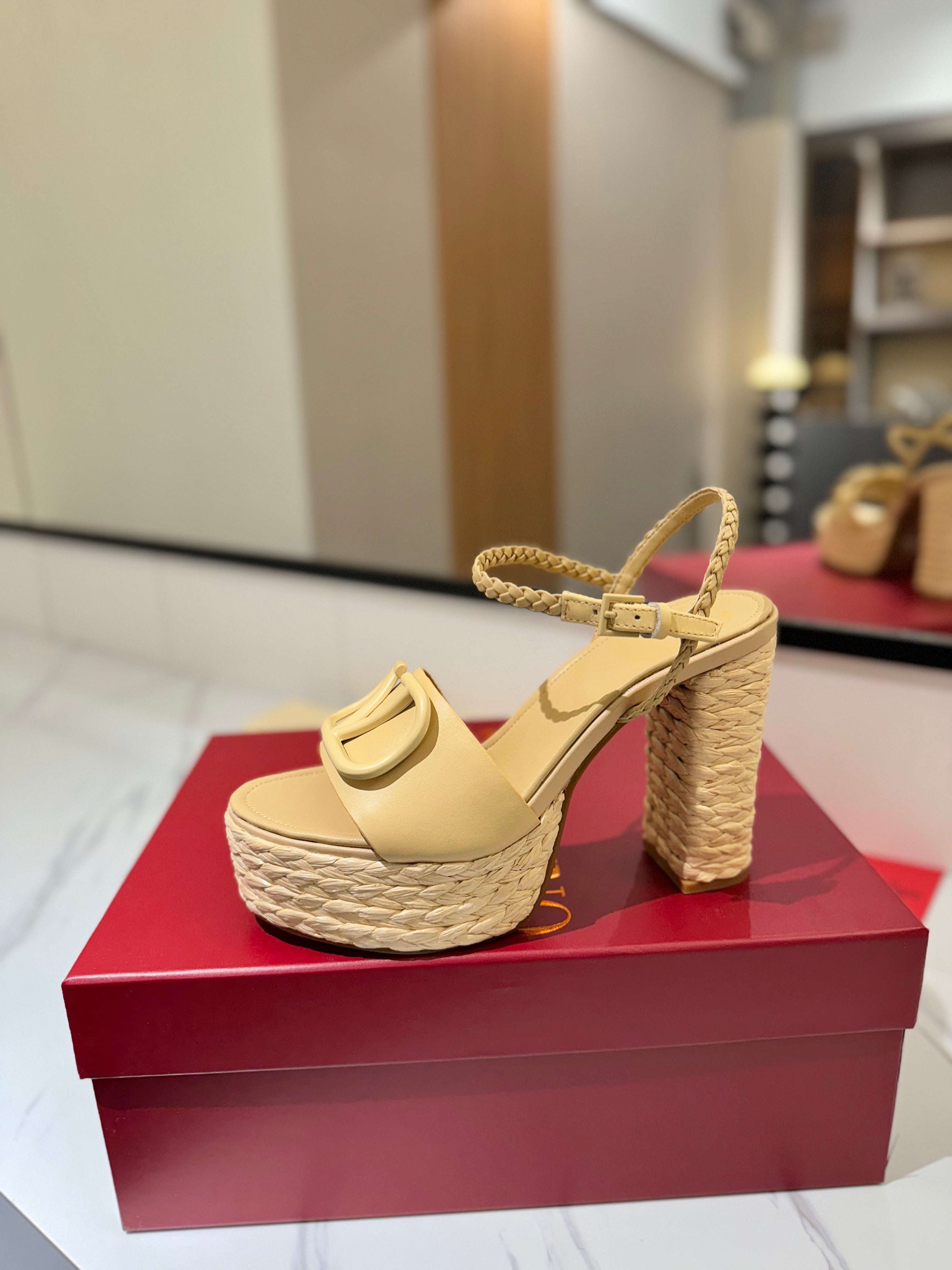 VLTN ESPADRILLE WEDGE SANDALS 25S 115 MM IN GOLDEN BEIGE LAMBSKIN