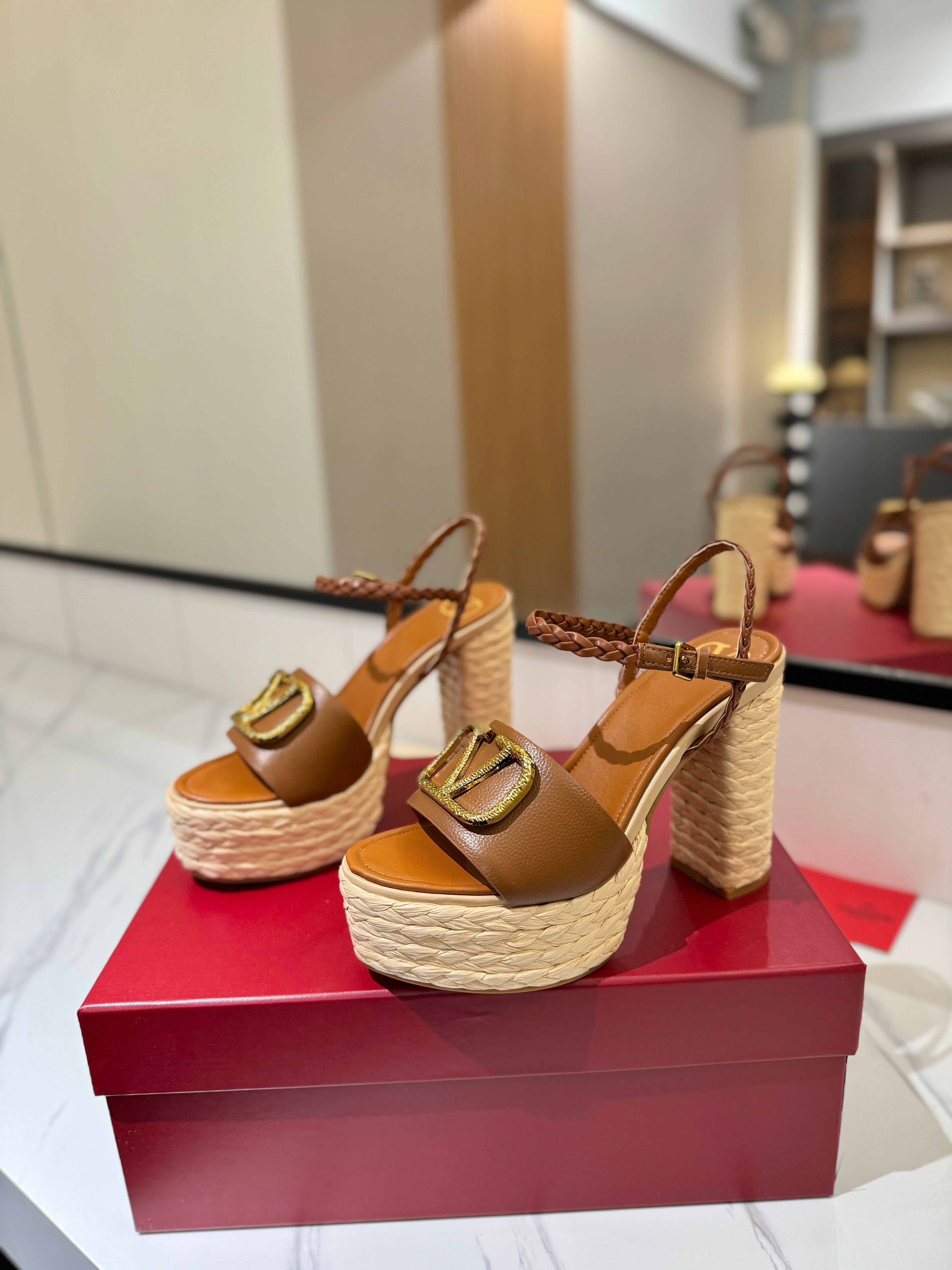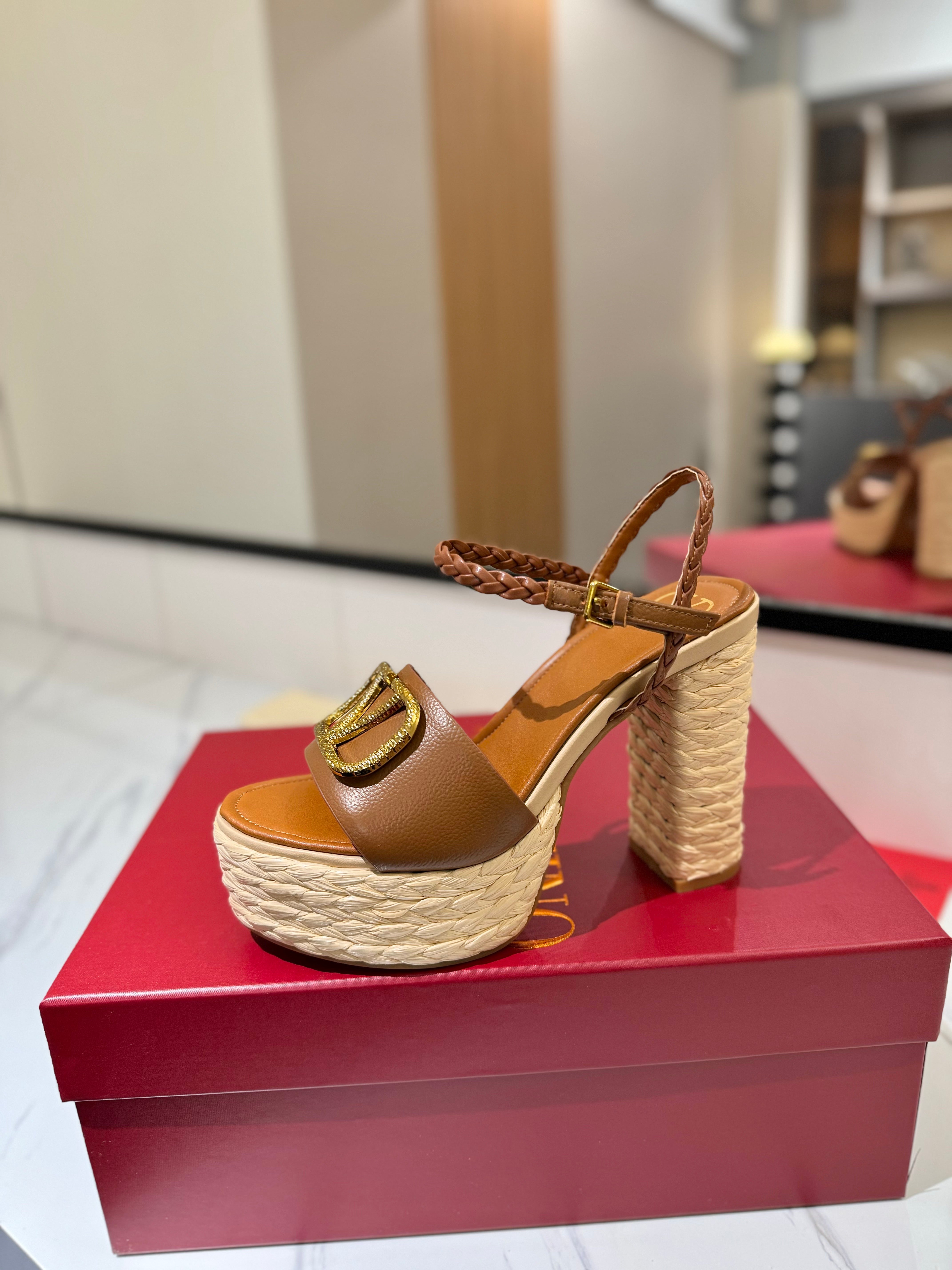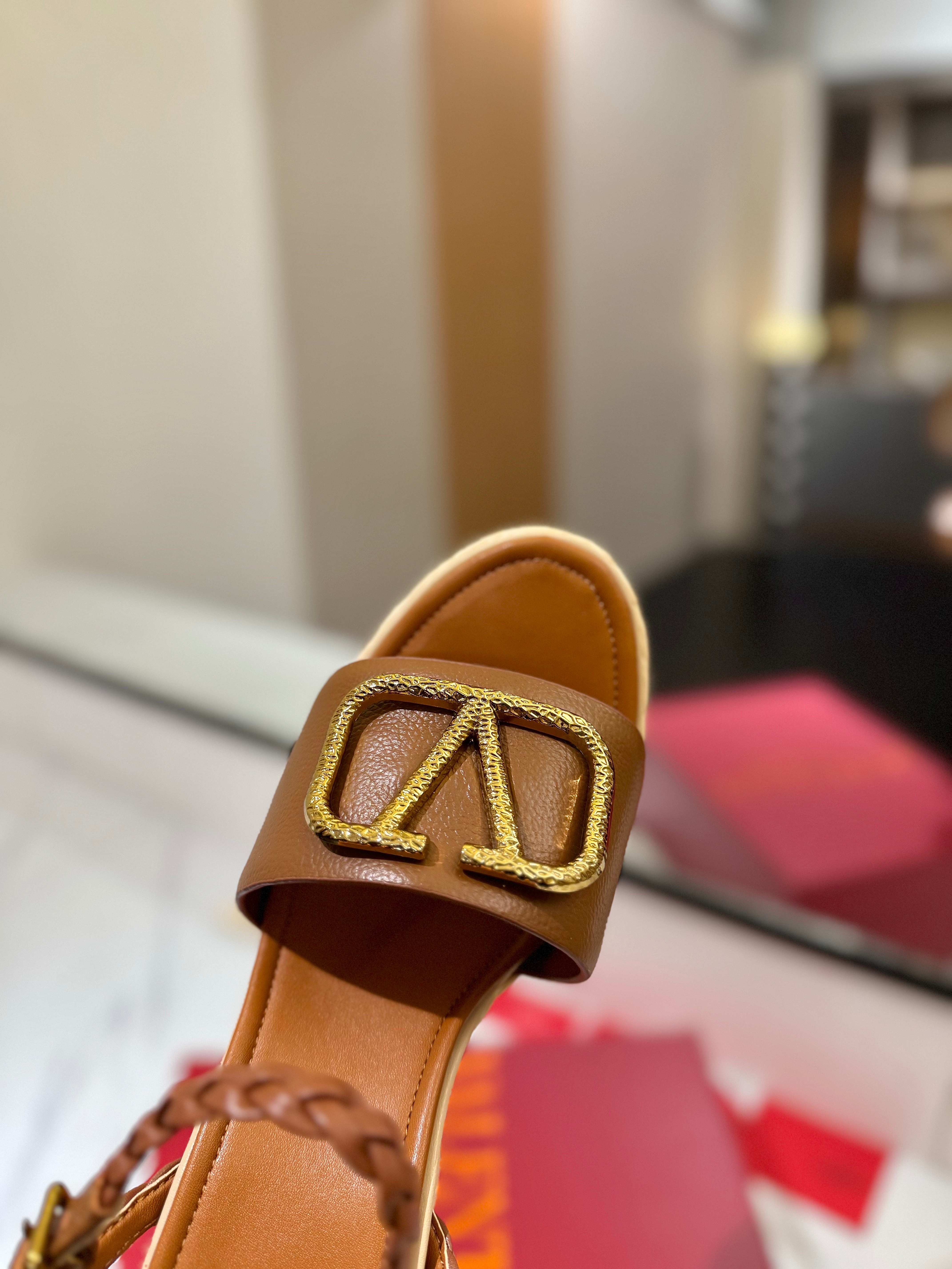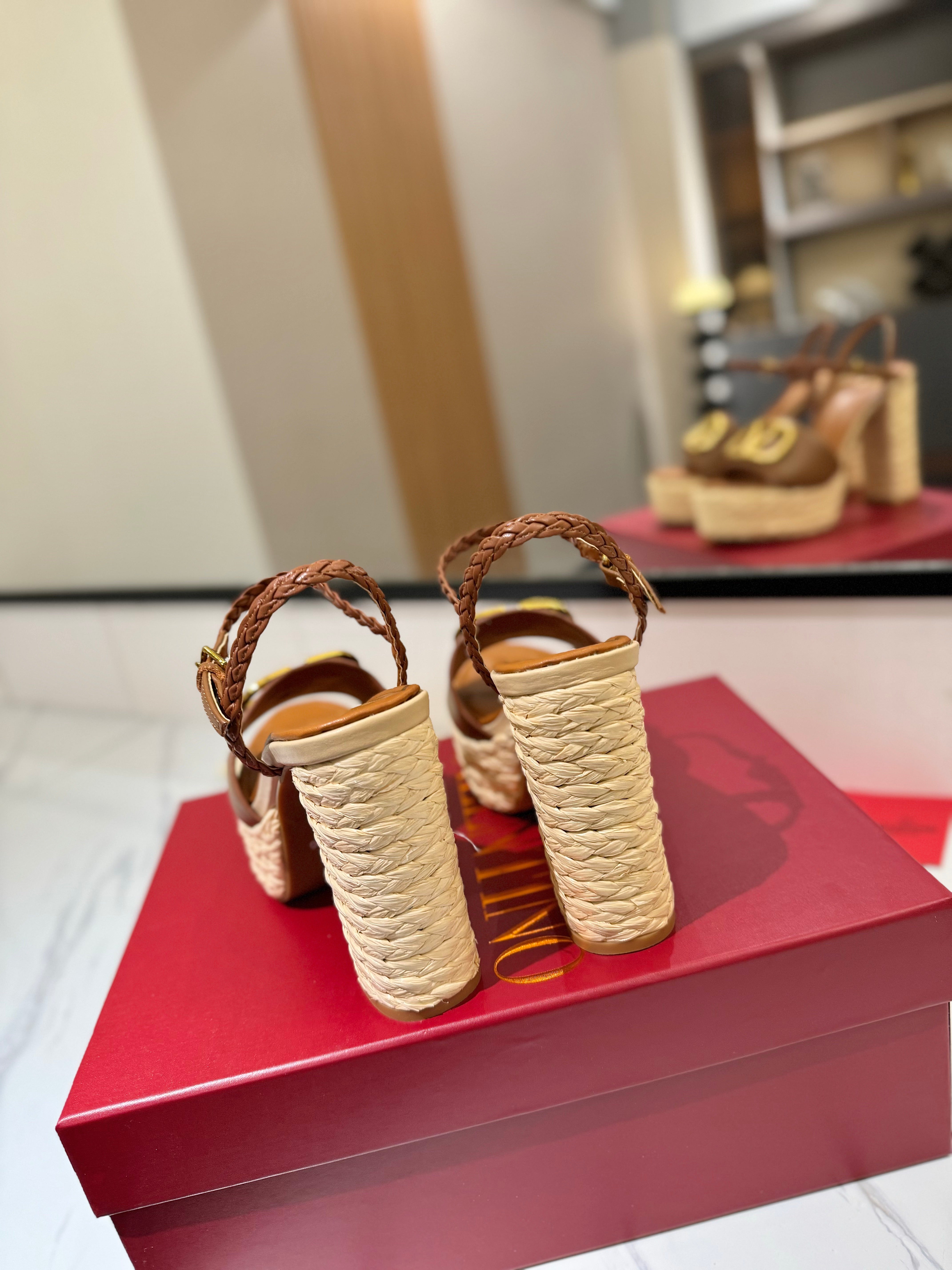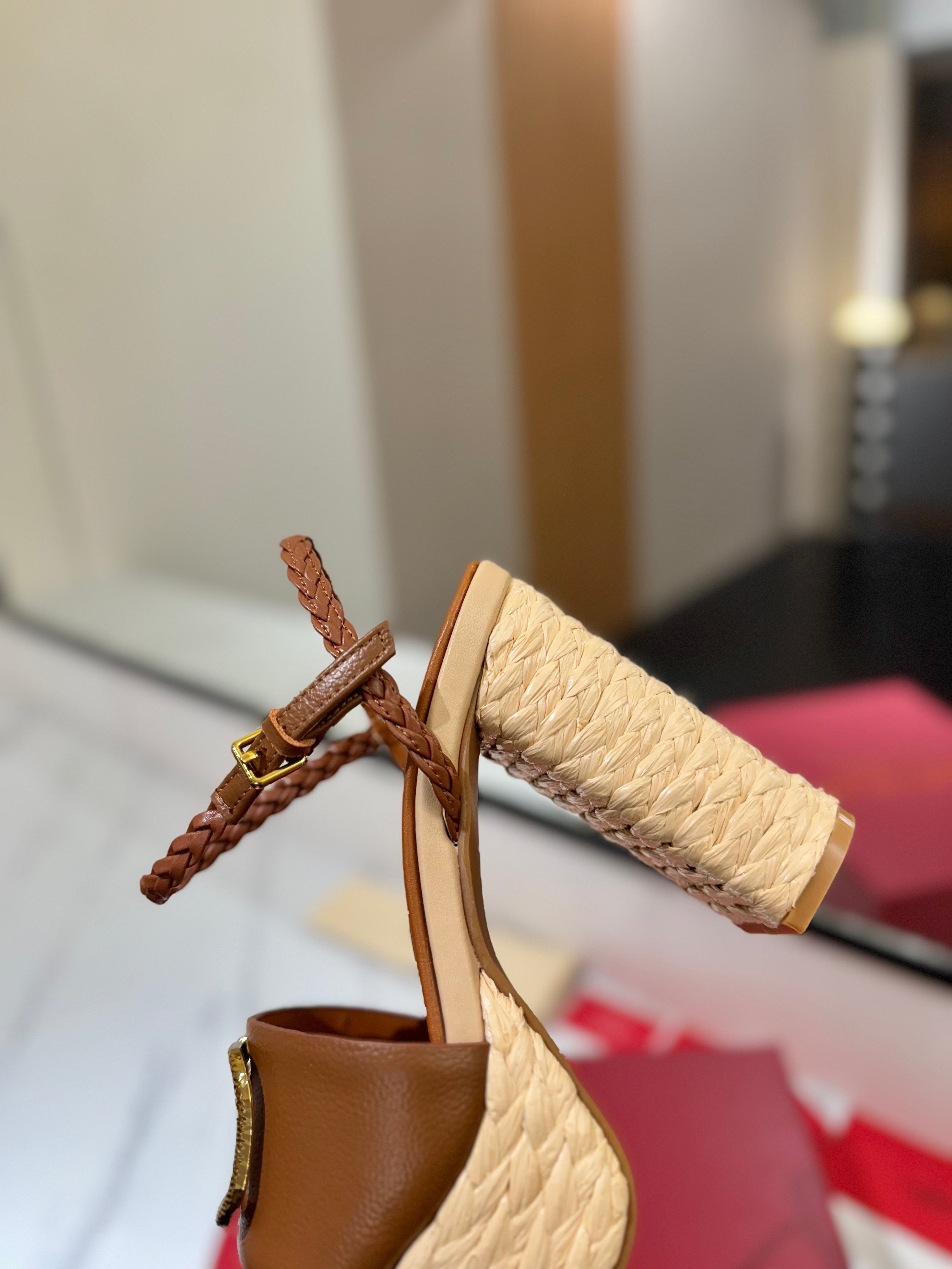 VLTN ESPADRILLE WEDGE SANDALS 25S 115 MM IN BROWN LAMBSKIN WITH GOLD HARDWARE