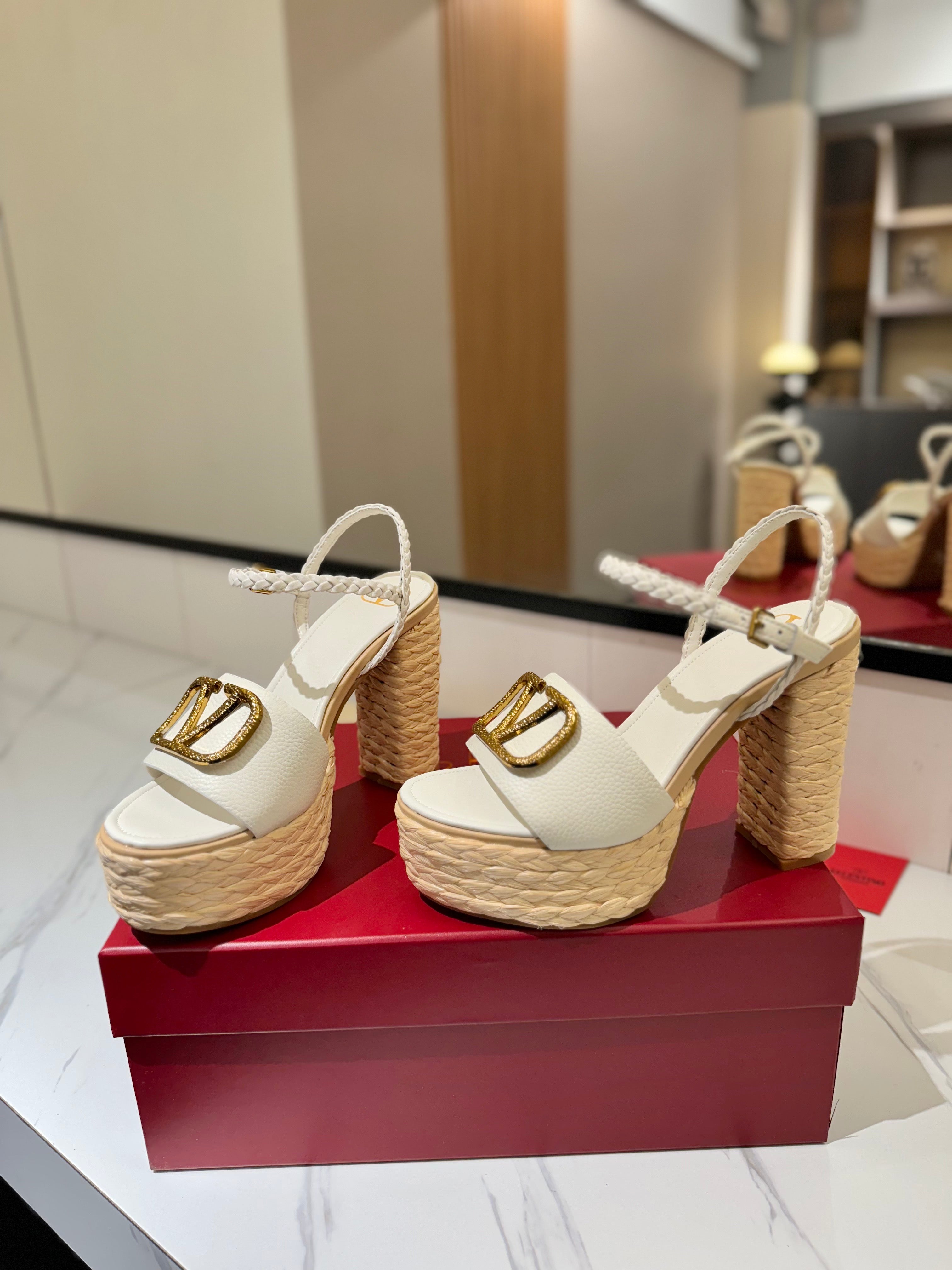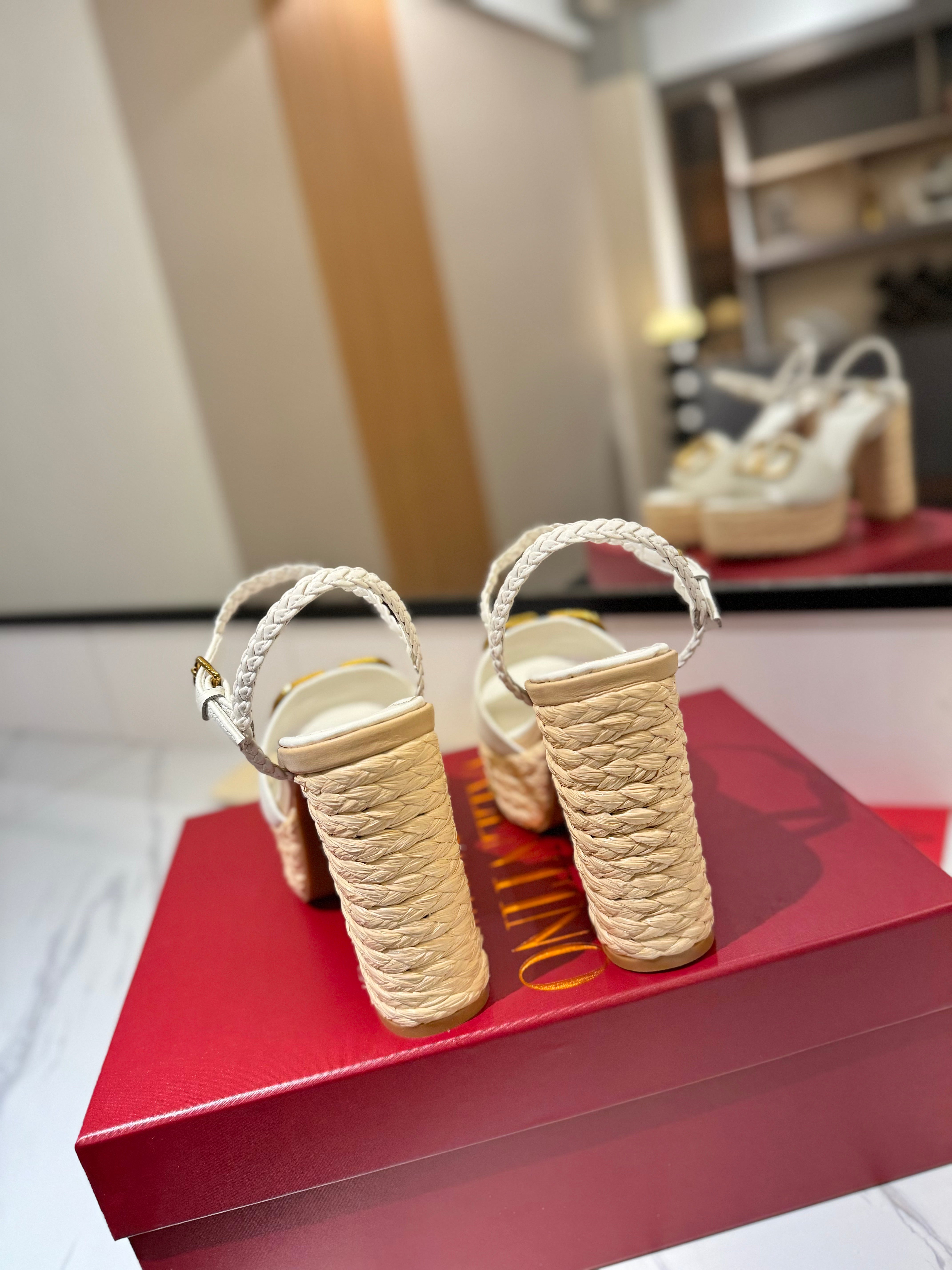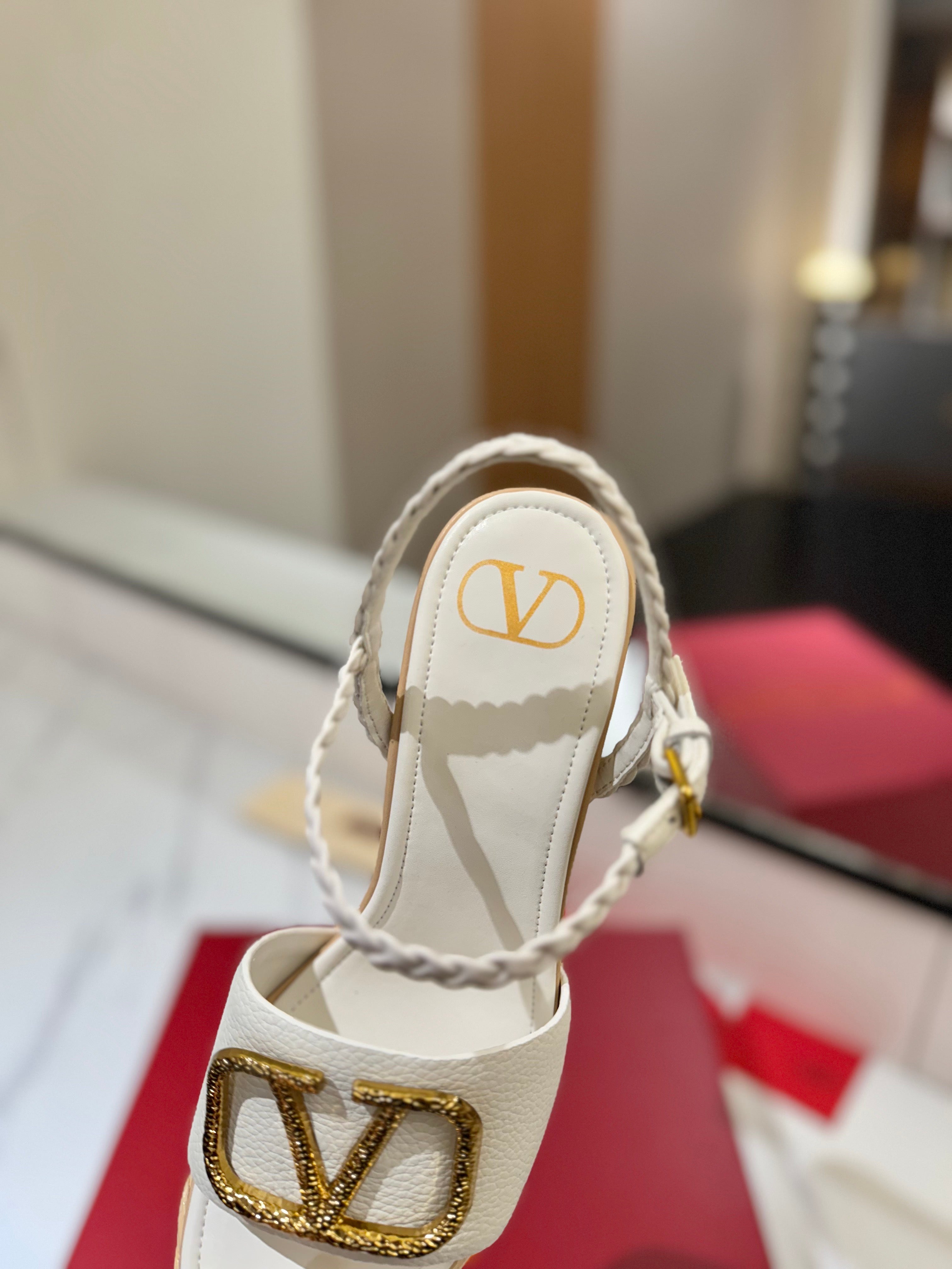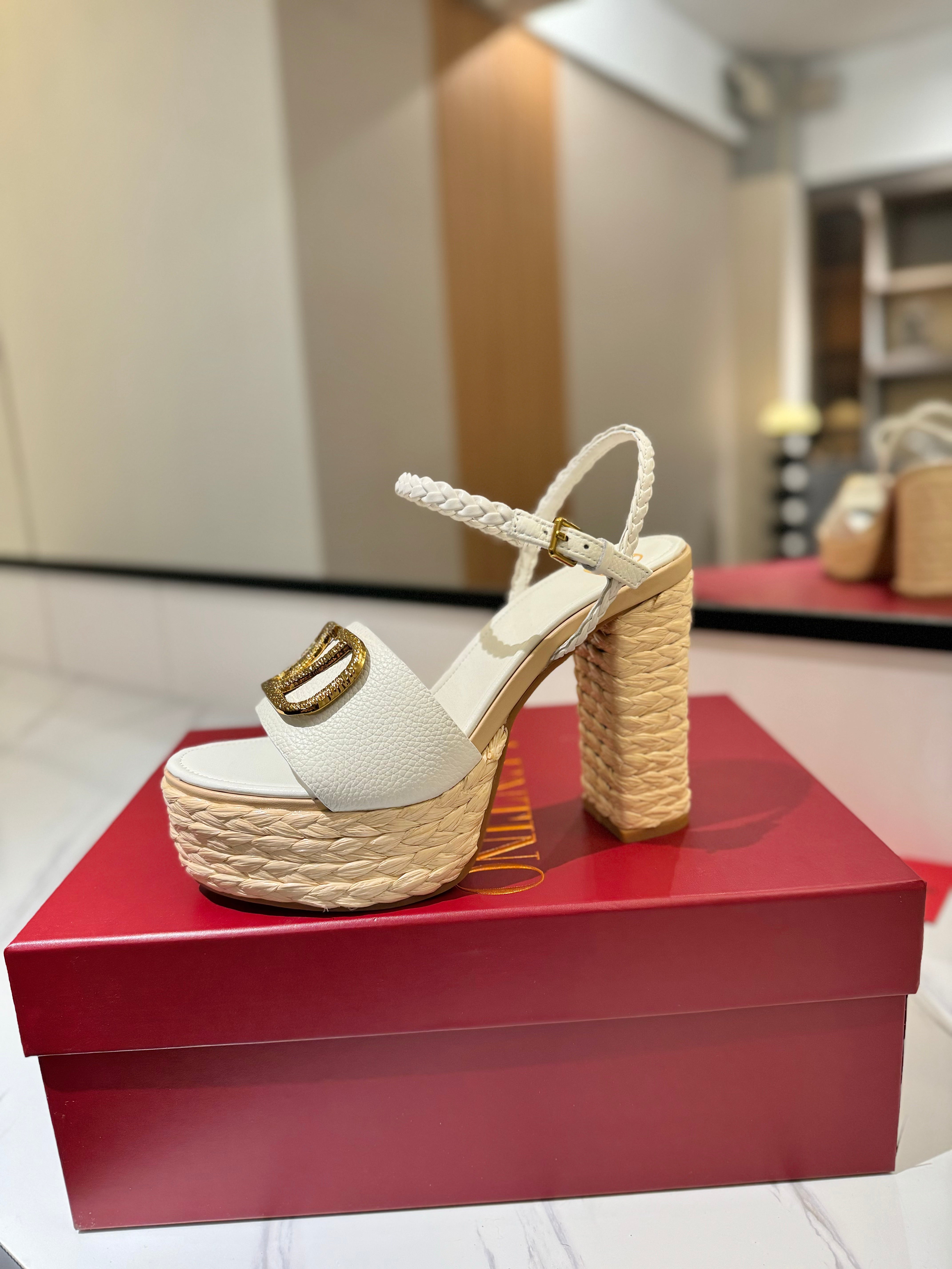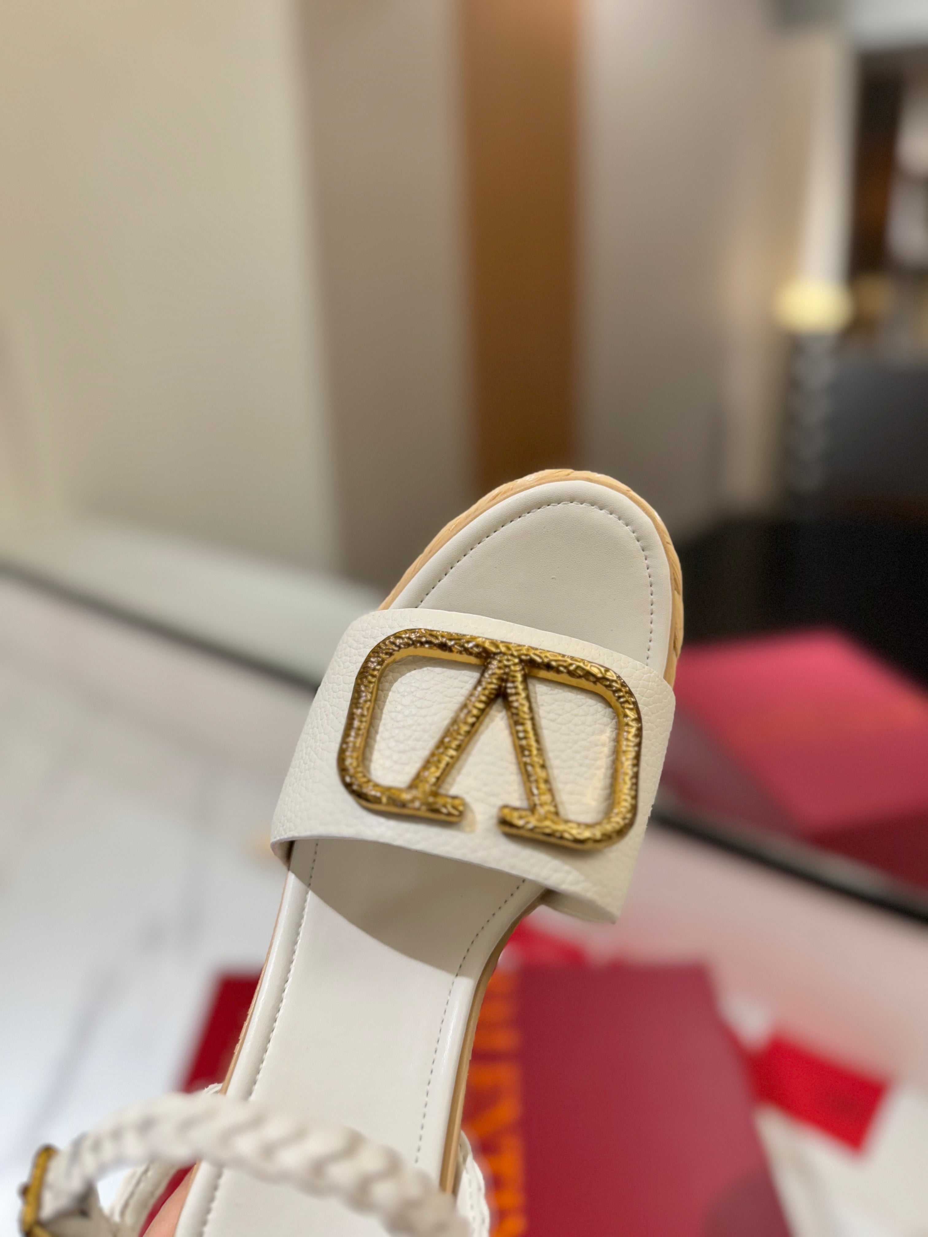VLTN ESPADRILLE WEDGE SANDALS 25S 115 MM IN WHITE LAMBSKIN WITH GOLD HARDWARE