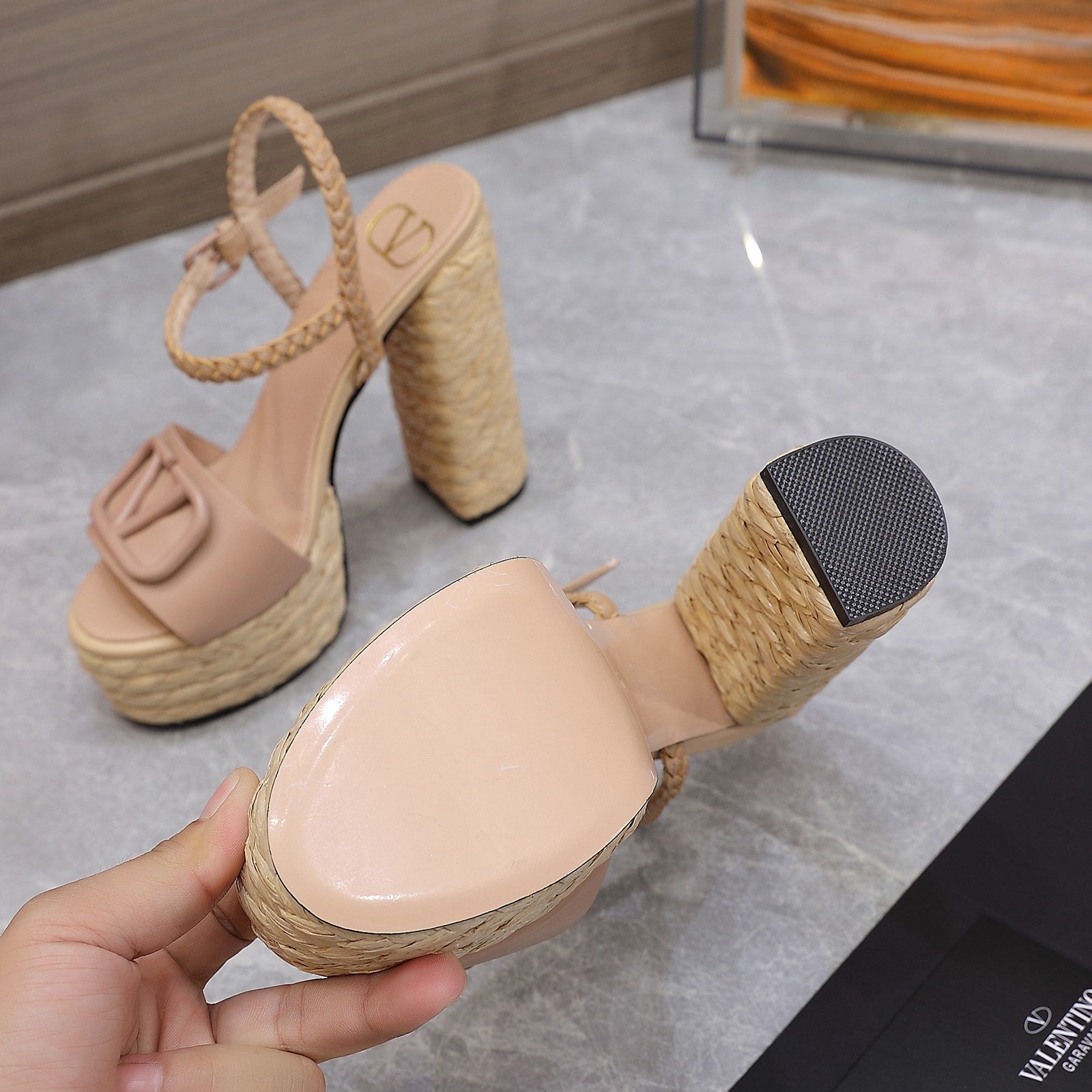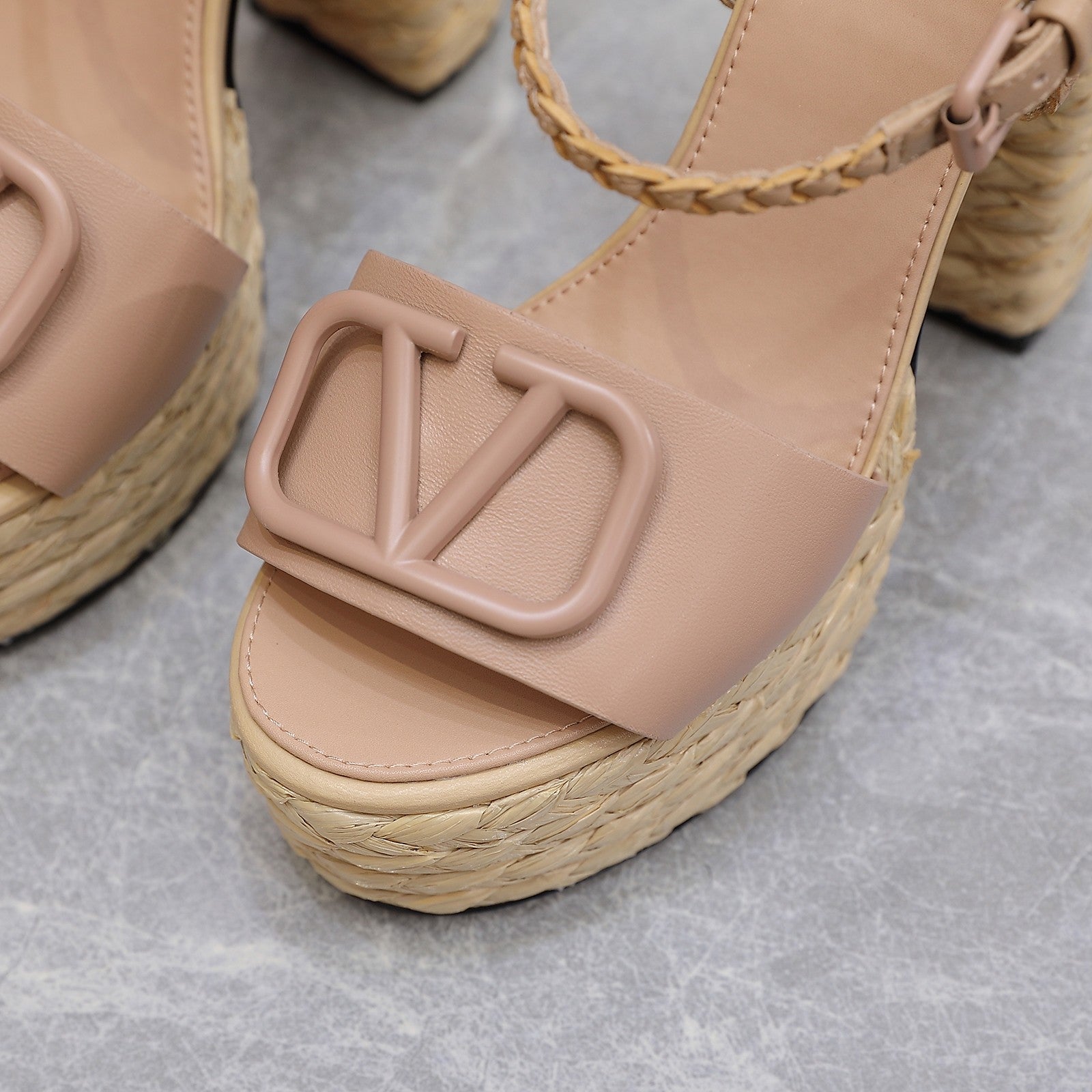 VLTN ESPADRILLE WEDGE SANDALS 25S 130 MM IN MUTED PEACH BEIGE LAMBSKIN