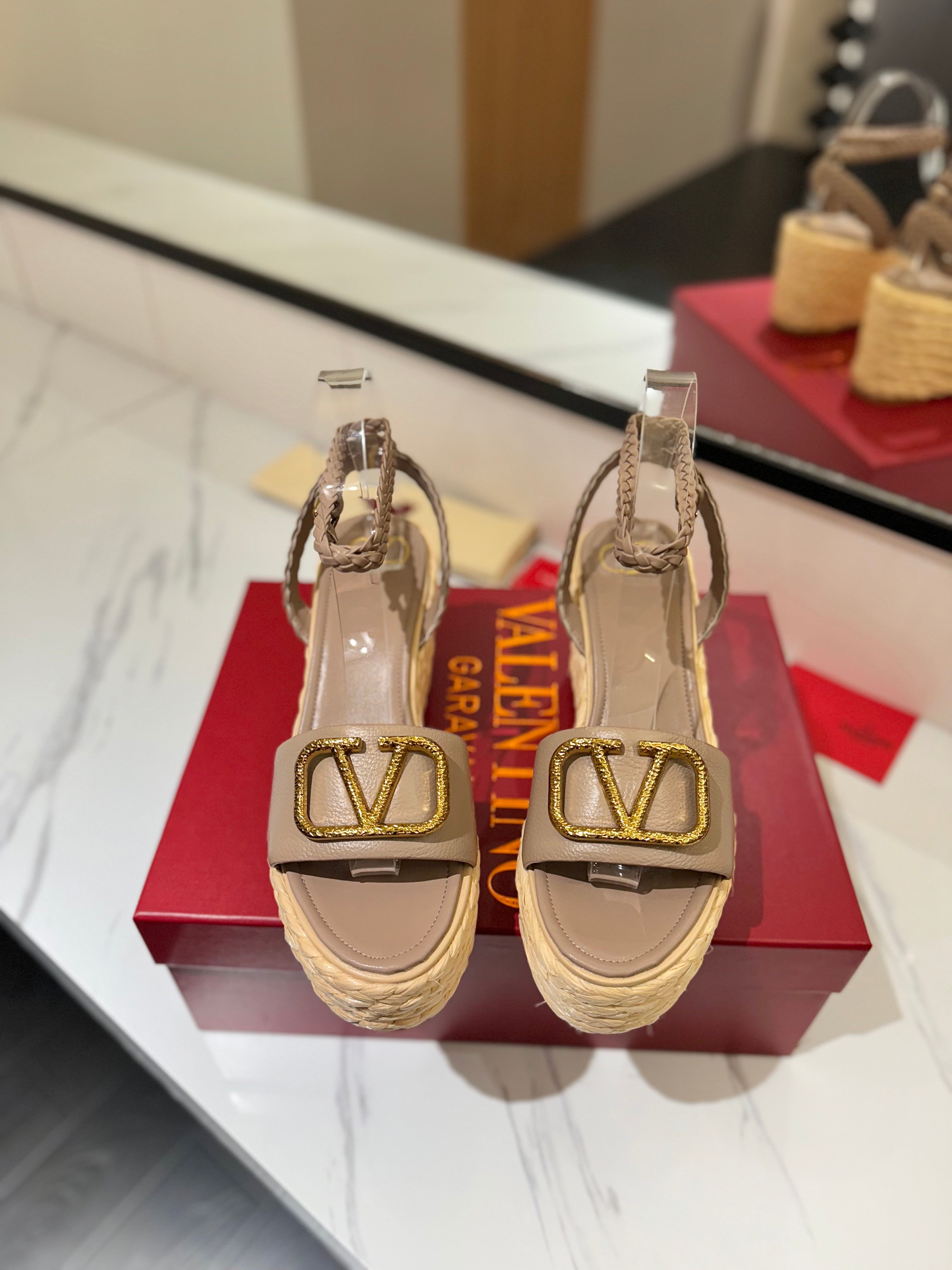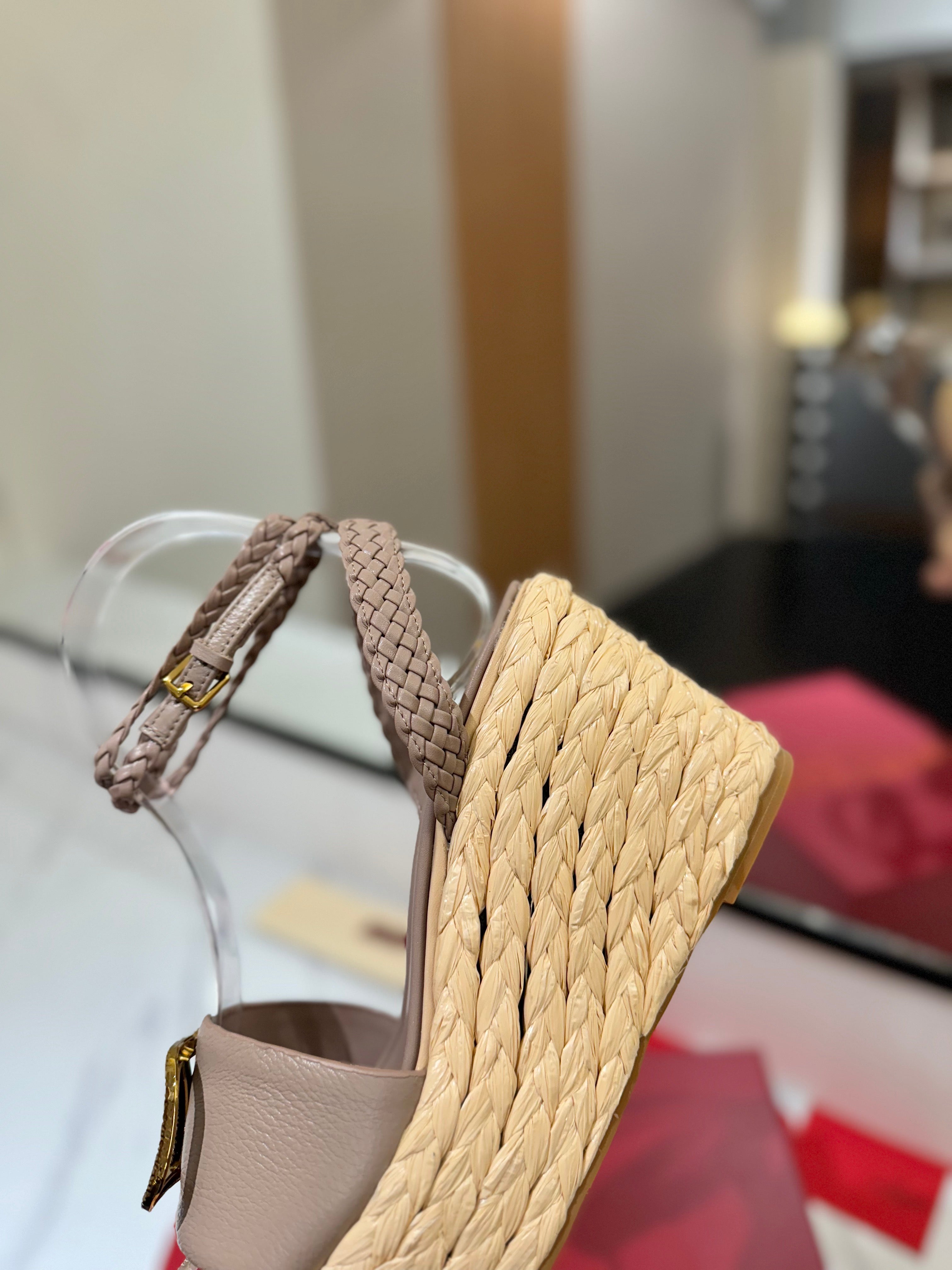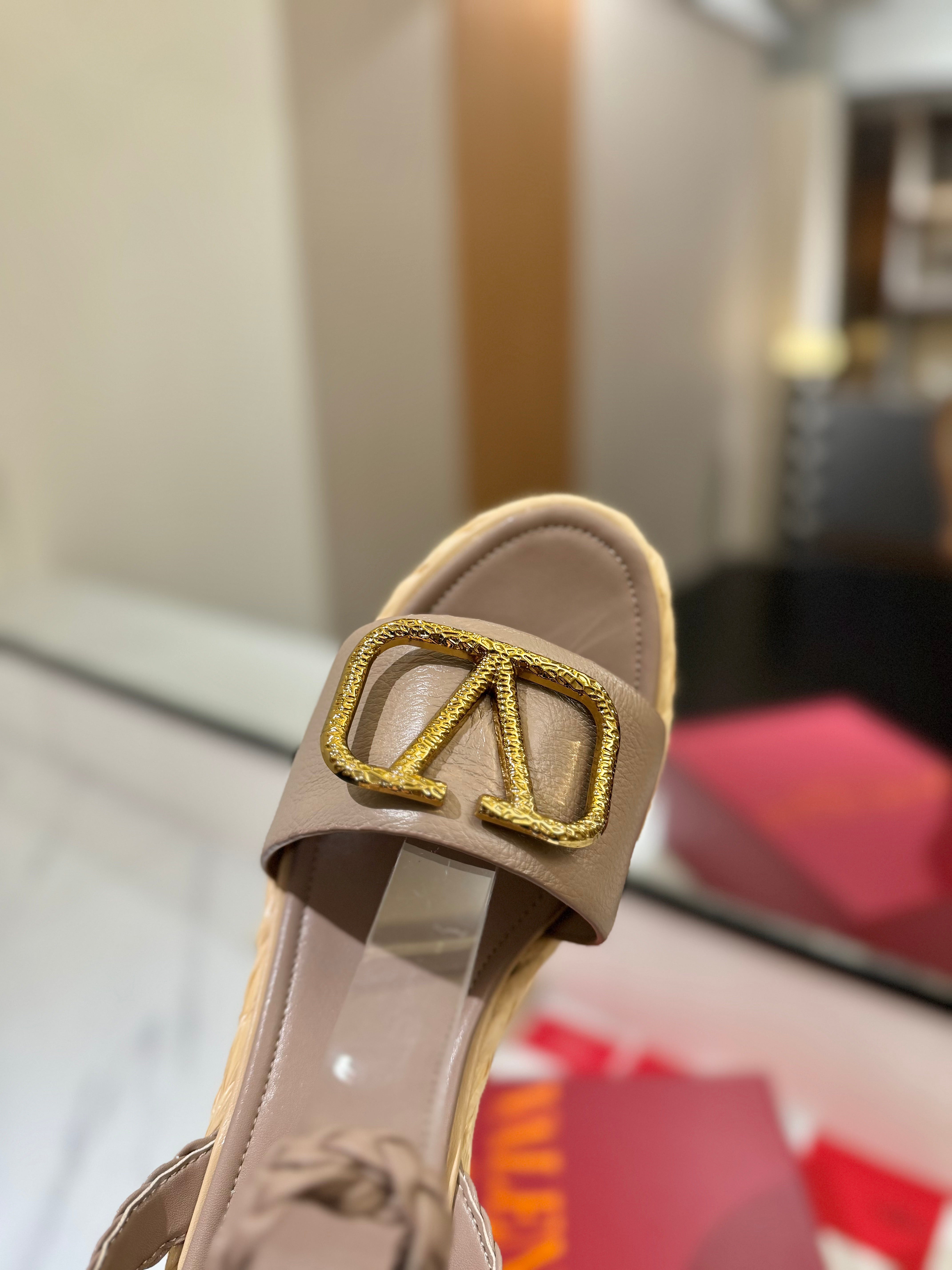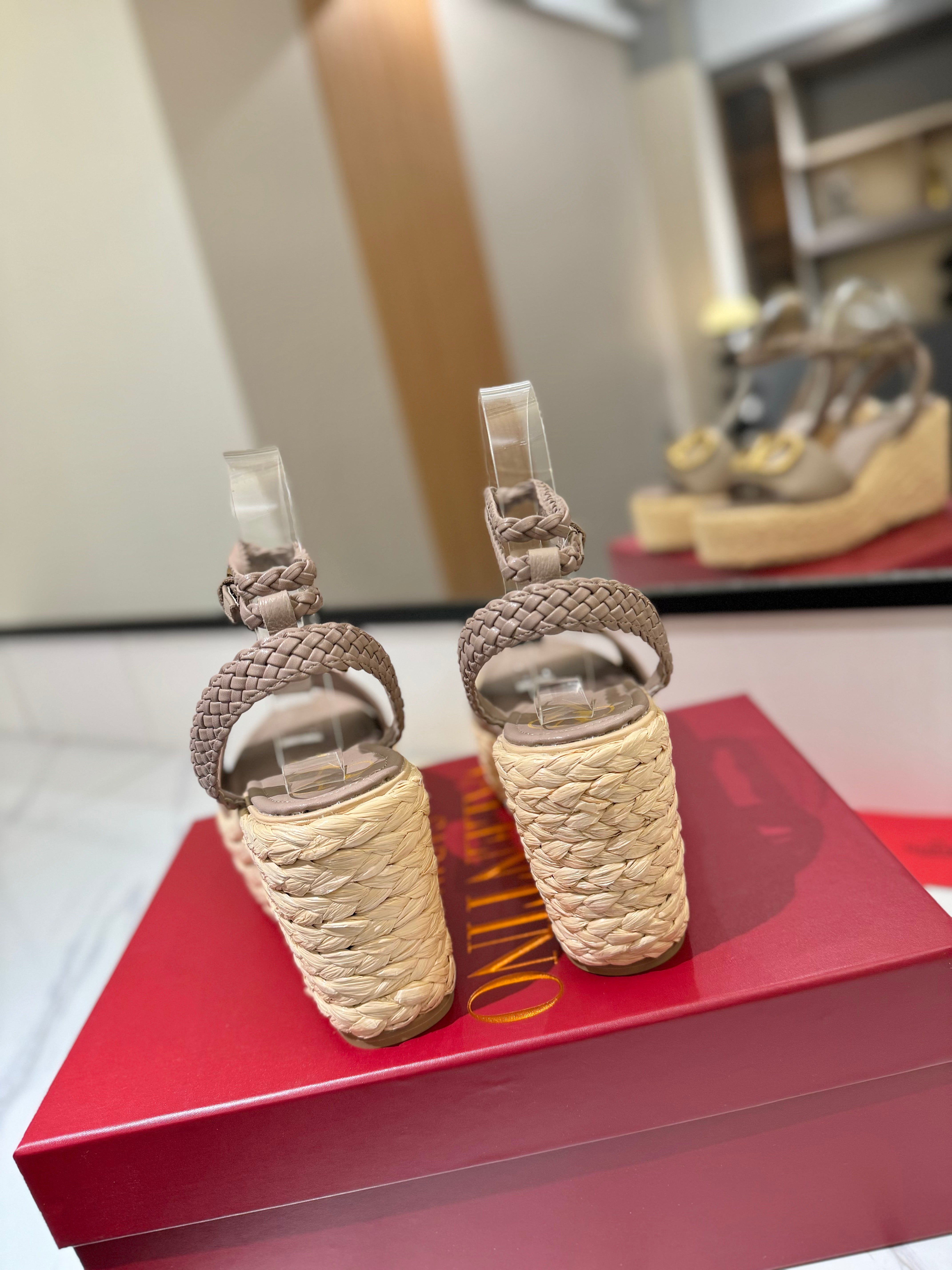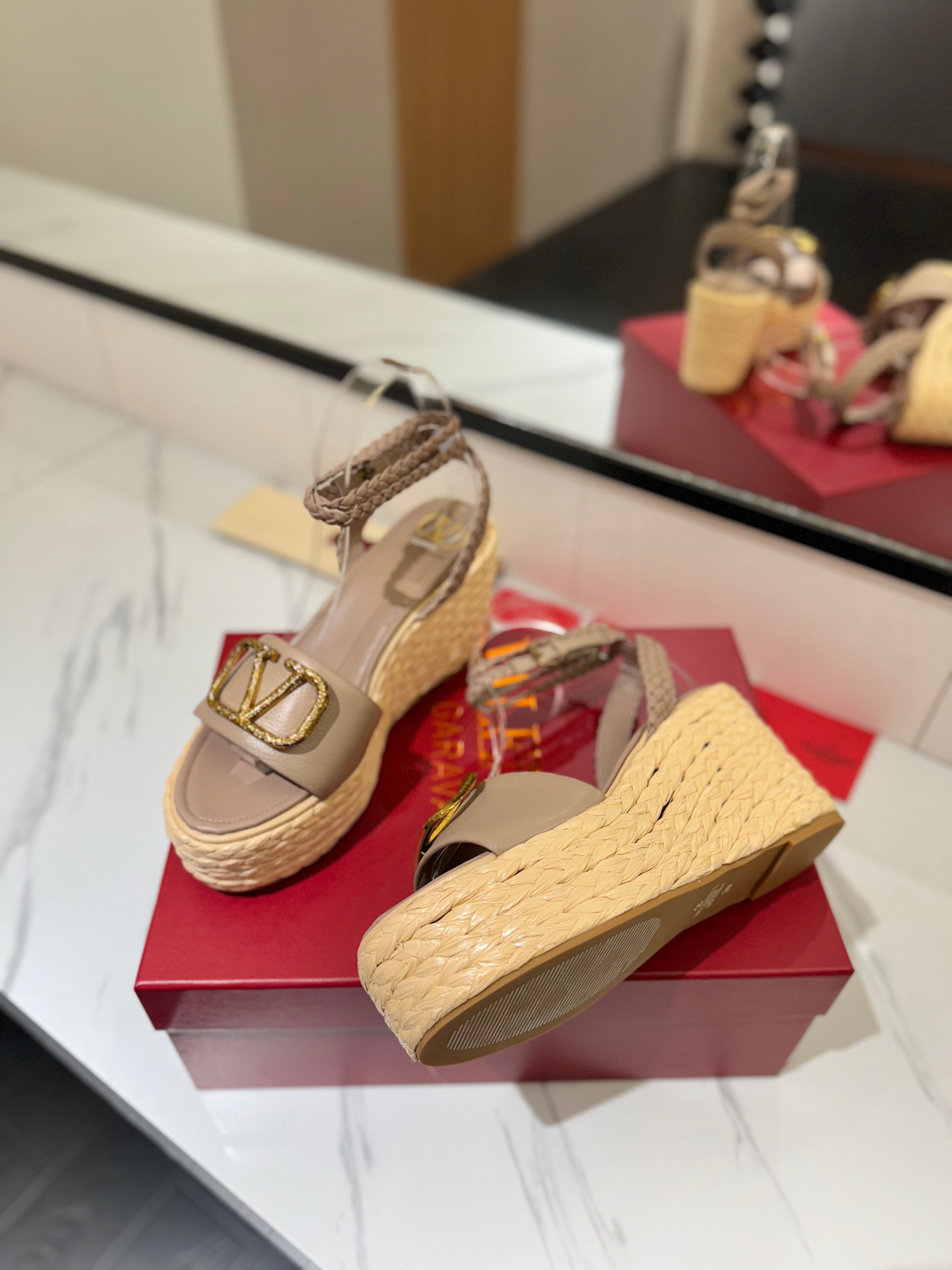 VLTN ESPADRILLE WEDGE SANDALS 25S 90 MM IN BEIGE BROWN LAMBSKIN STYLE 5