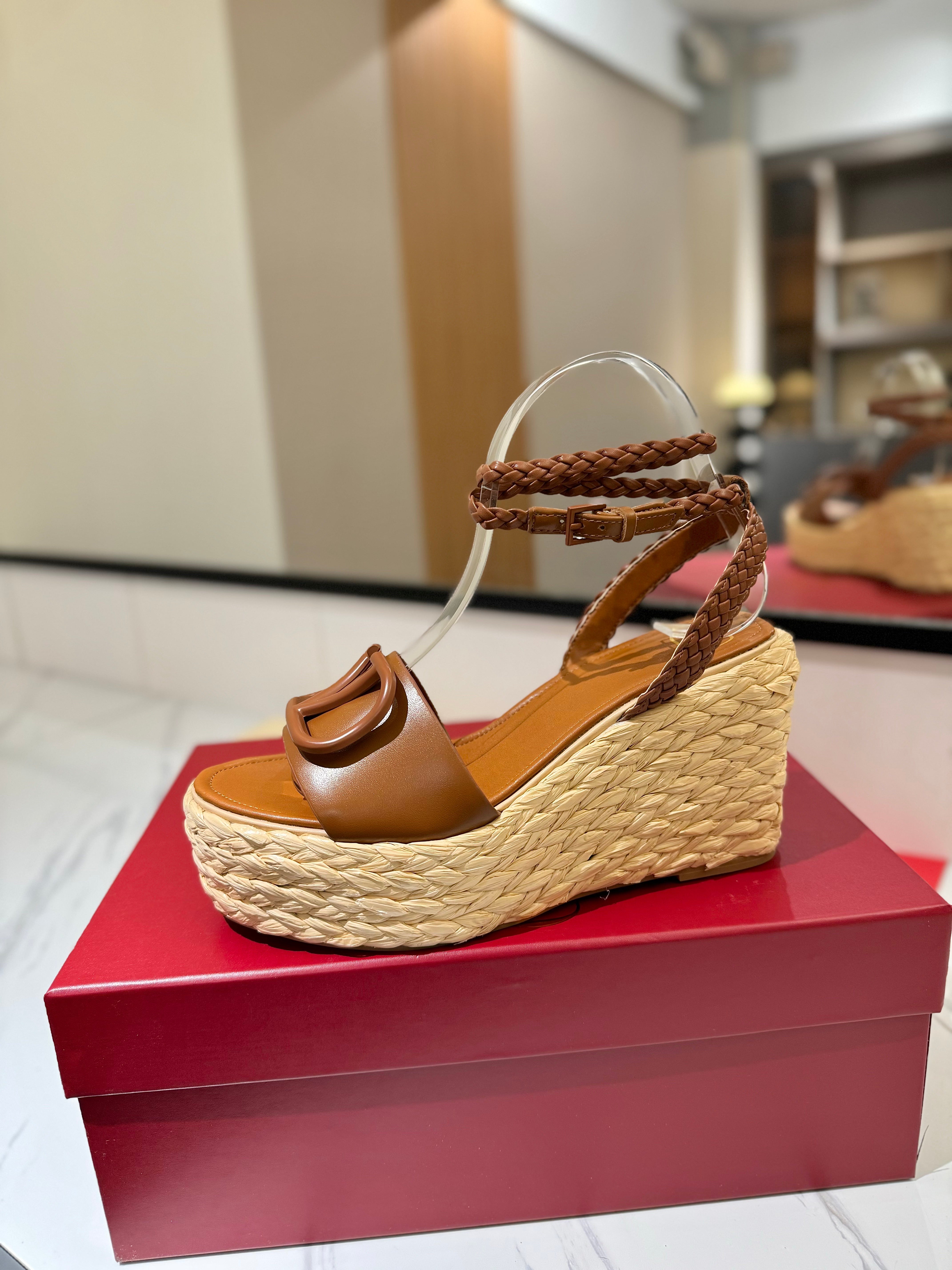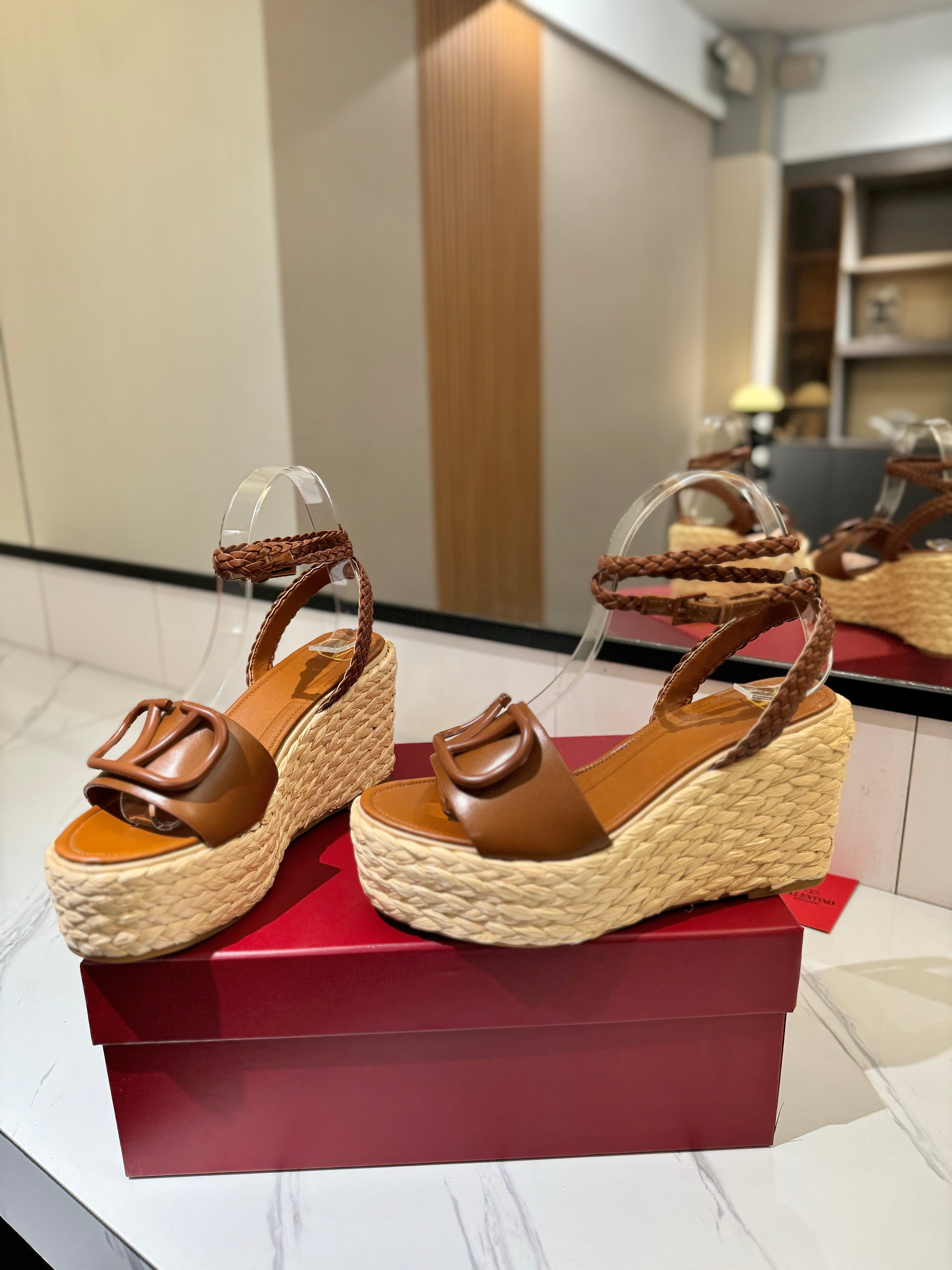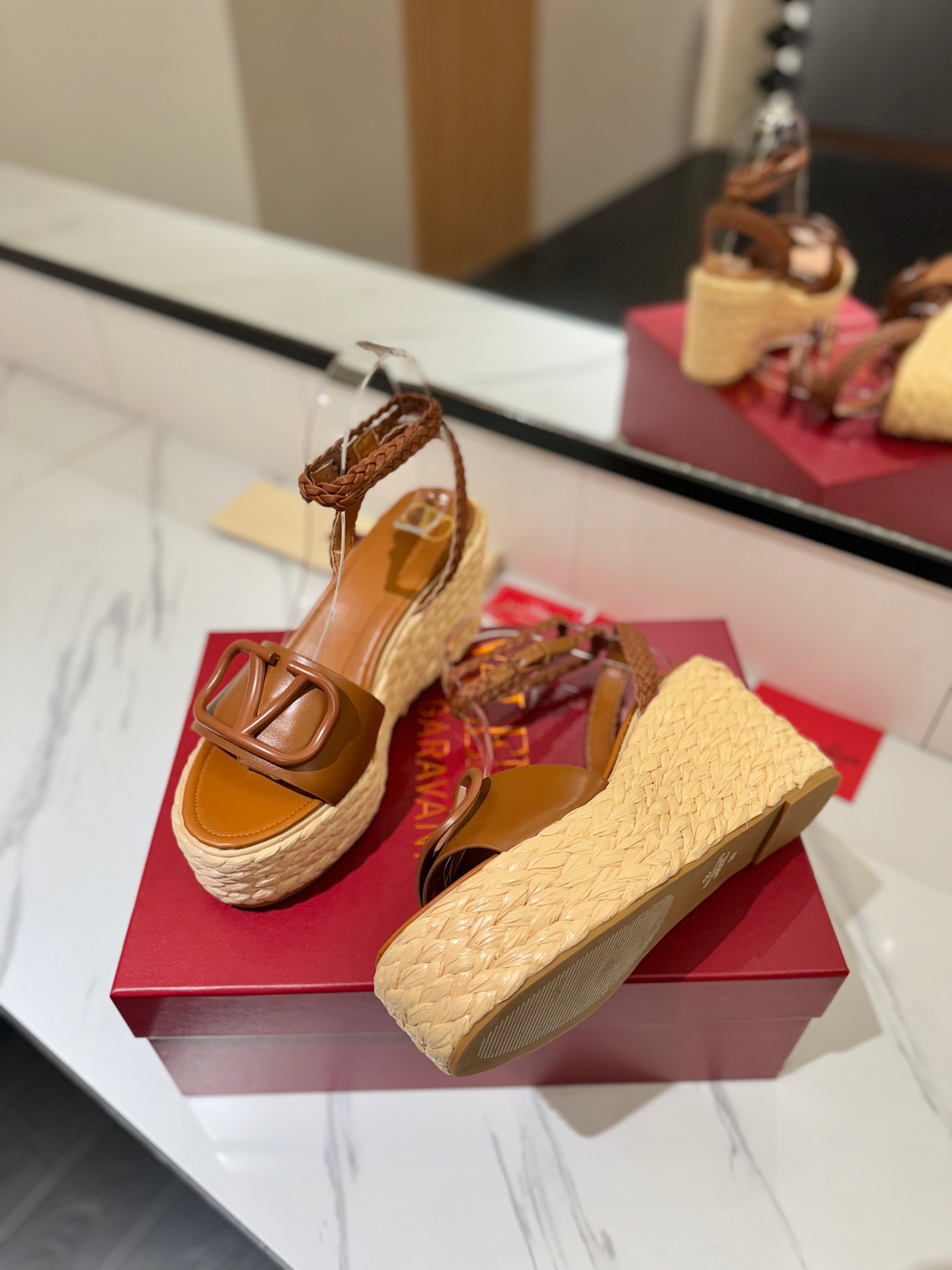 VLTN ESPADRILLE WEDGE SANDALS 25S 90 MM IN BROWN LAMBSKIN STYLE 11