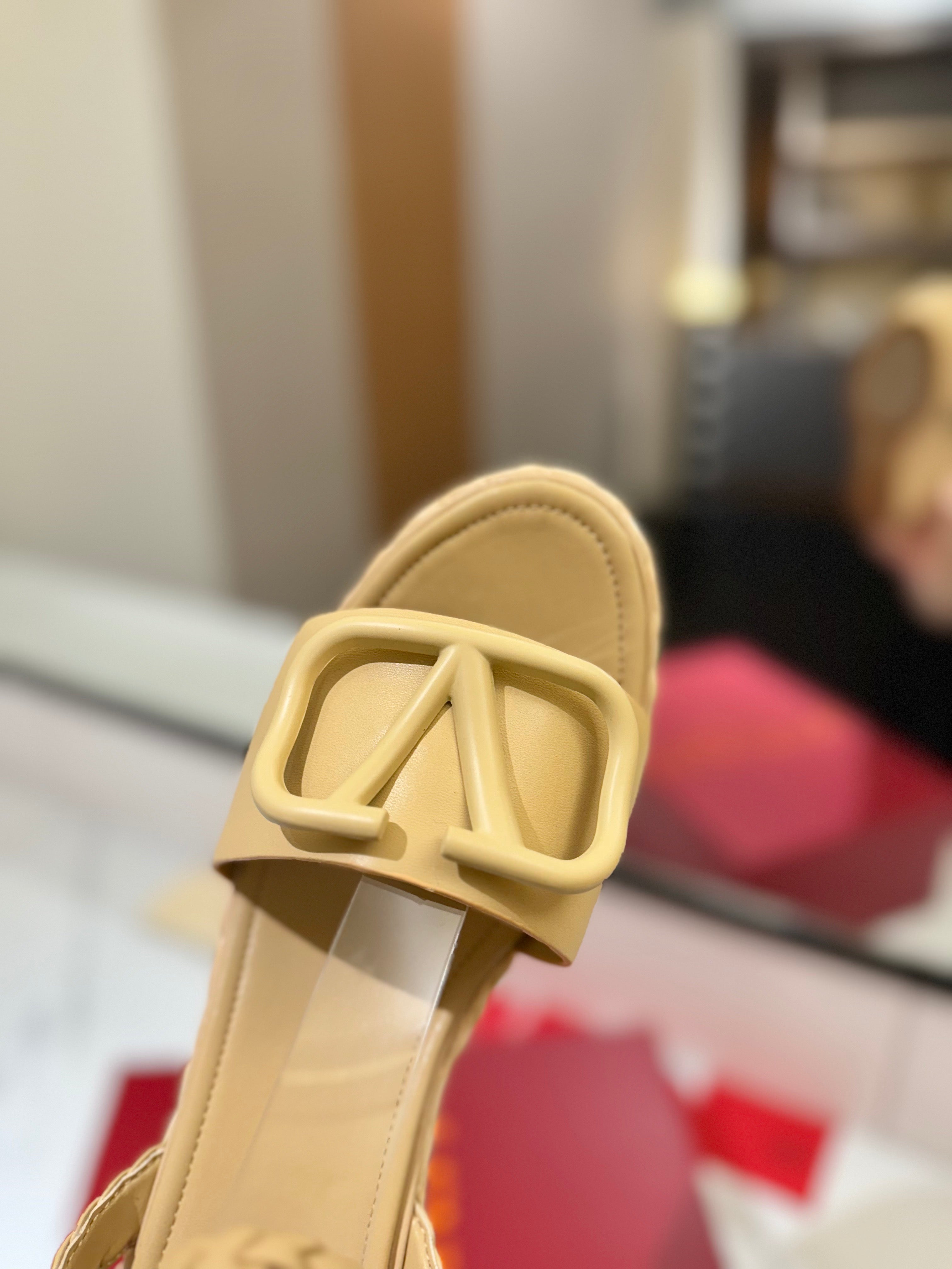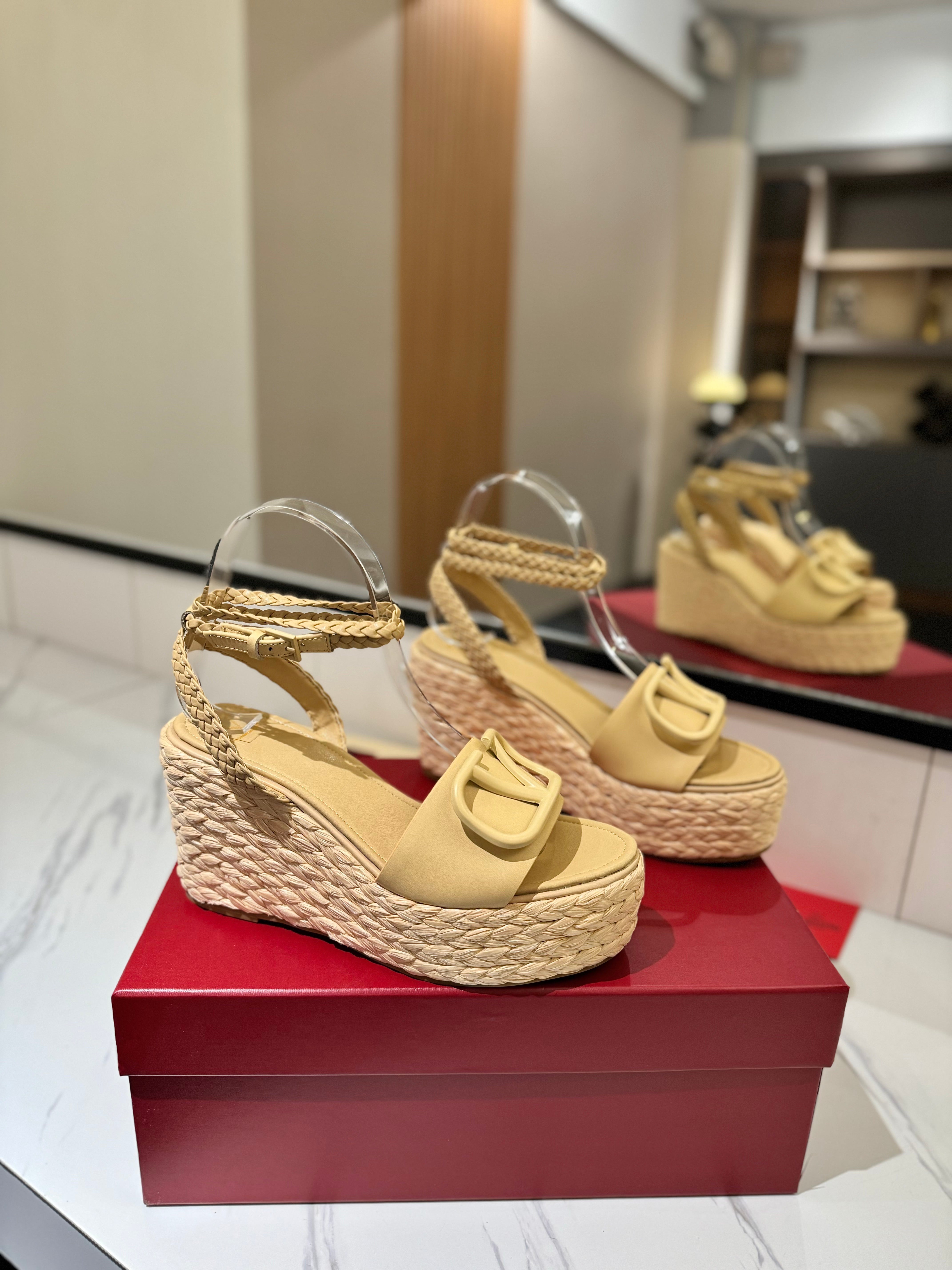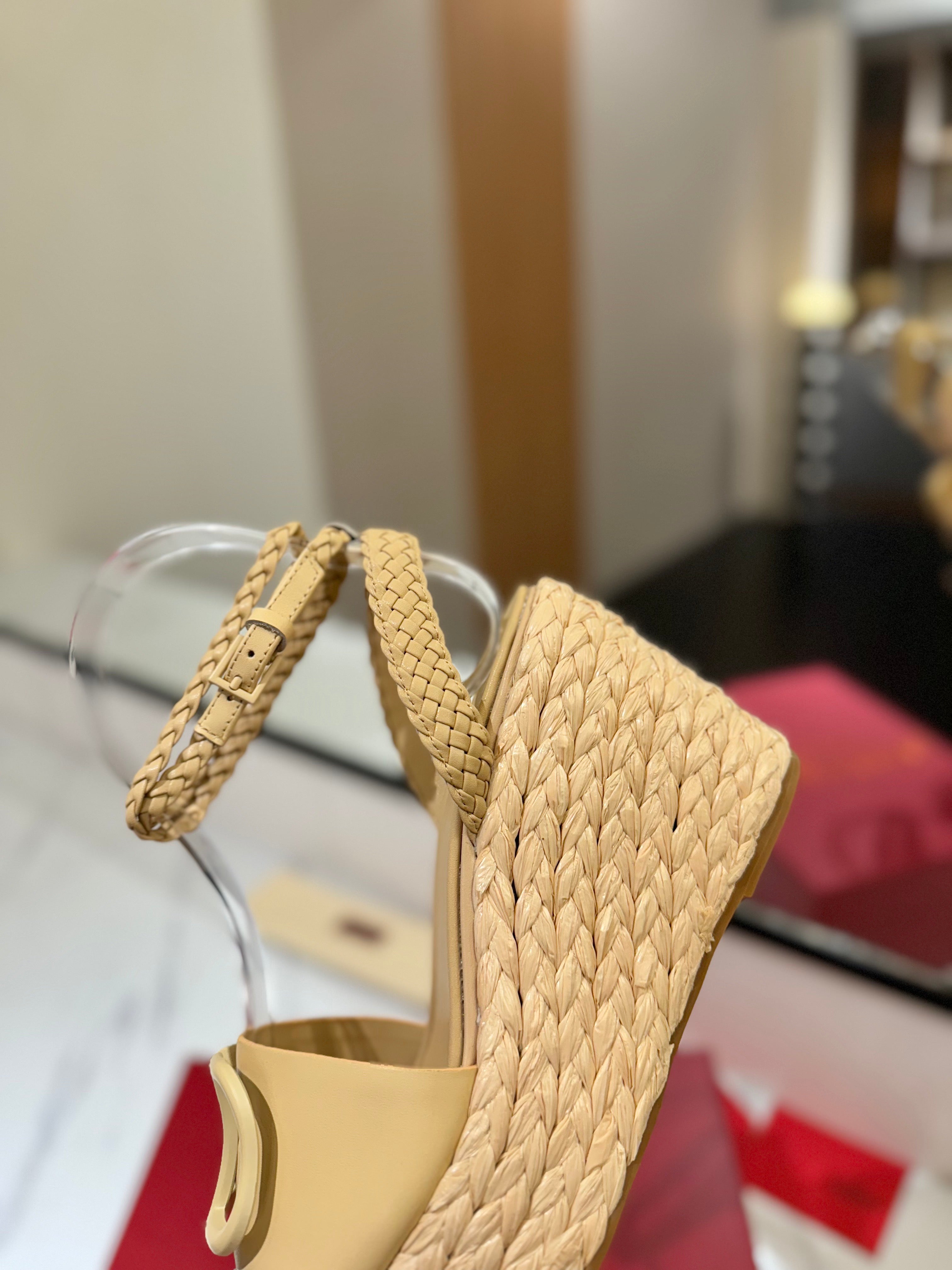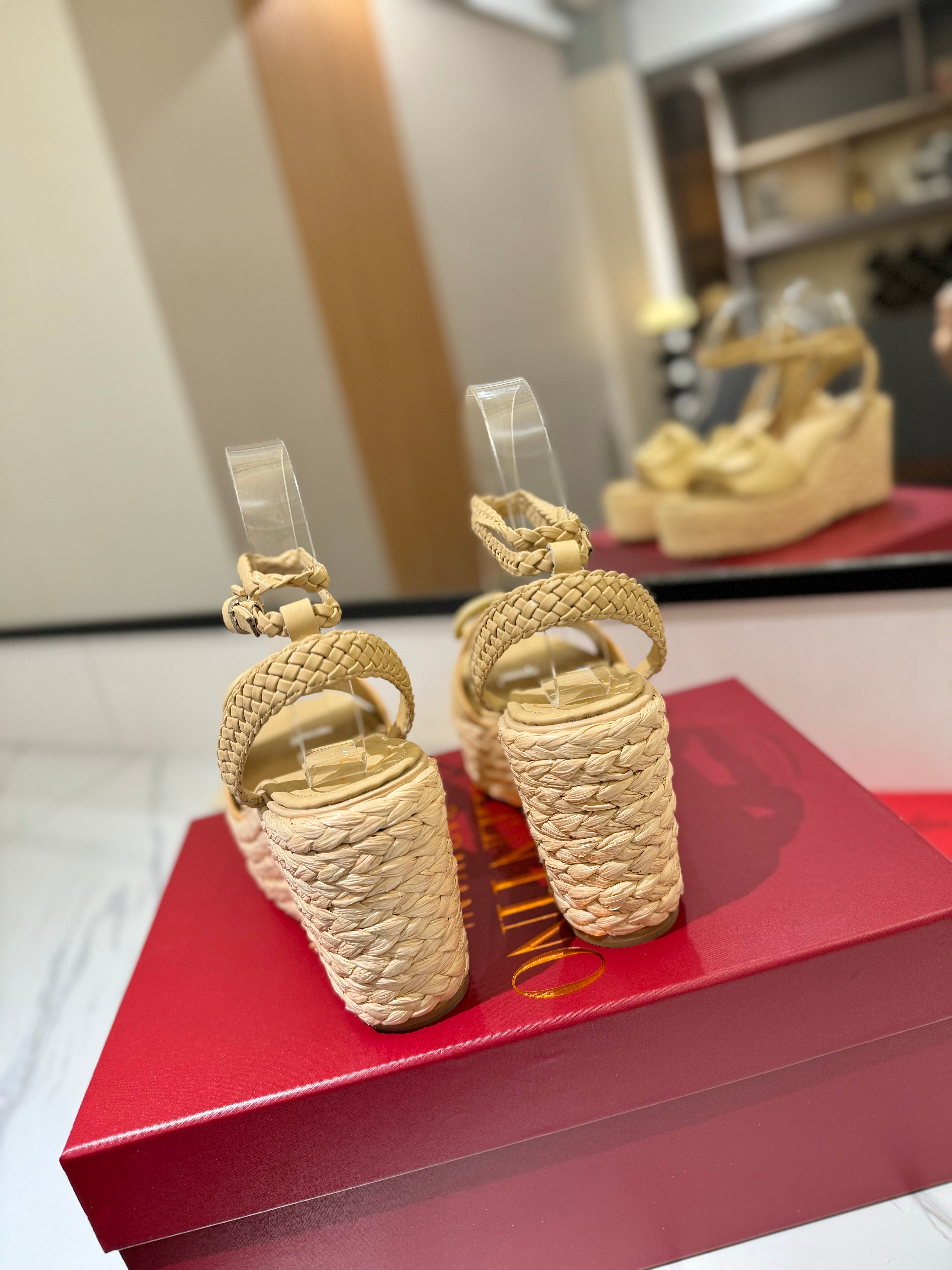 VLTN ESPADRILLE WEDGE SANDALS 25S 90 MM IN GOLDEN BEIGE LAMBSKIN STYLE 9