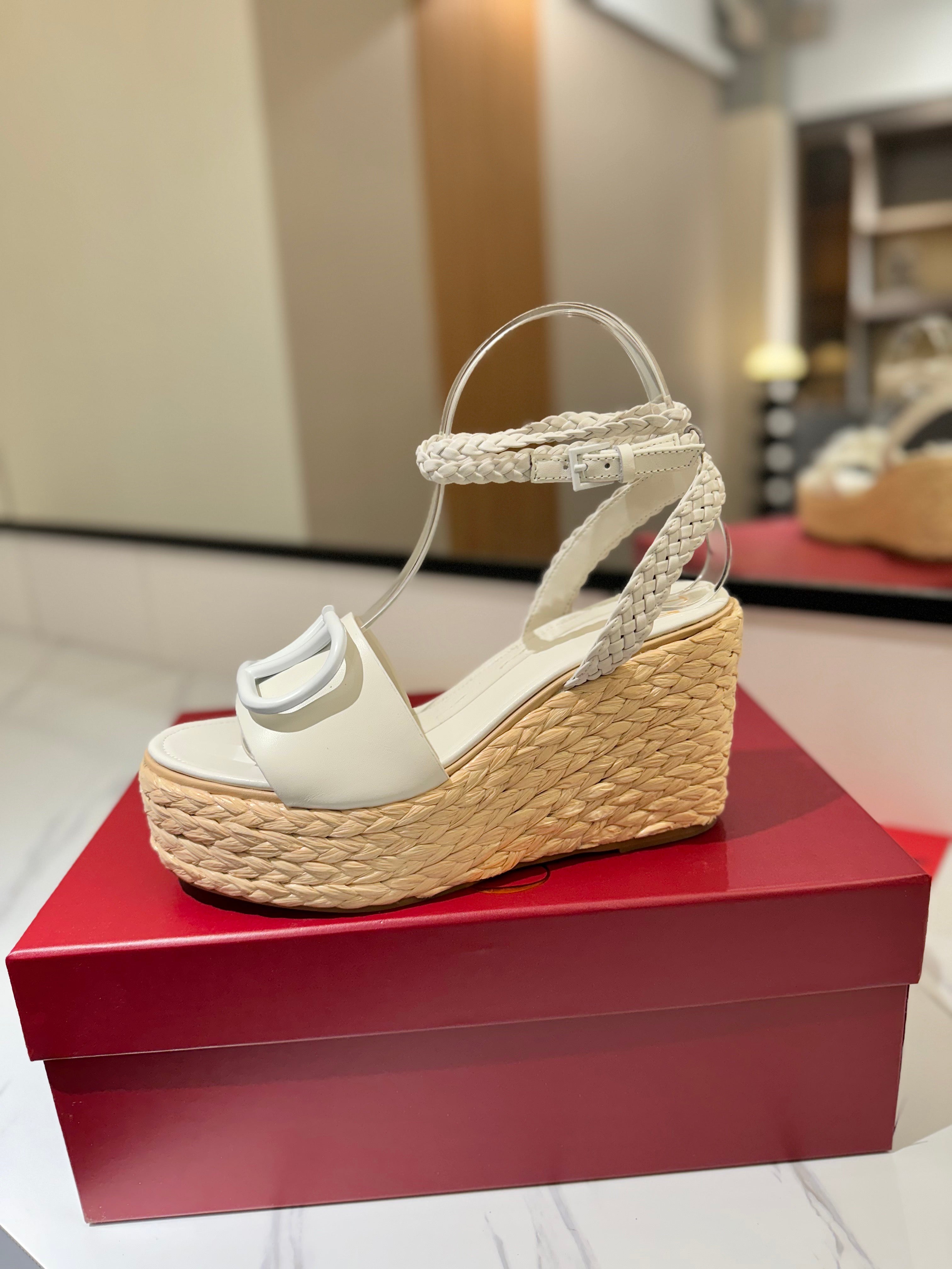 VLTN ESPADRILLE WEDGE SANDALS 25S 90 MM IN WHITE LAMBSKIN STYLE 12