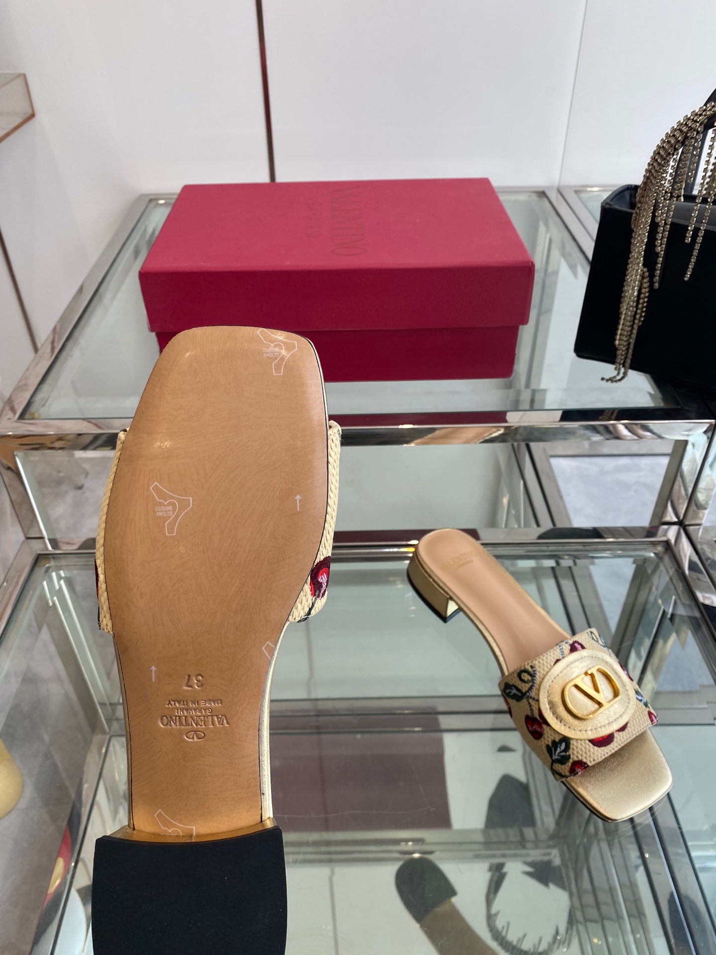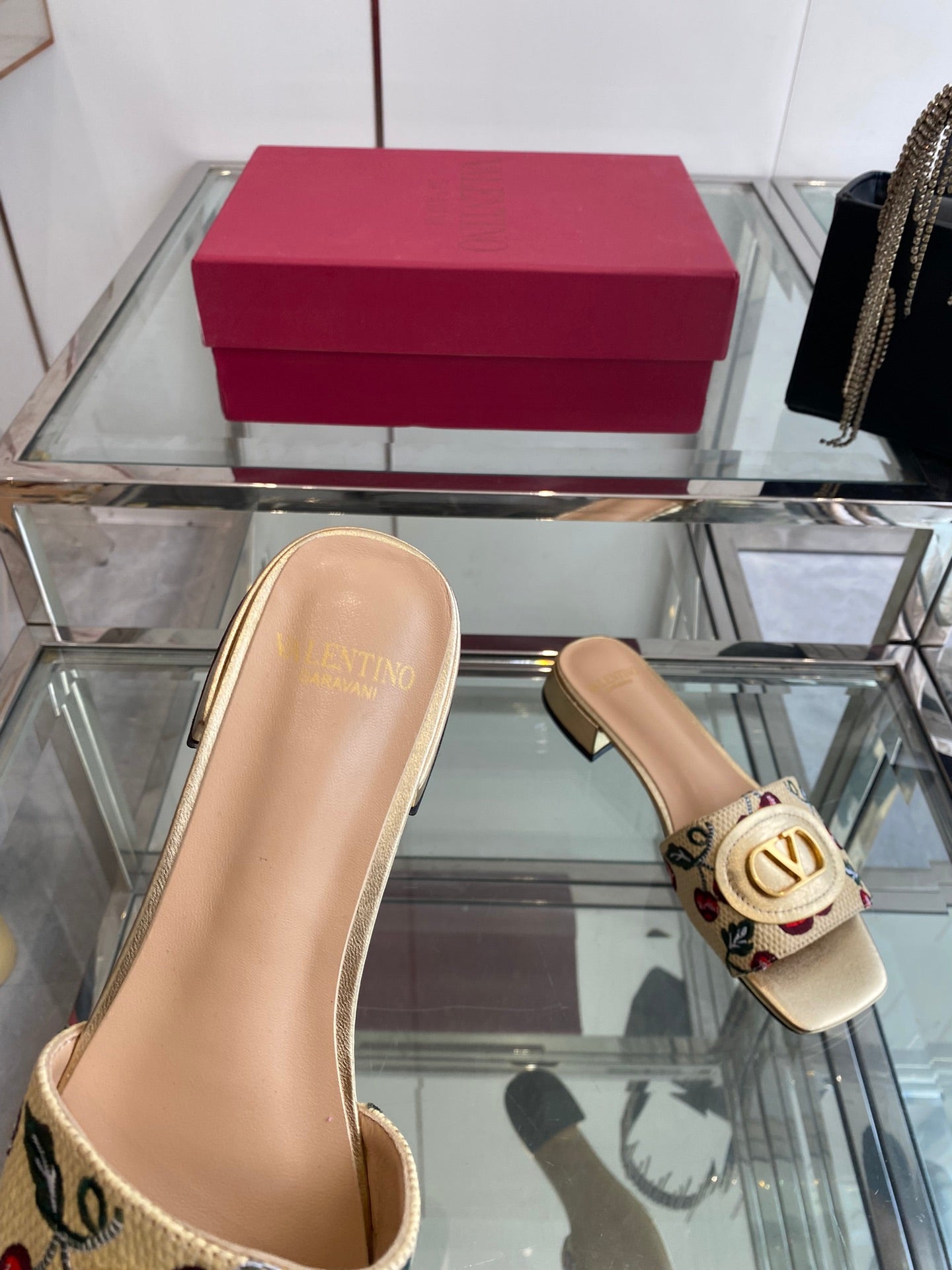 VLTN HIGH HEEL 25S 30 MM IN BEIGE FABRIC AND GOLD LAMBSKIN WITH EMBROIDERED CHERRY MOTIF
