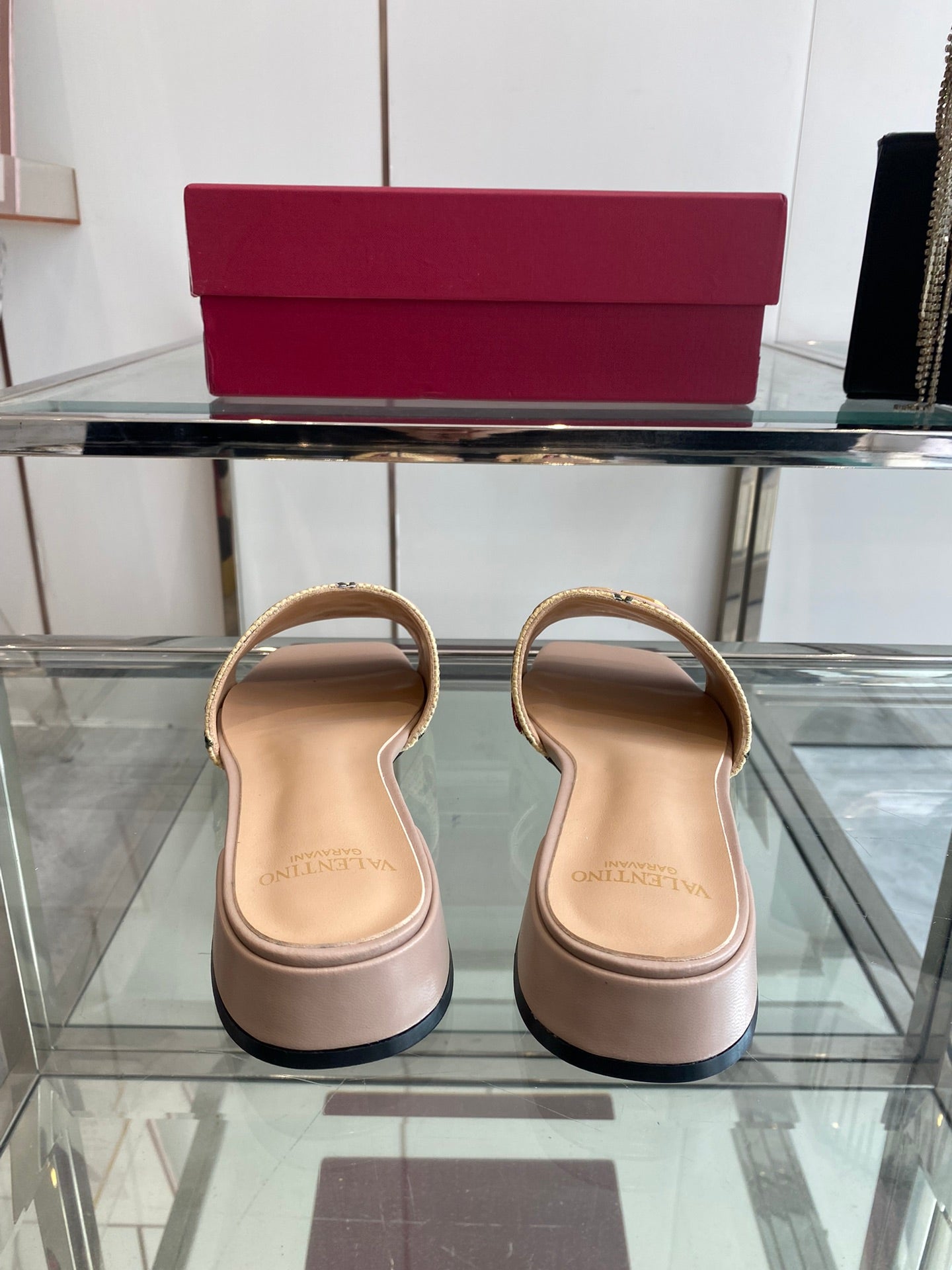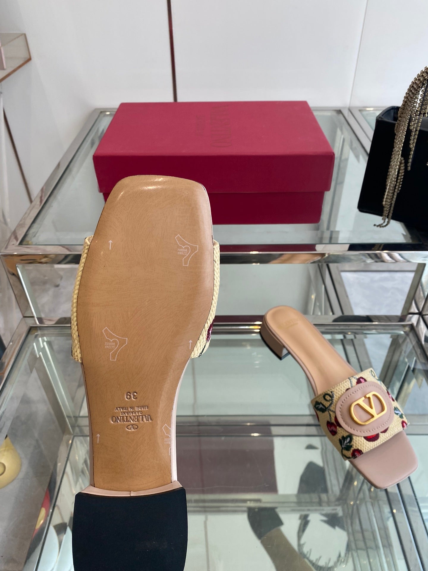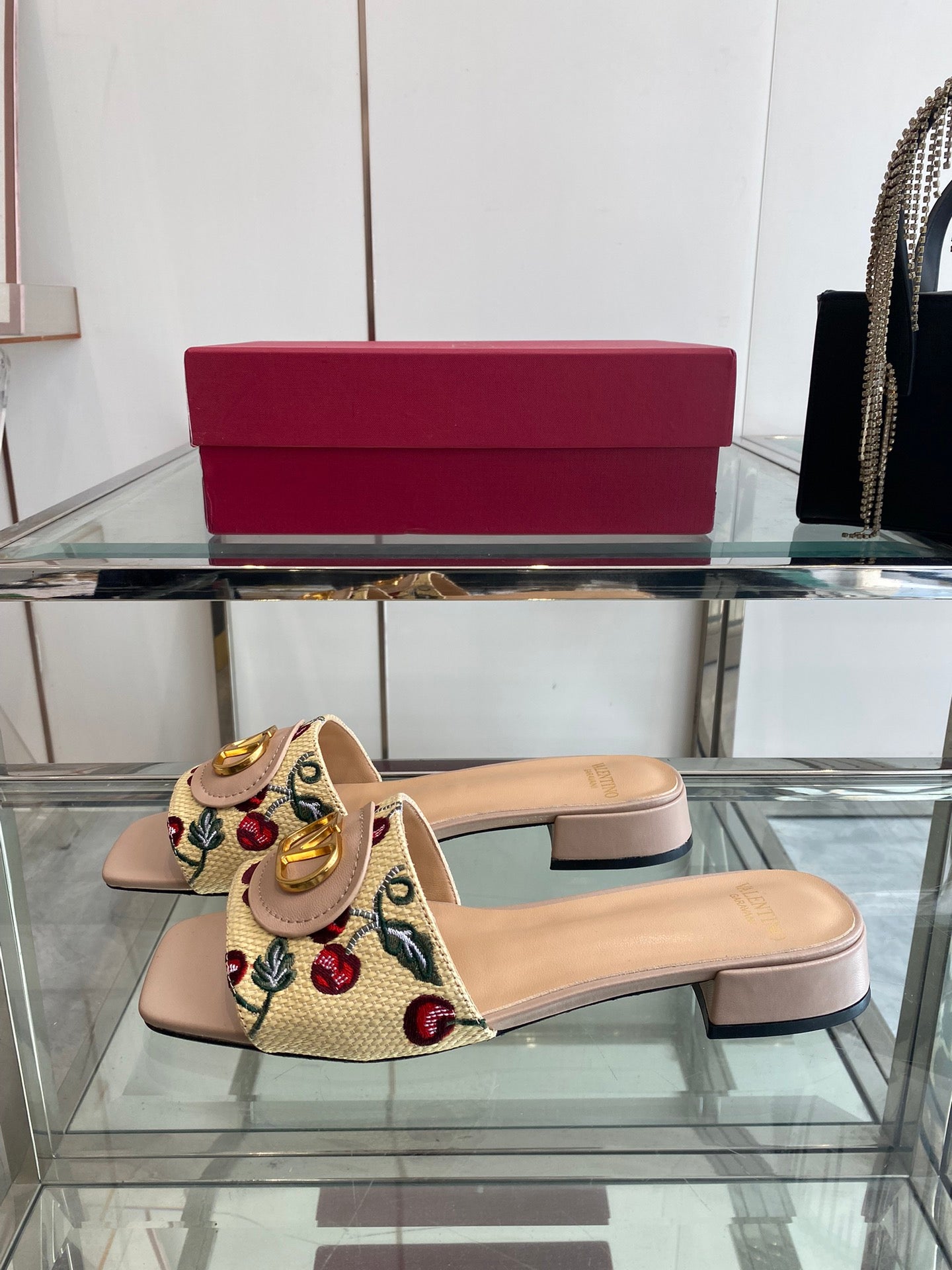 VLTN HIGH HEEL 25S 30 MM IN BEIGE FABRIC AND MUTED PINK LAMBSKIN WITH EMBROIDERED CHERRY MOTIF