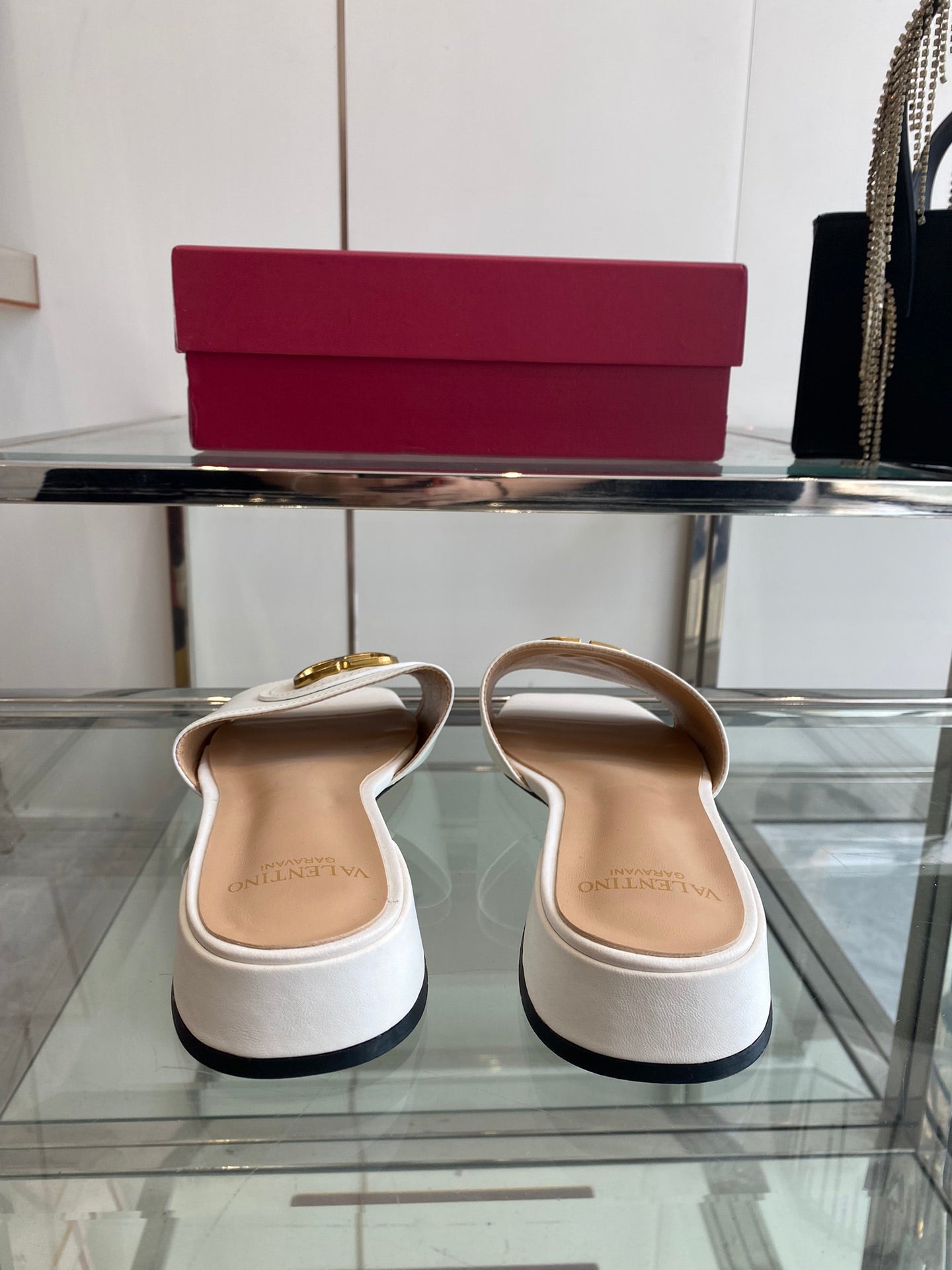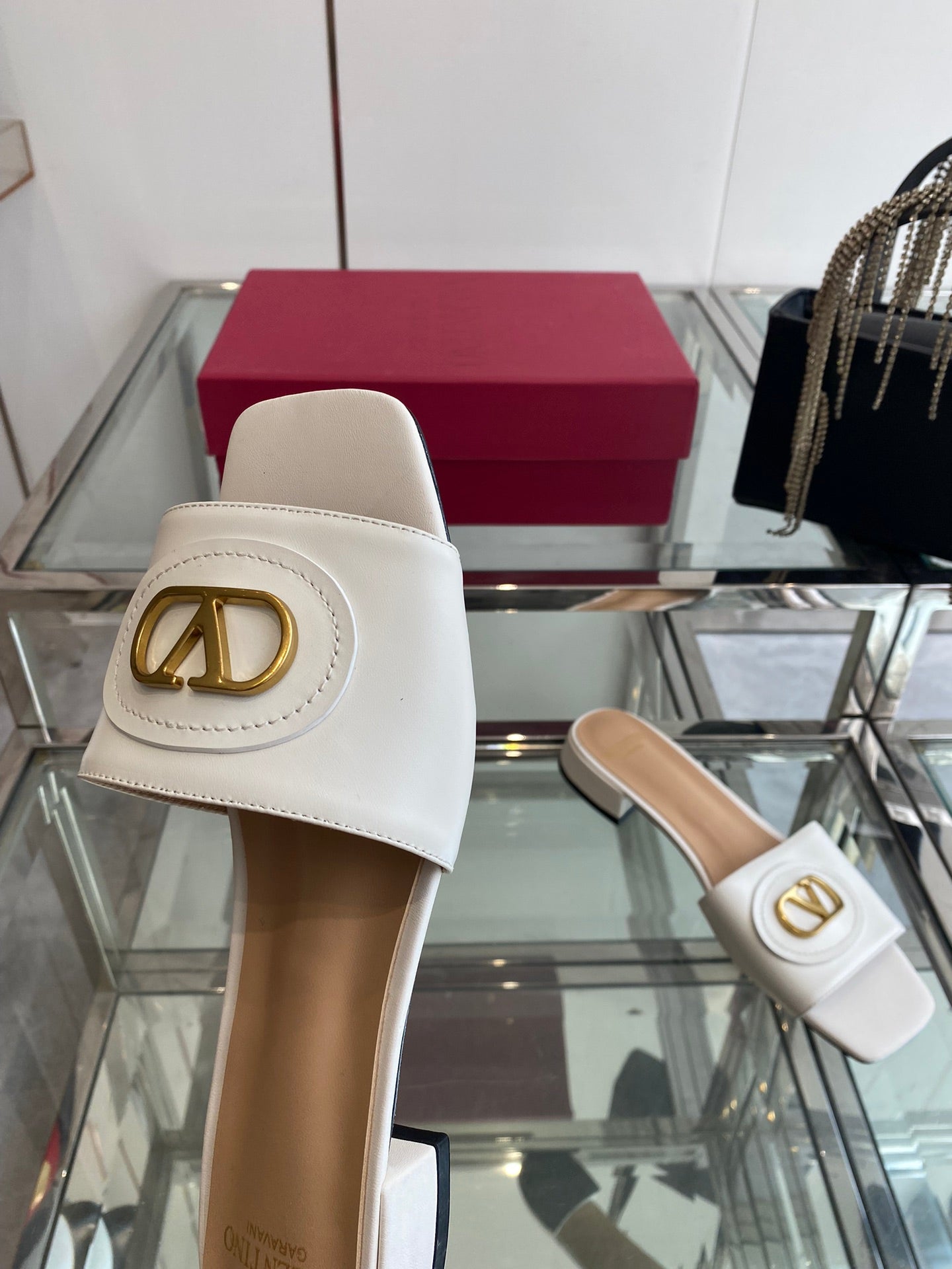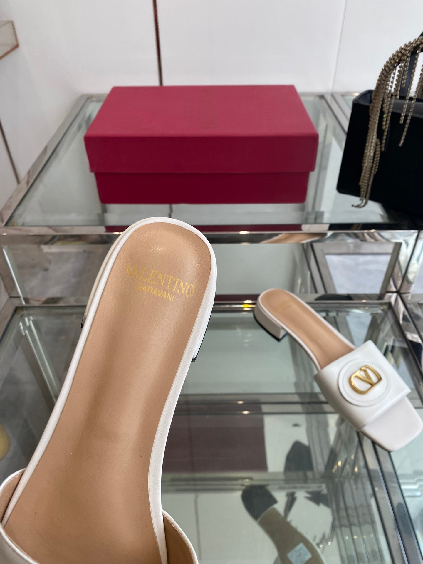 VLTN HIGH HEEL 25S 30 MM IN WHITE LAMBSKIN WITH GOLD HARDWARE