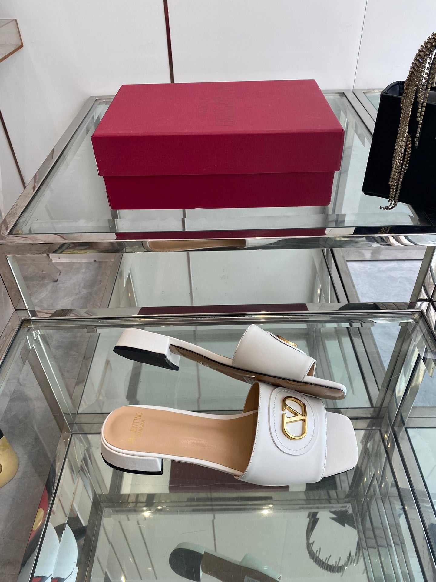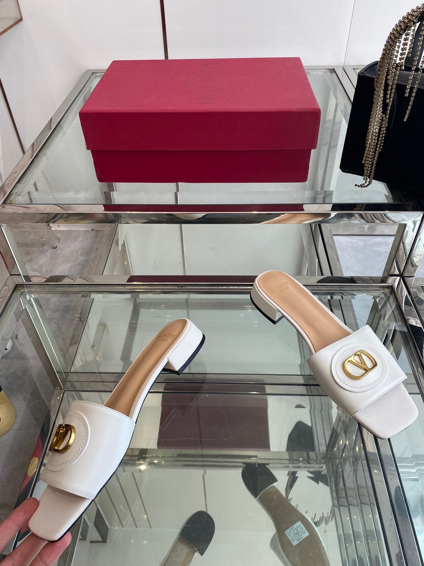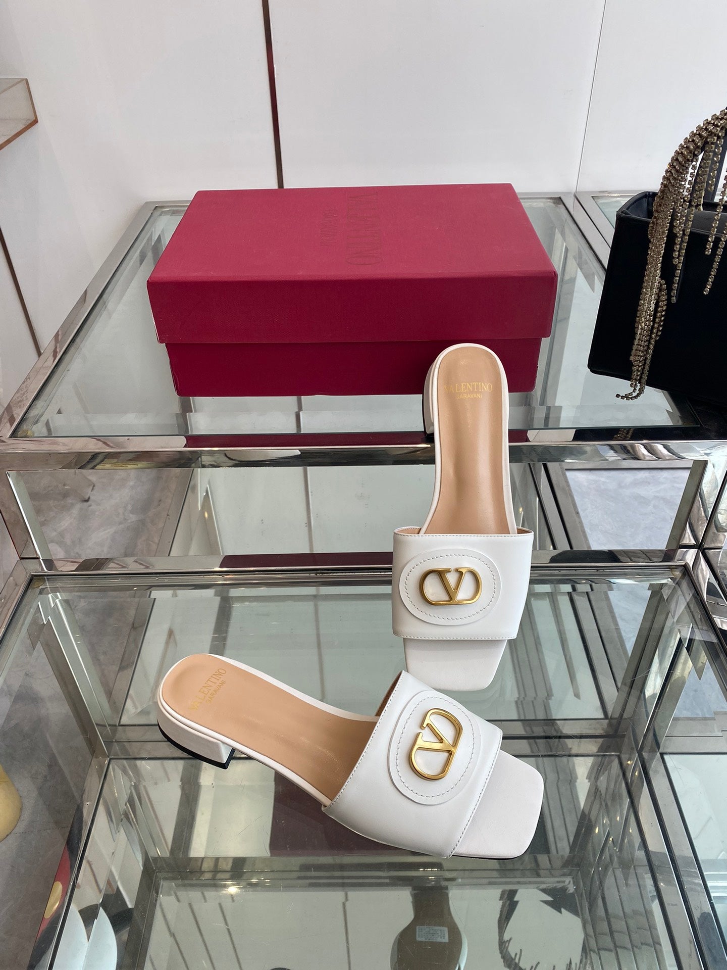 VLTN HIGH HEEL 25S 30 MM IN WHITE LAMBSKIN WITH GOLD HARDWARE