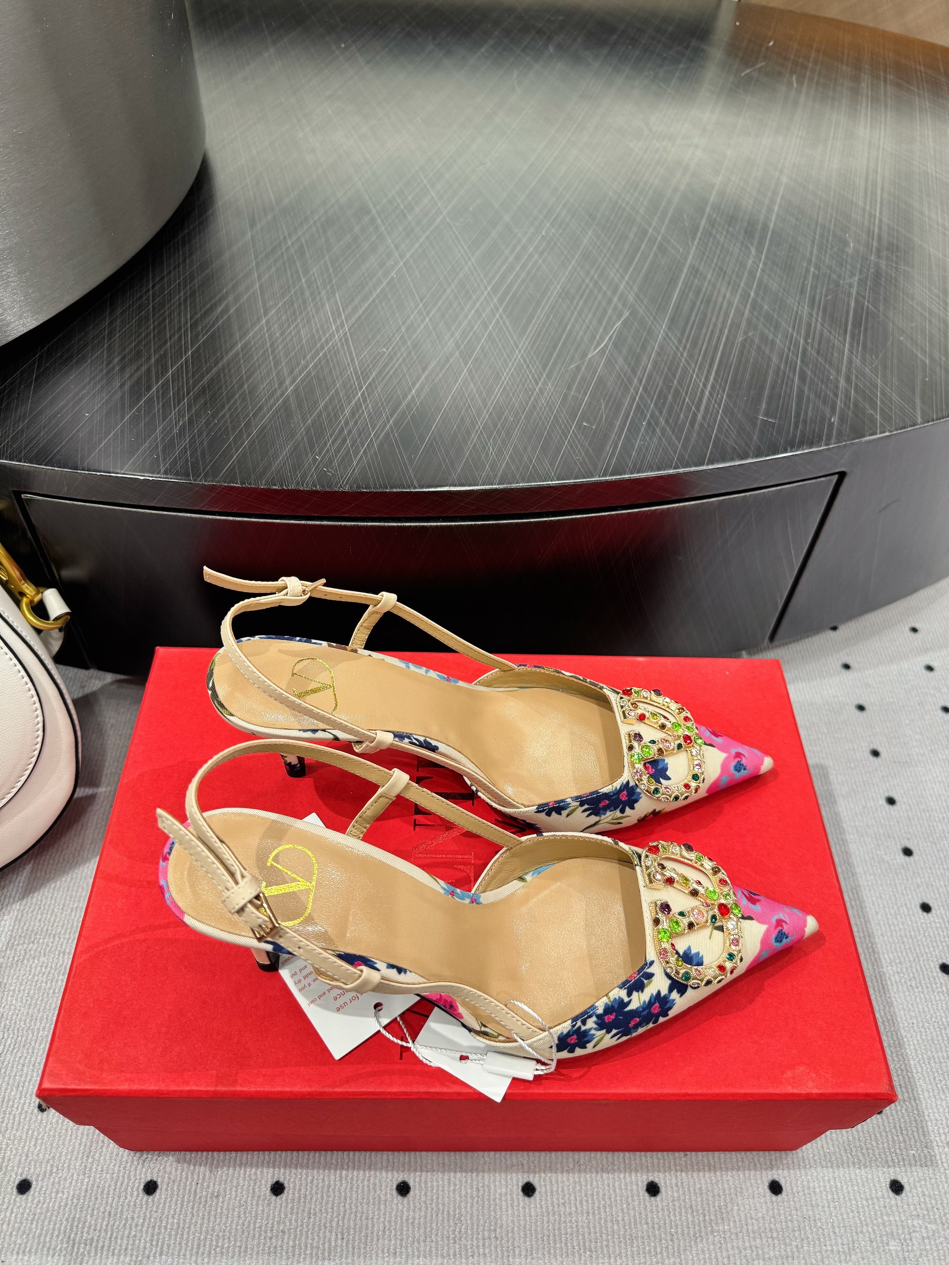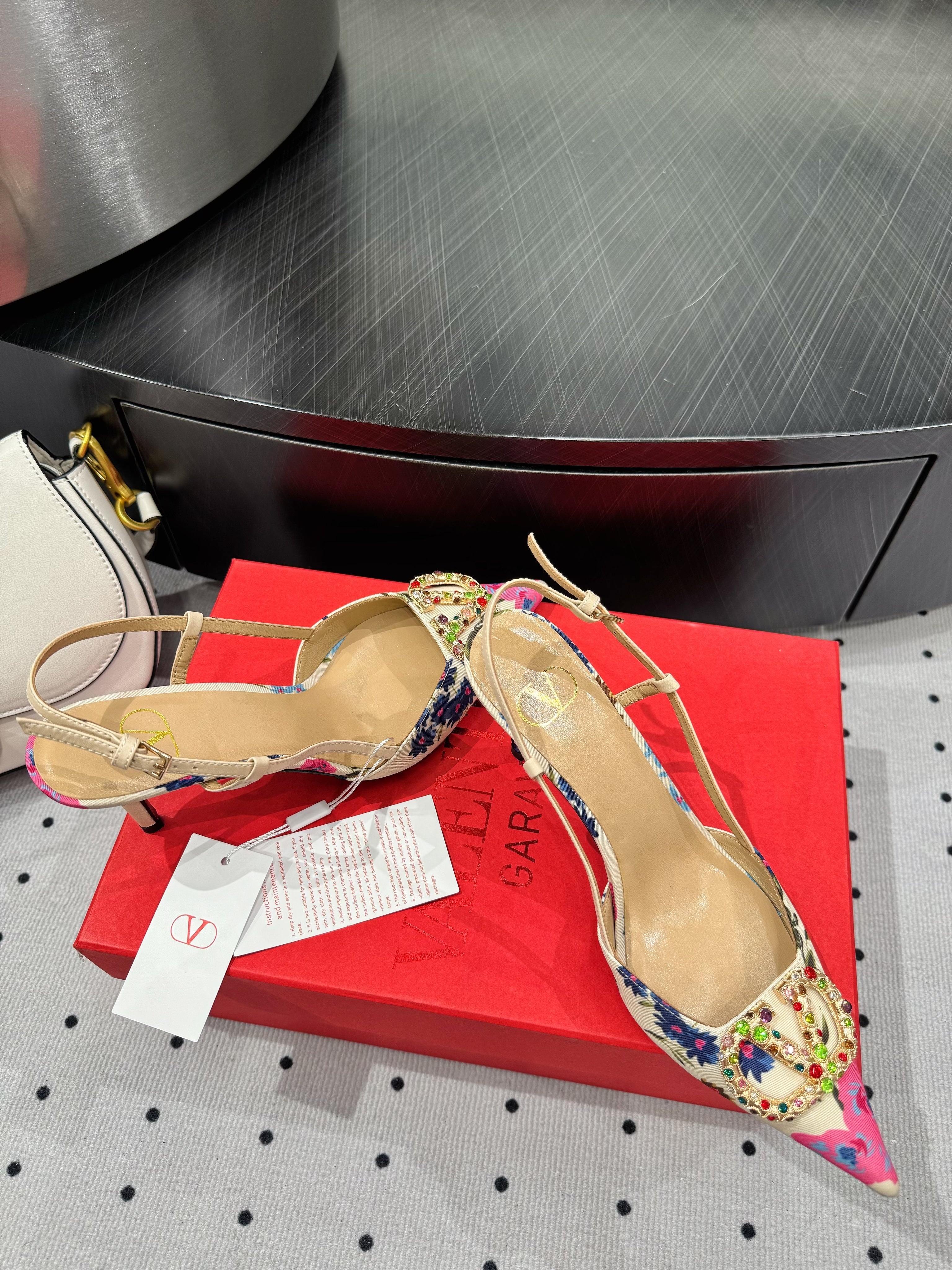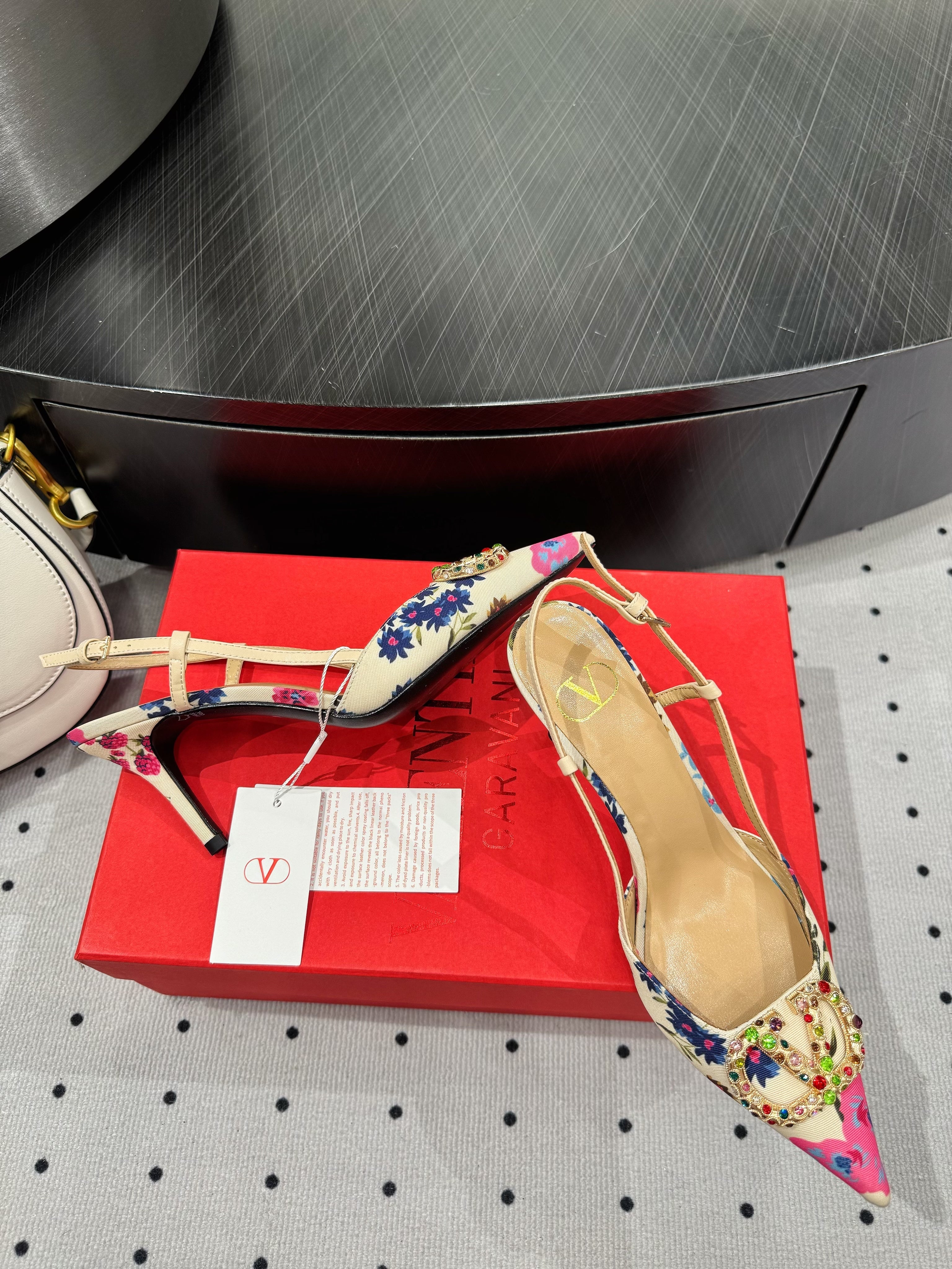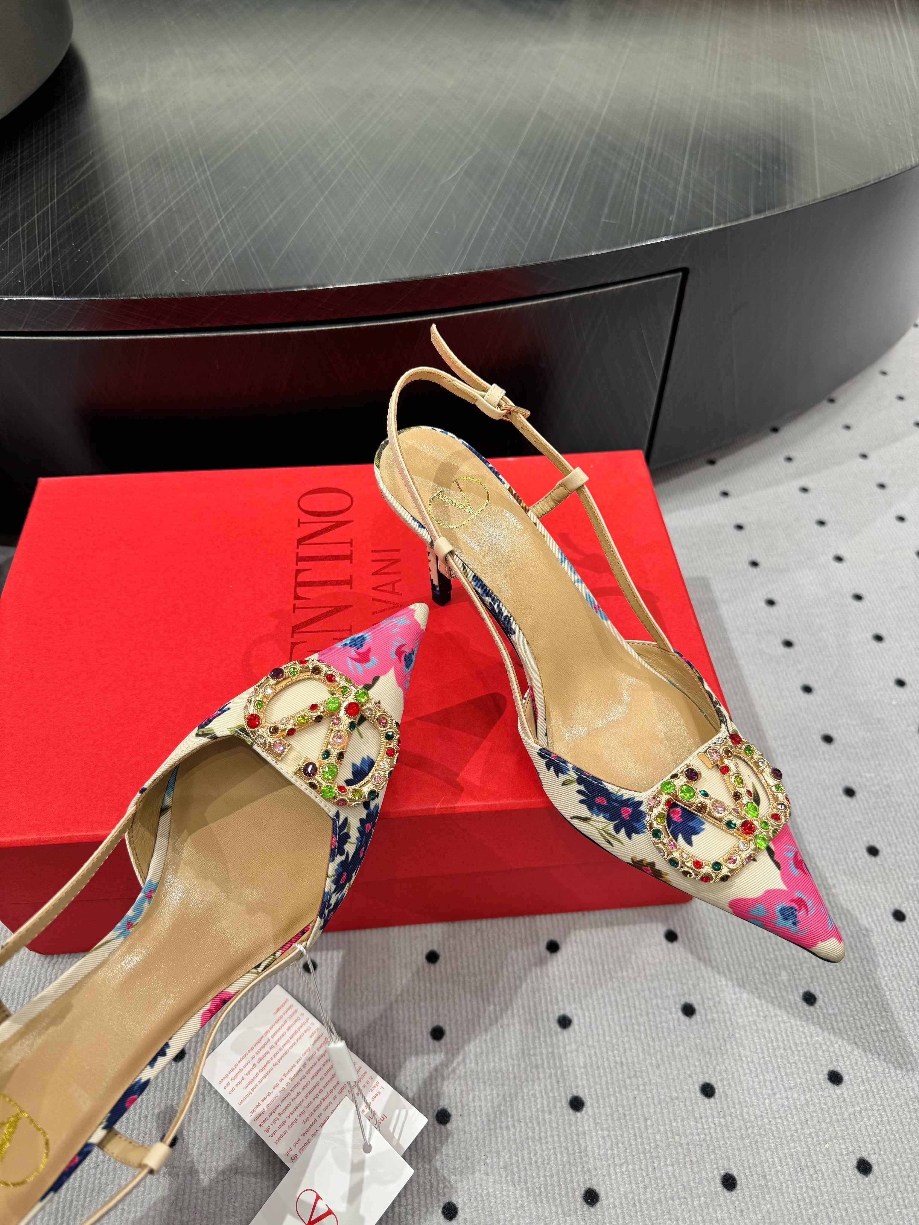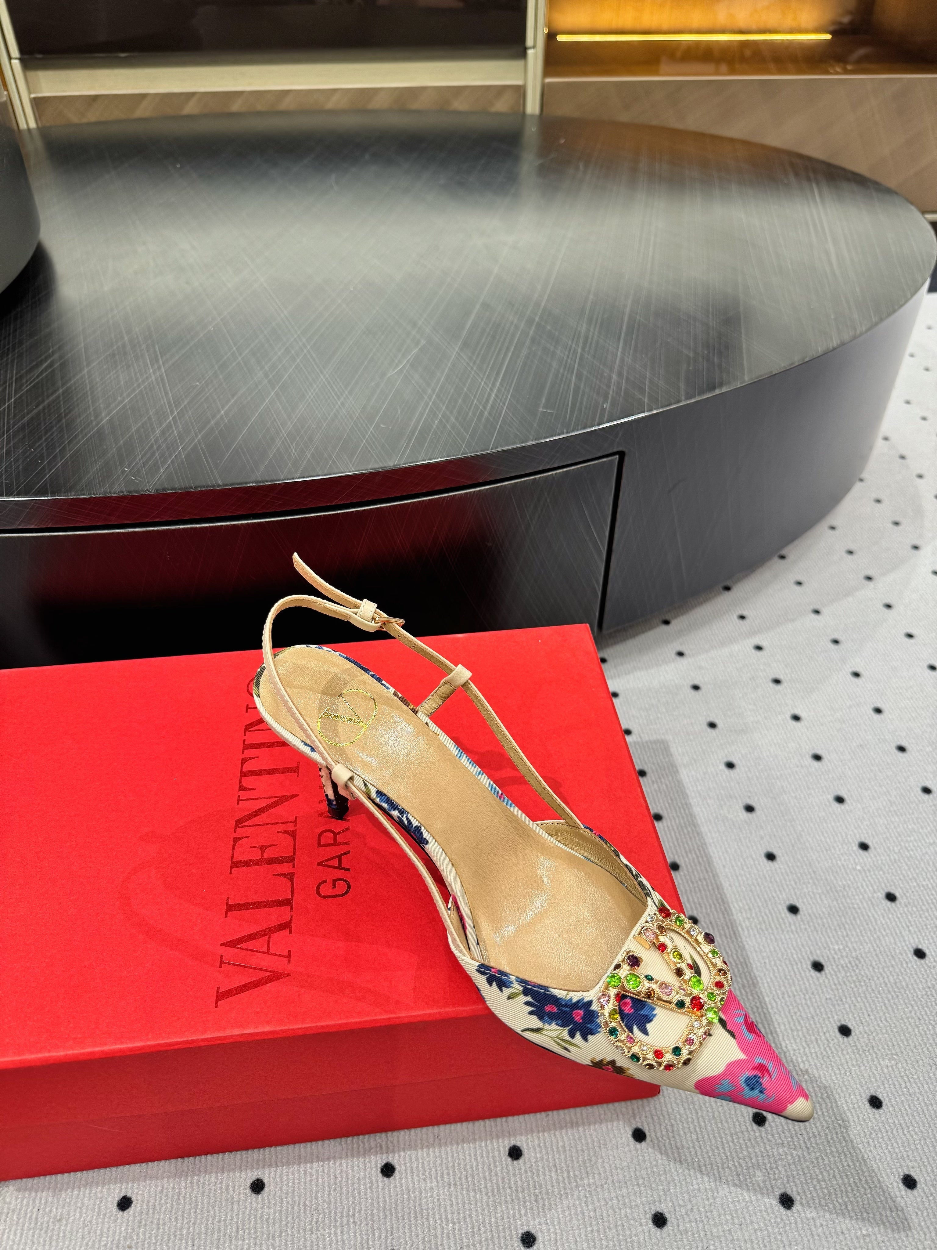 VLTN HIGH SLINGBACK 25S 80 MM IN WHITE MIX PINK FABRIC AND CALFSKIN